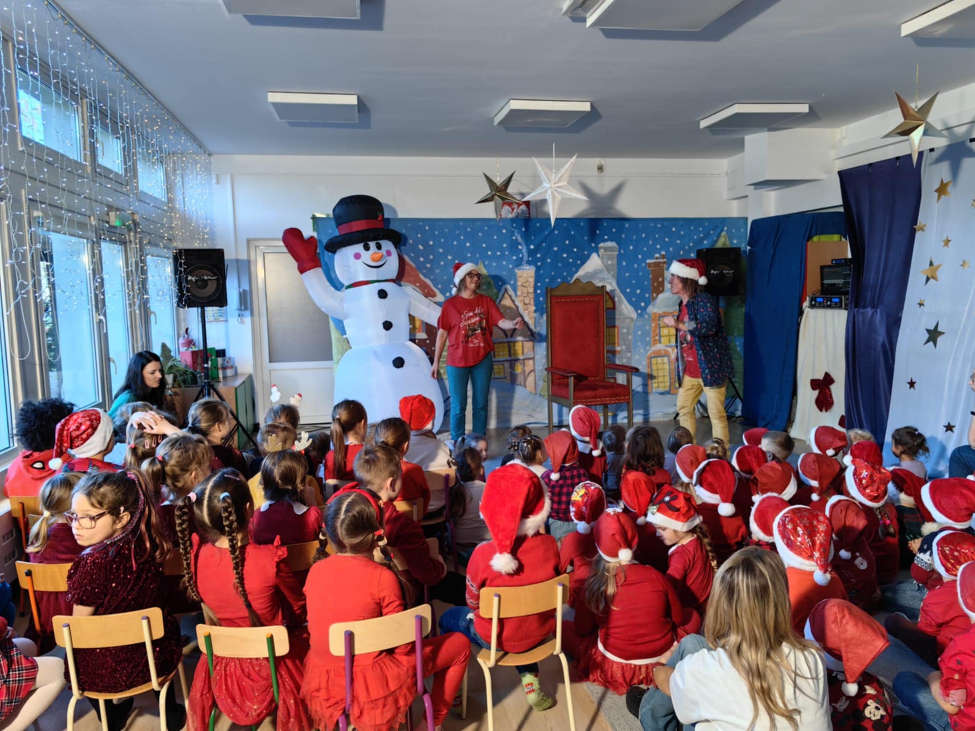 W czwartek 18 grudnia naszym przedszkolu odbył się wyjątkowy, pełen radości występ świąteczny w wykonaniu kabaretu „Bzik”. Artyści zaprezentowali dzieciom zabawne i angażujące przedstawienie pt. „Czy ktoś widział Mikołaja?”, które wprowadziło wszystkich w magiczny, świąteczny nastrój. Wesołe piosenki oraz humorystyczne dialogi sprawiły, że przedszkolaki z zainteresowaniem śledziły losy bohaterów i chętnie brały udział w interaktywnej zabawie. Na twarzach dzieci przez cały czas gościł uśmiech, a śmiech rozbrzmiewał na sali. Po zakończonym występie czekała na dzieci miła niespodzianka – każdy przedszkolak otrzymał świąteczny prezent, który sprawił im ogromną radość. To wydarzenie na długo pozostanie w pamięci naszych przedszkolaków jako pełne magii.