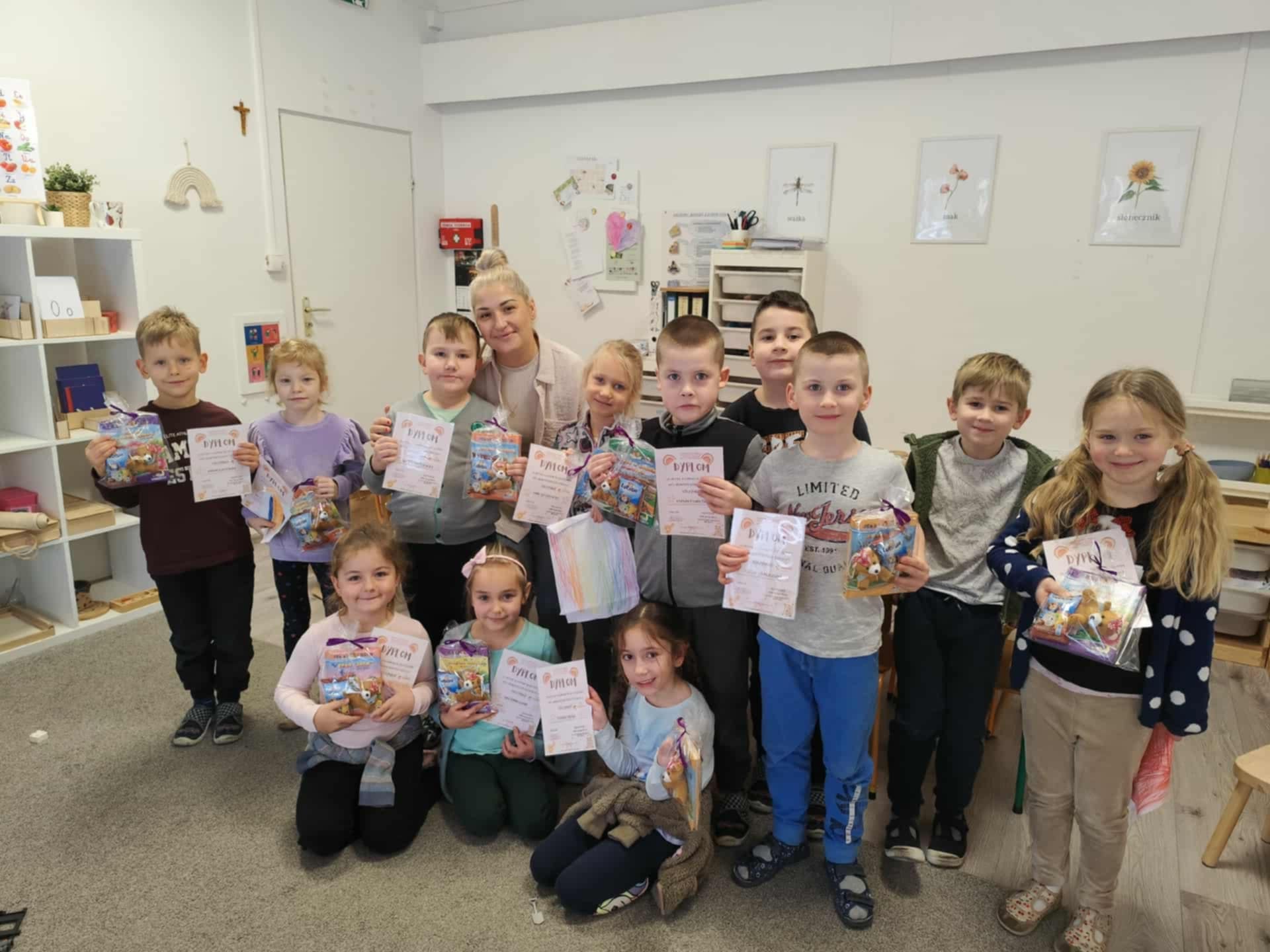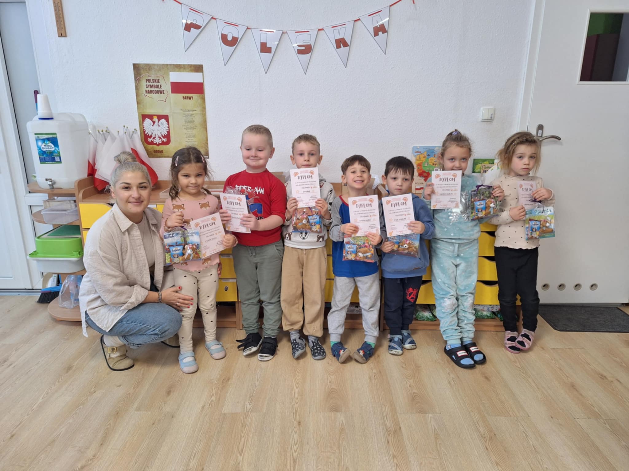 Z okazji Dnia Pluszowego Misia, Biblioteka Maluszka i p. Ania Wawrzyniak, zorganizowała konkurs plastyczny „Miś – ulubiony bohater literacki”. Do konkursu przystąpiło 102 dzieci z całego przedszkola. Wszystkie prace zdobią nasz przedszkolny korytarz i dają wszystkim okazję aby je podziwiać. Każda praca jest inna, każda jest piękna i ma w sobie coś szczególnego. Za poświęcony czas i udział w konkursie wszystkie dzieci zostały nagrodzone dyplomem i małym upominkiem, wśród których nie mogło zabraknąć małego pluszowego misia.
