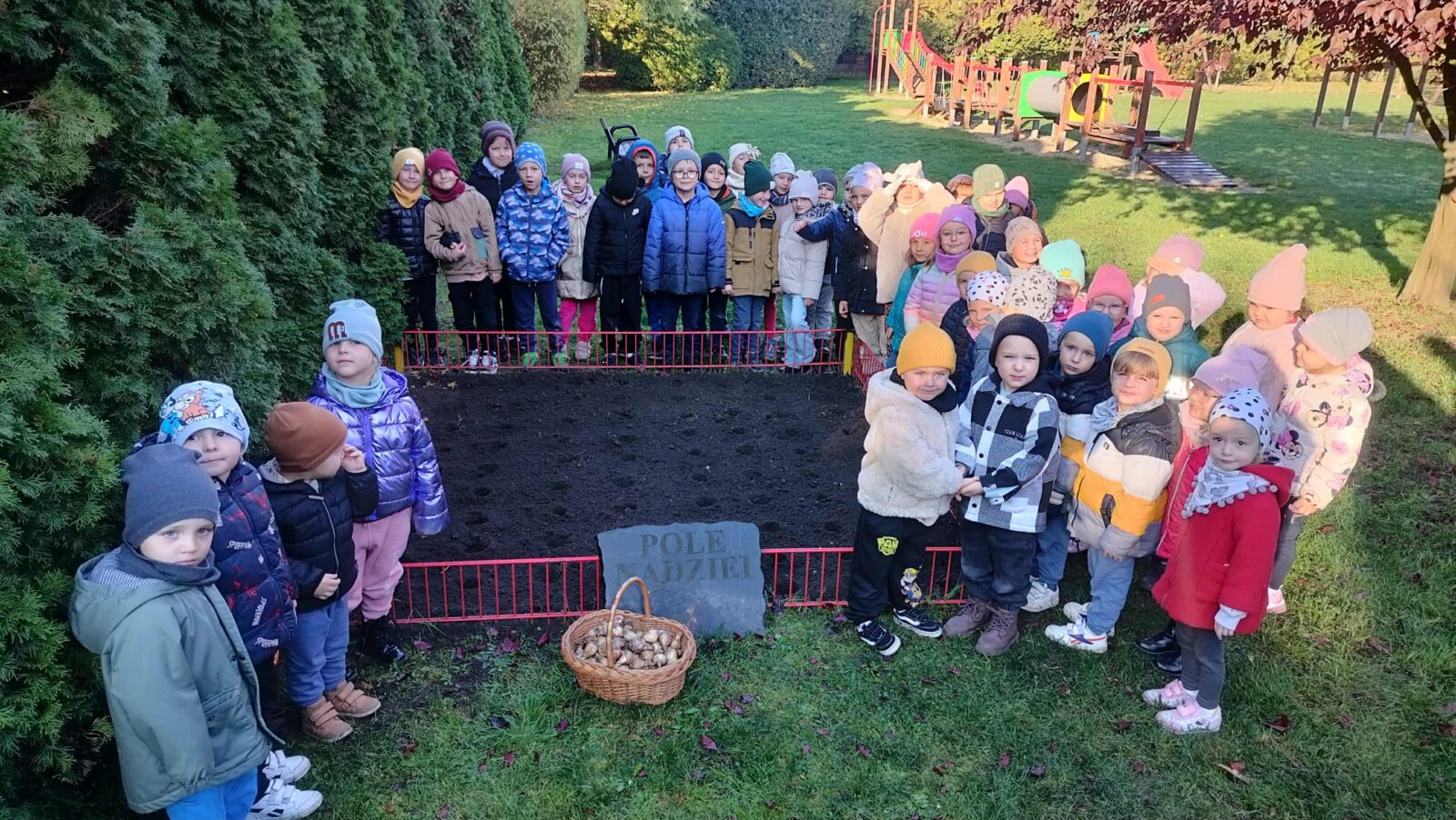 „Pola Nadziei” to kampania społeczna, w której przedszkola sadzą żonkile (symbol nadziei) na znak solidarności z osobami chorymi i potrzebującymi wsparcia w hospicjum.