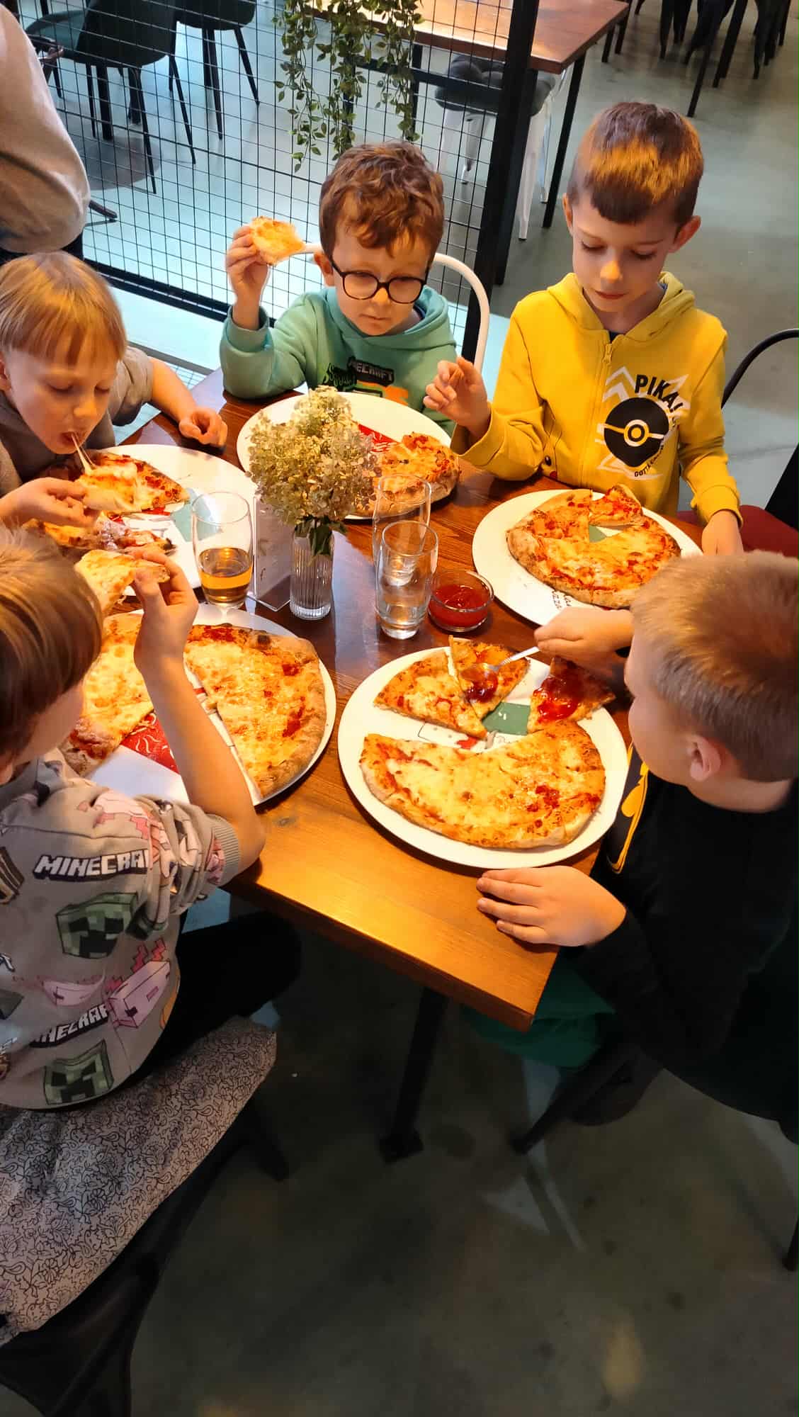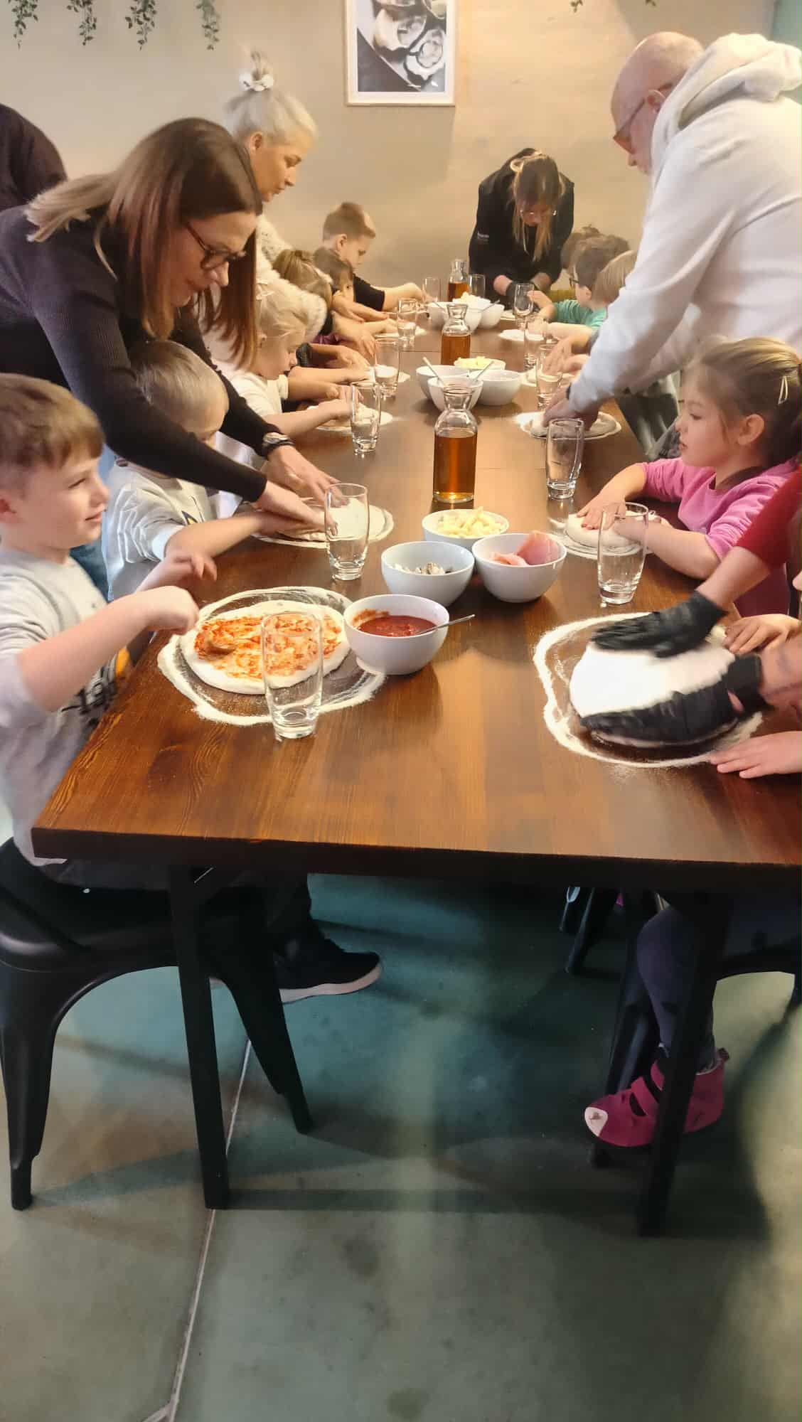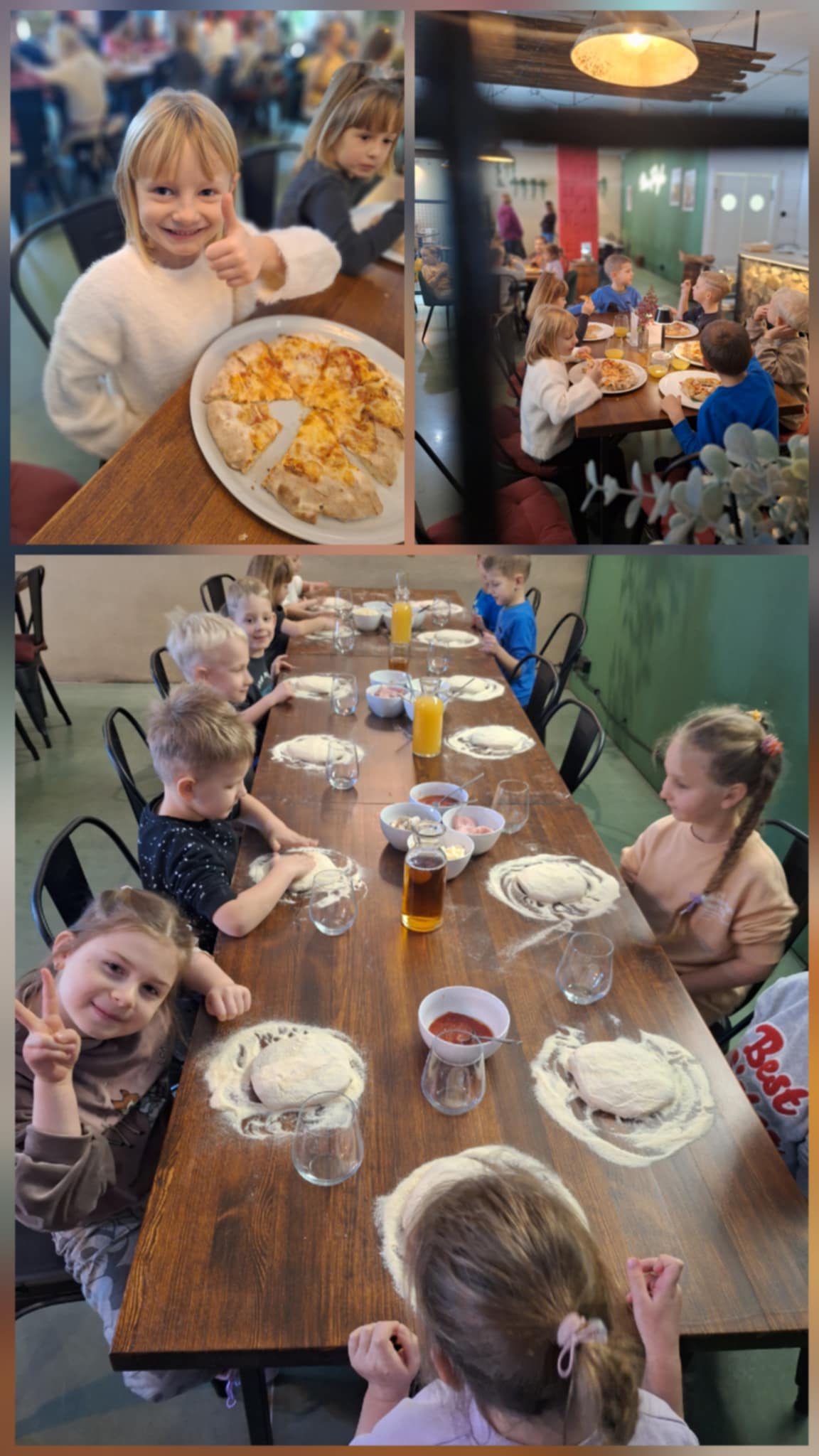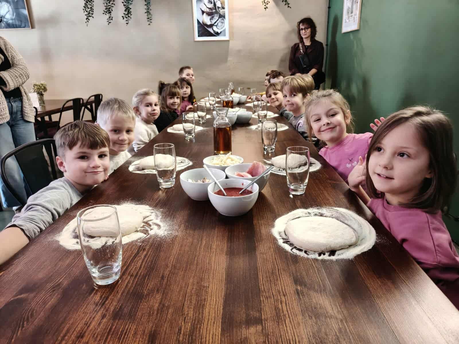 Dnia 27 listopada 2025 grupa V Motylki wraz z nauczycielkami i dyrekcją przedszkola w nagrodę za przygotowanie pięknego pokazu mody podczas inauguracji XIX edycji Konkursu Ekologicznego pod hasłem „ZNAM ZASADY – SEGREGUJĘ ODPADY” została zaproszona przez Zakład Oczyszczania i Gospodarki Odpadami MZO na warsztaty kulinarne do Starej Fabryki w Myślniewie. Na miejscu przywitał nas właściciel Pan Jacek Kostrzewski. Dzieci miały okazję dowiedzieć się w jaki sposób powstaje pizza po czym każdy sam przygotował swoją pizzę z ulubionych składników. Wszystkie samodzielnie wykonane pizze szybko znikały z talerzy. Dla dzieci była to niesamowita podróż do świata smaków i zapachów. Serdecznie dziękujemy organizatorom za zaproszenie.