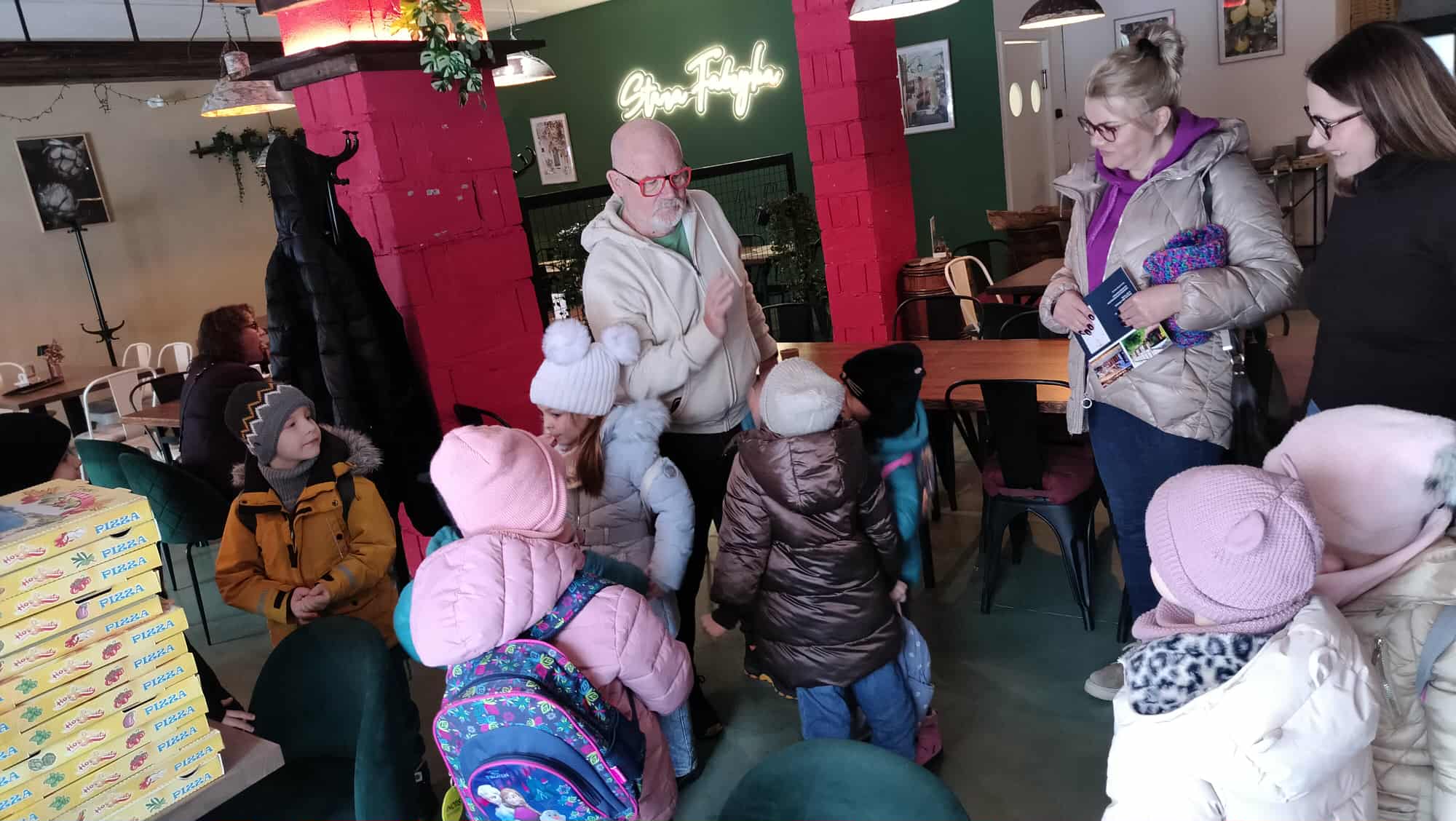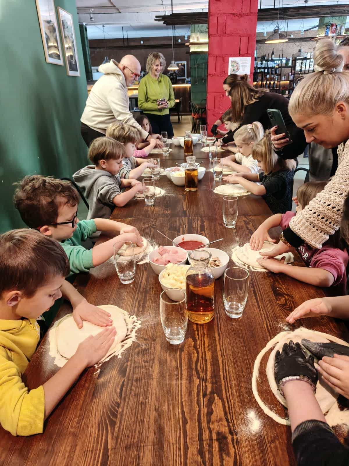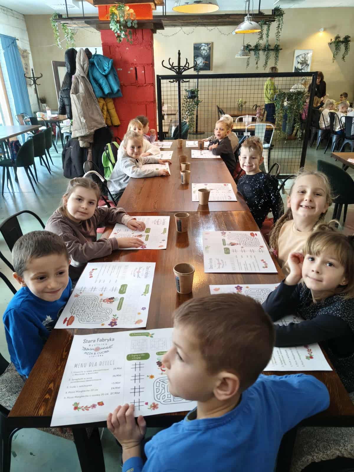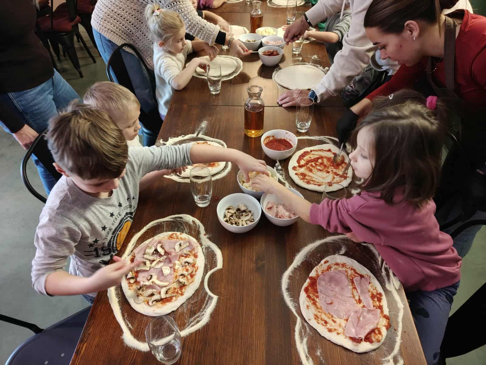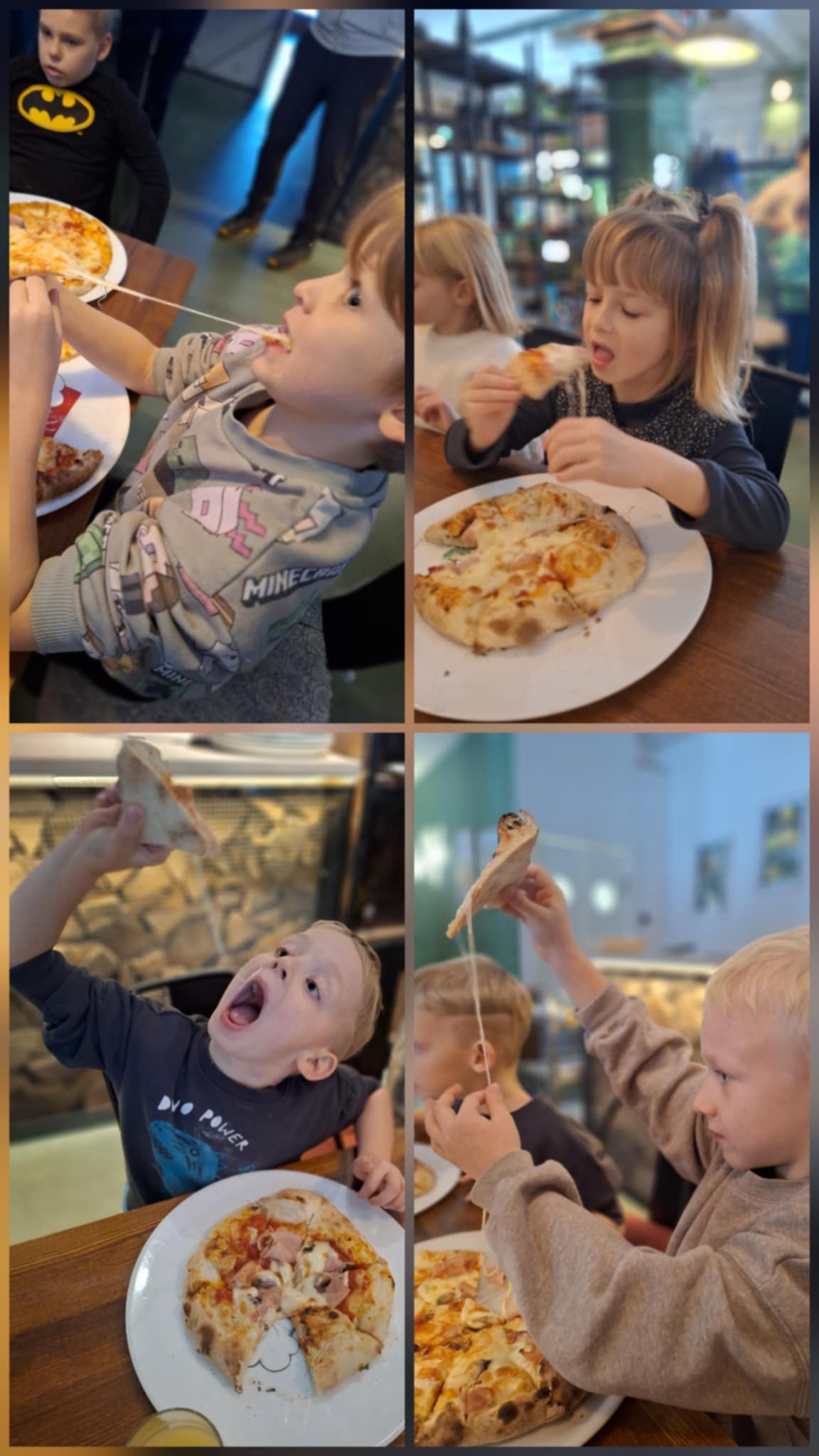 Dnia 27 listopada 2025 grupa V Motylki wraz z nauczycielkami i dyrekcją przedszkola w nagrodę za przygotowanie pięknego pokazu mody podczas inauguracji XIX edycji Konkursu Ekologicznego pod hasłem „ZNAM ZASADY – SEGREGUJĘ ODPADY” została zaproszona przez Zakład Oczyszczania i Gospodarki Odpadami MZO na warsztaty kulinarne do Starej Fabryki w Myślniewie. Na miejscu przywitał nas właściciel Pan Jacek Kostrzewski. Dzieci miały okazję dowiedzieć się w jaki sposób powstaje pizza po czym każdy sam przygotował swoją pizzę z ulubionych składników. Wszystkie samodzielnie wykonane pizze szybko znikały z talerzy. Dla dzieci była to niesamowita podróż do świata smaków i zapachów. Serdecznie dziękujemy organizatorom za zaproszenie.