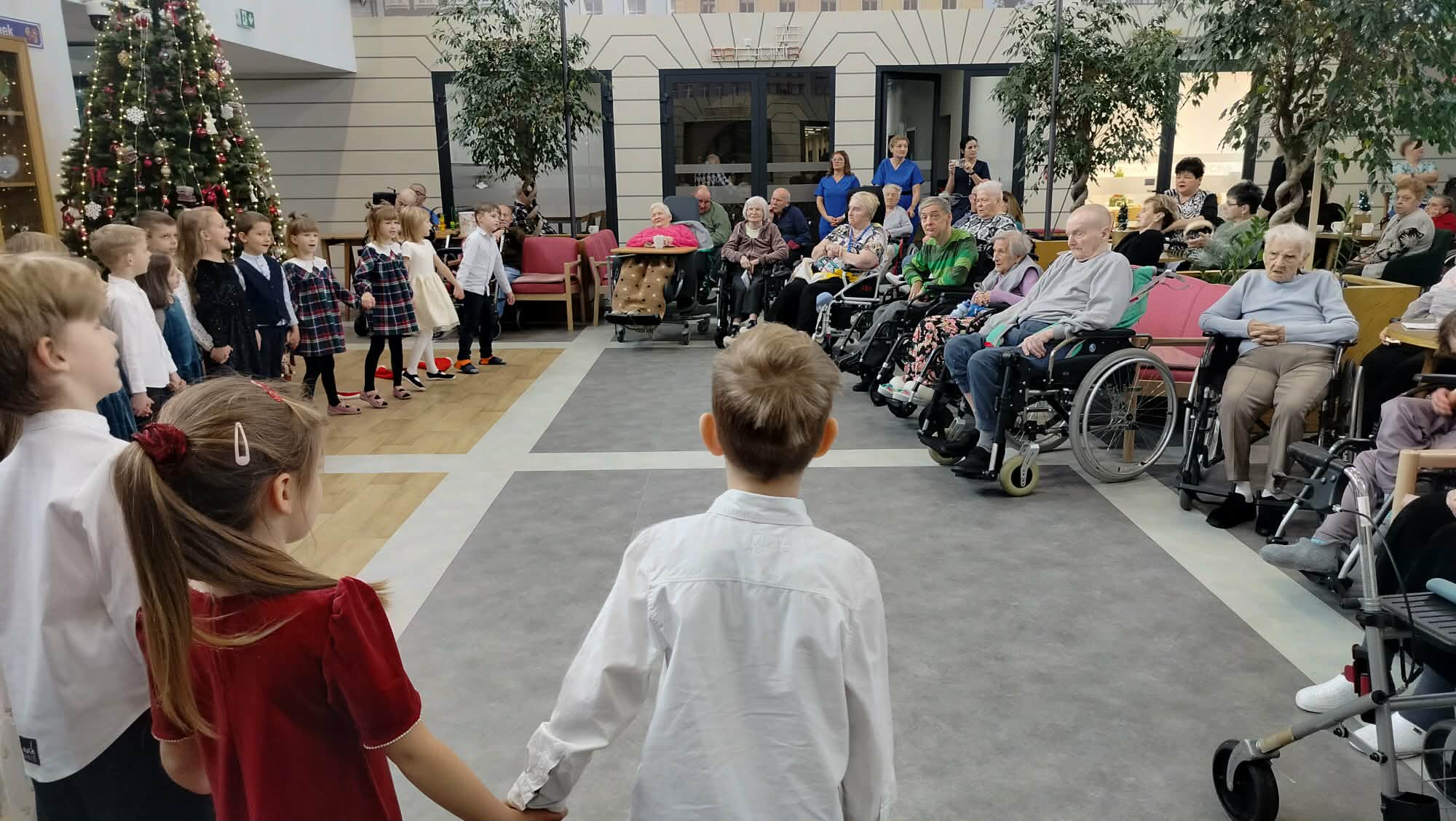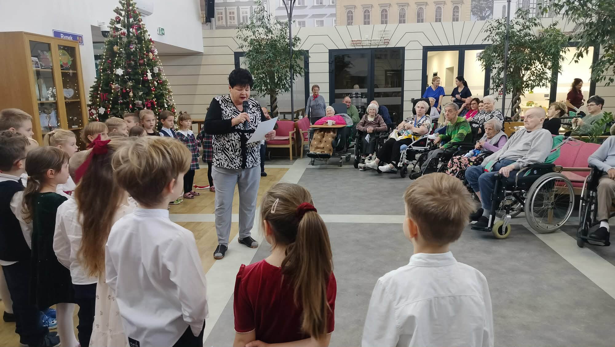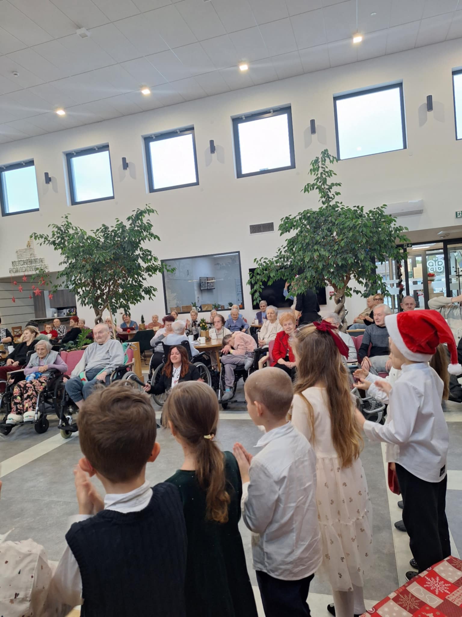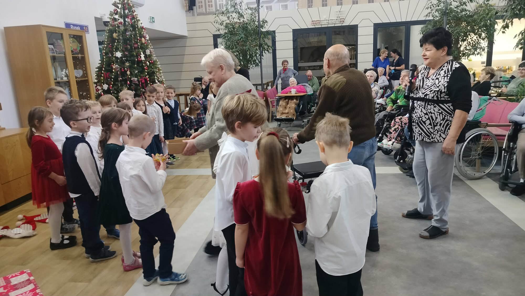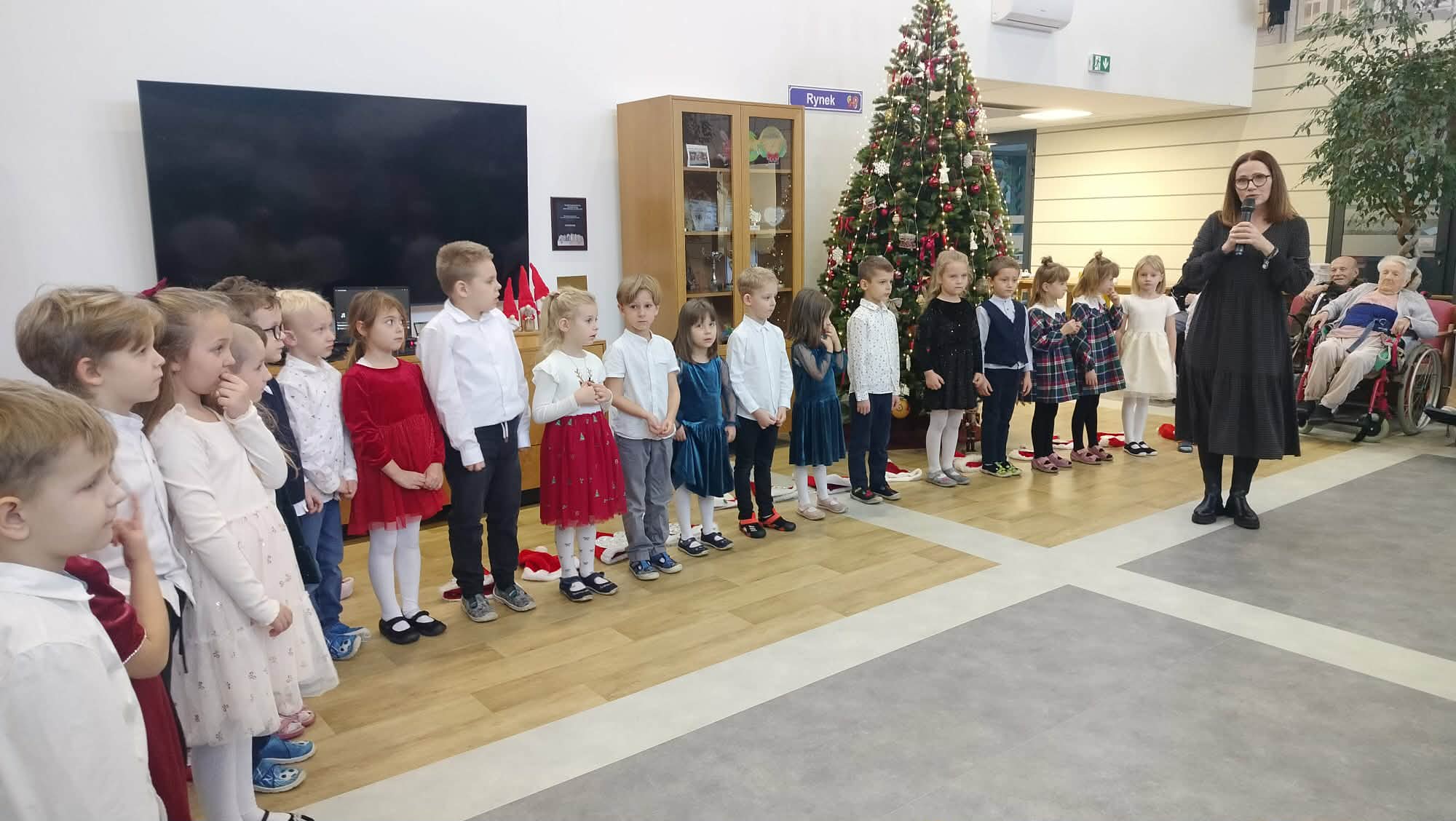 Spotkanie miało wyjątkowy charakter. Dzieci zaprezentowały krótką część artystyczną, w tym kolędy, tańce, wiersze co wprowadziło obecnych seniorów w świąteczny nastrój. Niektórzy z nich nie kryli wzruszenia, doceniając pamięć i zaangażowanie naszych dzieci.
