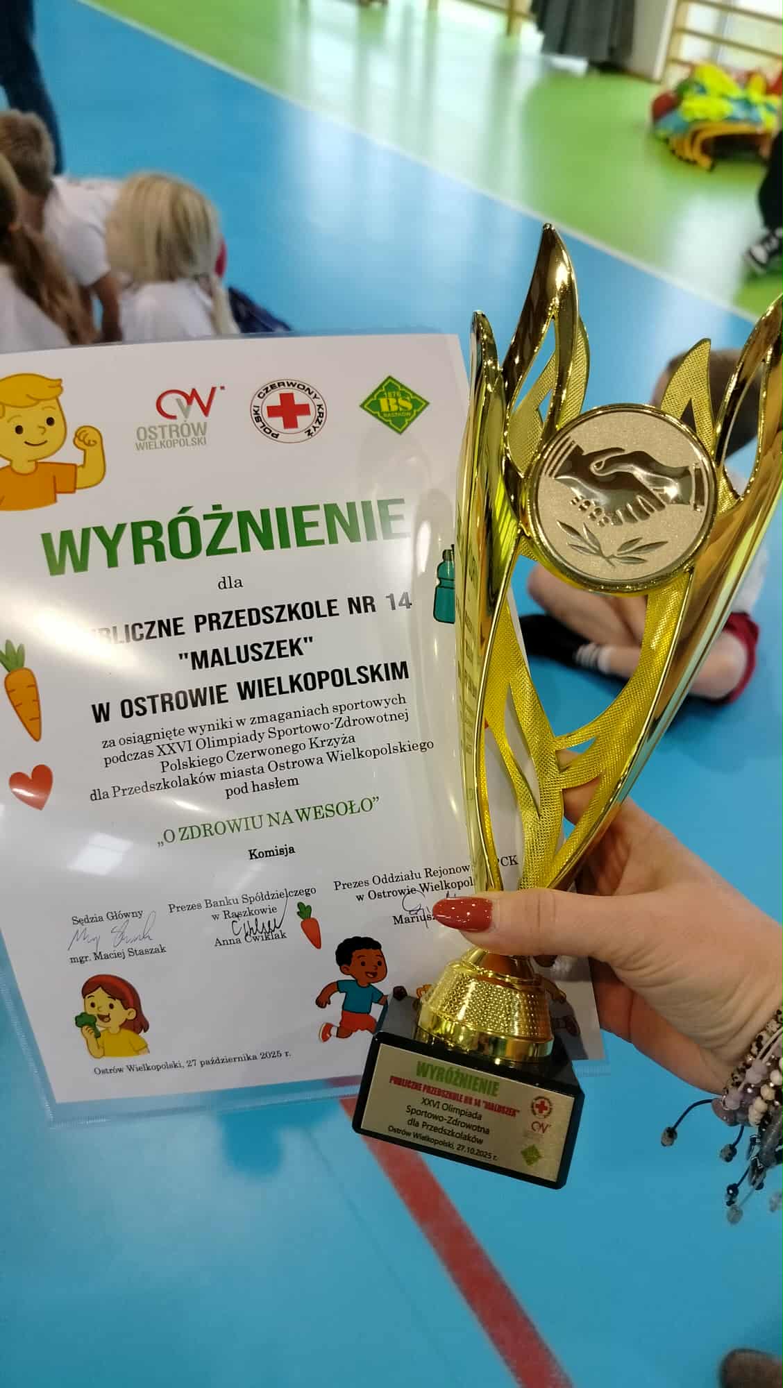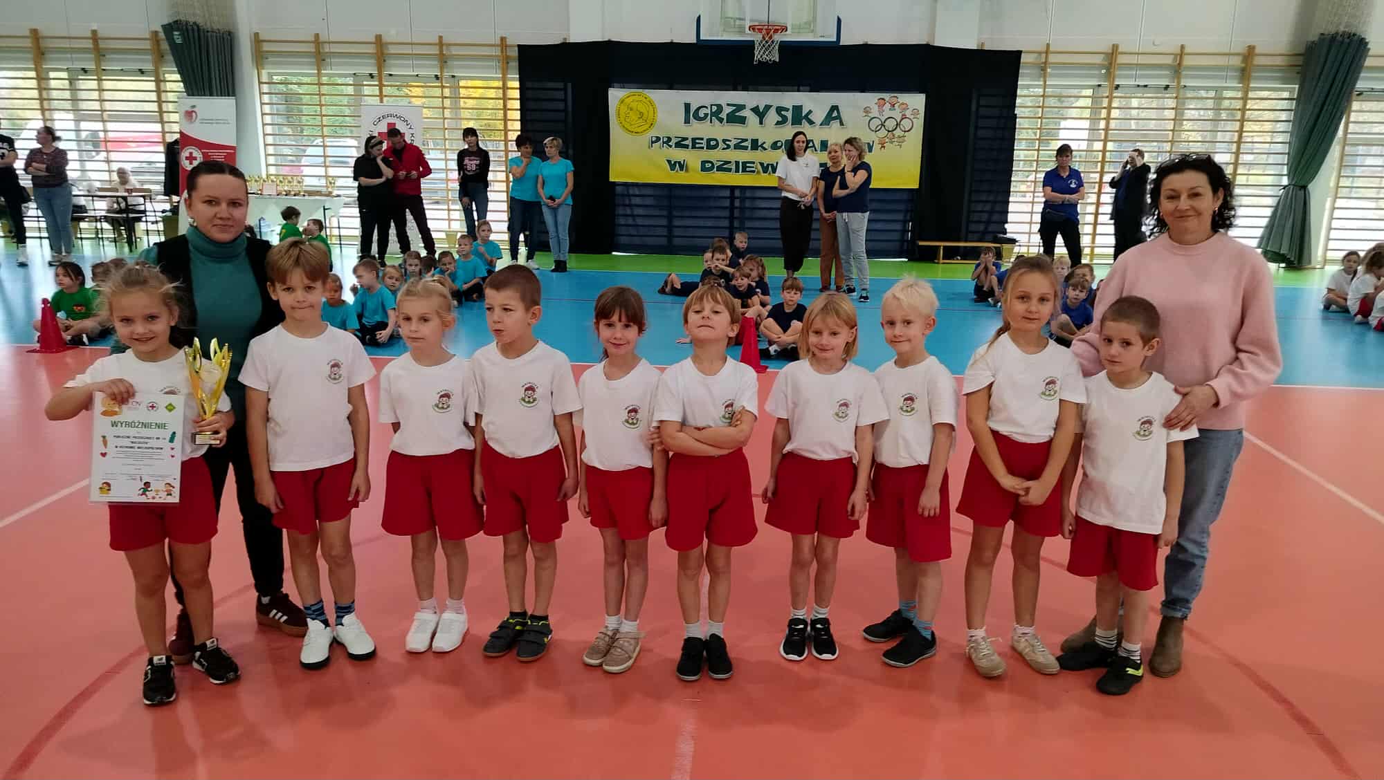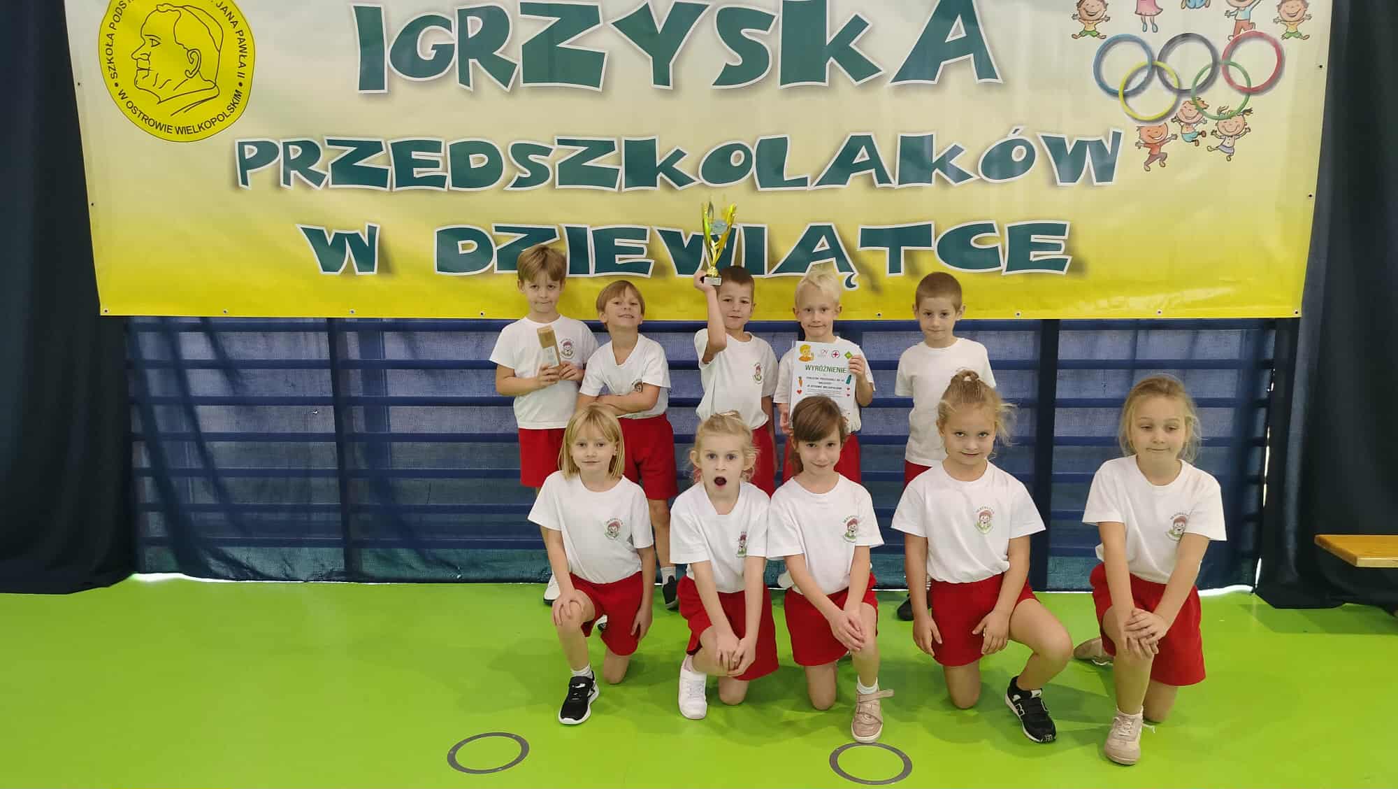 27 października dzieci z grupy V Motylki reprezentowały nasze przedszkole w XXVI Olimpiadzie Sportowo – Zdrowotnej dla Przedszkolaków pod hasłem „O zdrowiu na wesoło”, zorganizowanej przez Polski Czerwony Krzyż w Ostrowie Wielkopolskim. Podczas olimpiady przedszkolaki rywalizowały w różnorodnych konkurencjach sportowych. „Motylki” z ogromnym zaangażowaniem uczestniczyły w zawodach wykazując się sprawnością, wytrwałością oraz umiejętnością współpracy. Był to czas pełen radości, zdrowej rywalizacji oraz wspólnej zabawy.