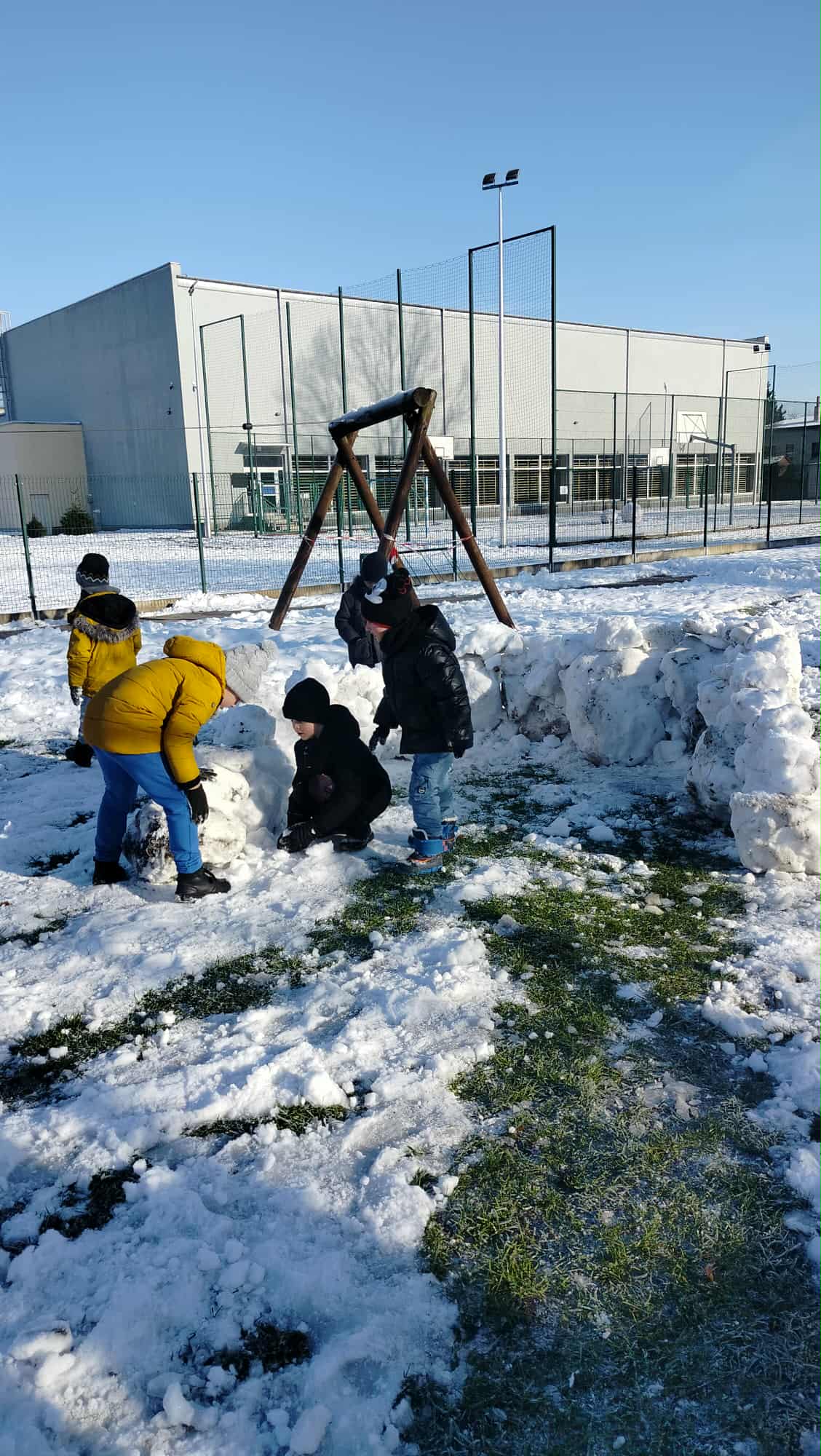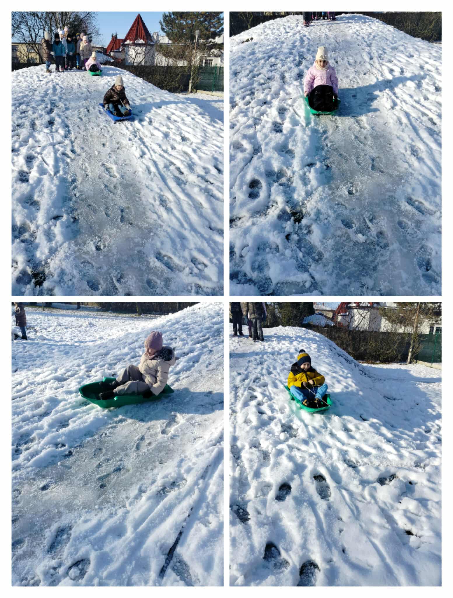 Zabawy na śniegu to jest to co dzieci lubią najbardziej. Mimo że śnieg spadł nam troszkę wcześniej nikomu to nie przeszkadza a już na pewno nie dzieciom. Korzystamy z pogody i śniegu bo za chwilę może zniknąć.