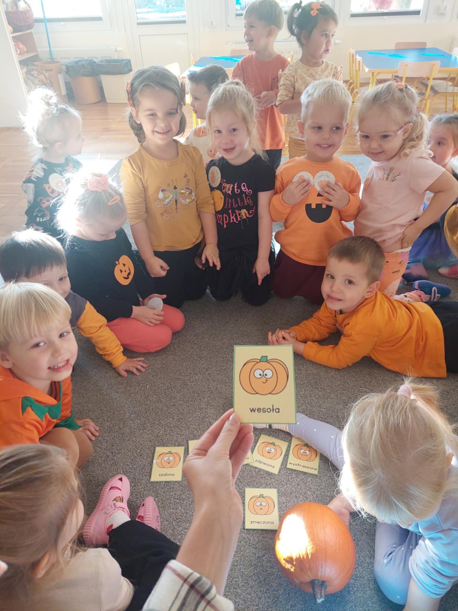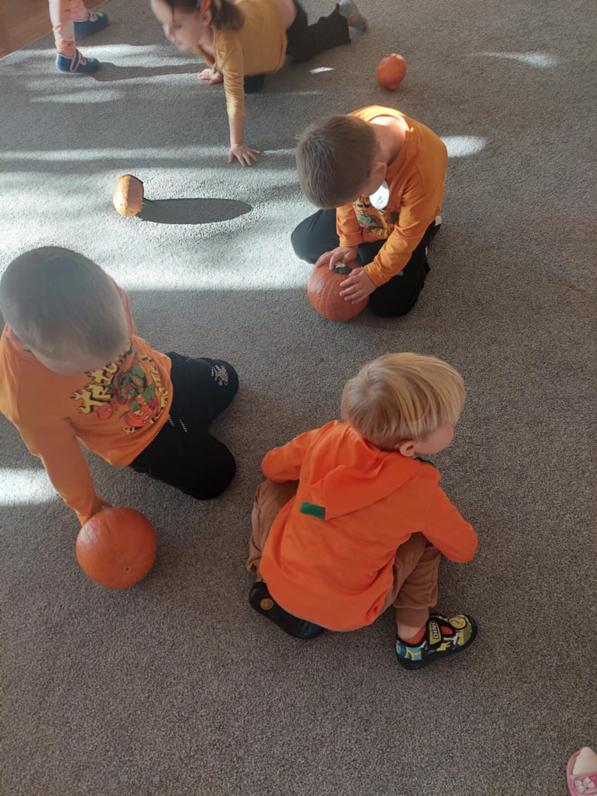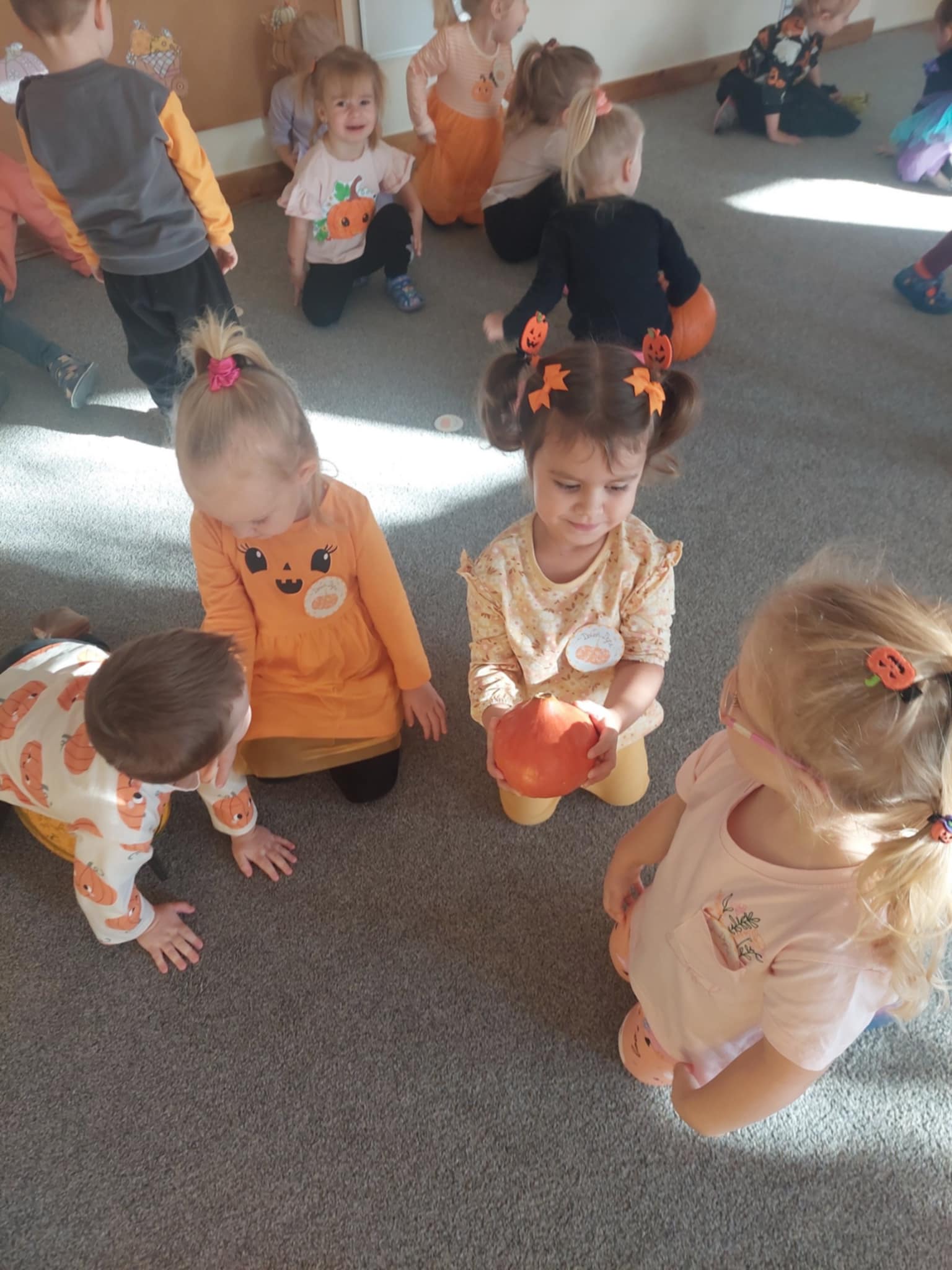 31 października w naszej grupie odbył się Dzień Dyni. Dzieci ubrały się w odzież w kolorze pomarańczowym. Dzień Dyni pozwolił nam poznać wielką różnorodność dyń i wzbogacił naszą wiedzę na ich temat. Wzięliśmy udział w licznych zabawach z dynią w roli głównej. Były „dyniowe” zawody, skoki przez dynię, toczenie jej, a nawet „dyniowe” tańce. Mróweczki wykonały również piękne prace plastyczne. Ten dzień był pełen wrażeń i radości.