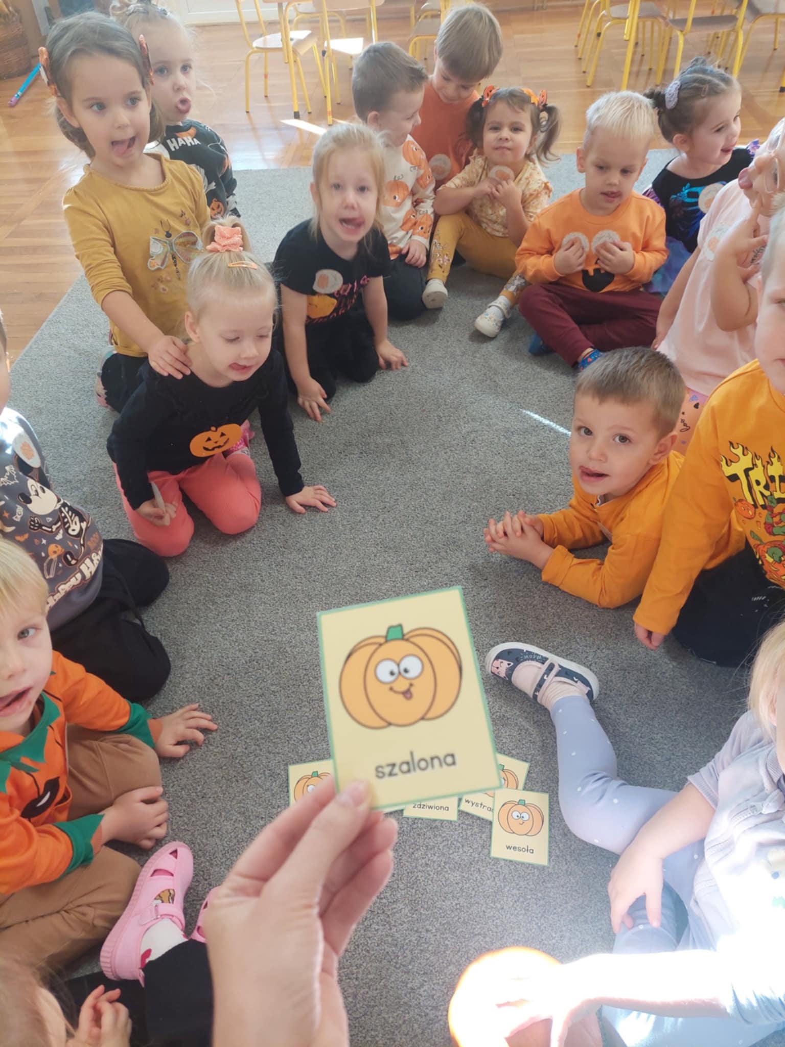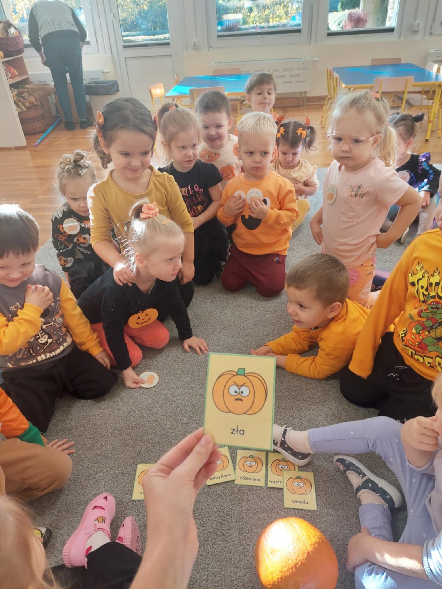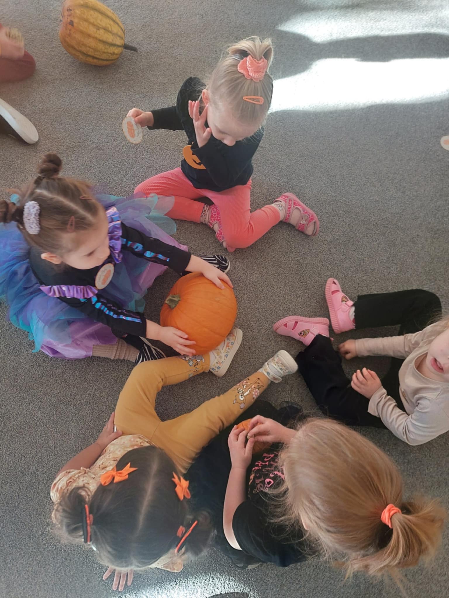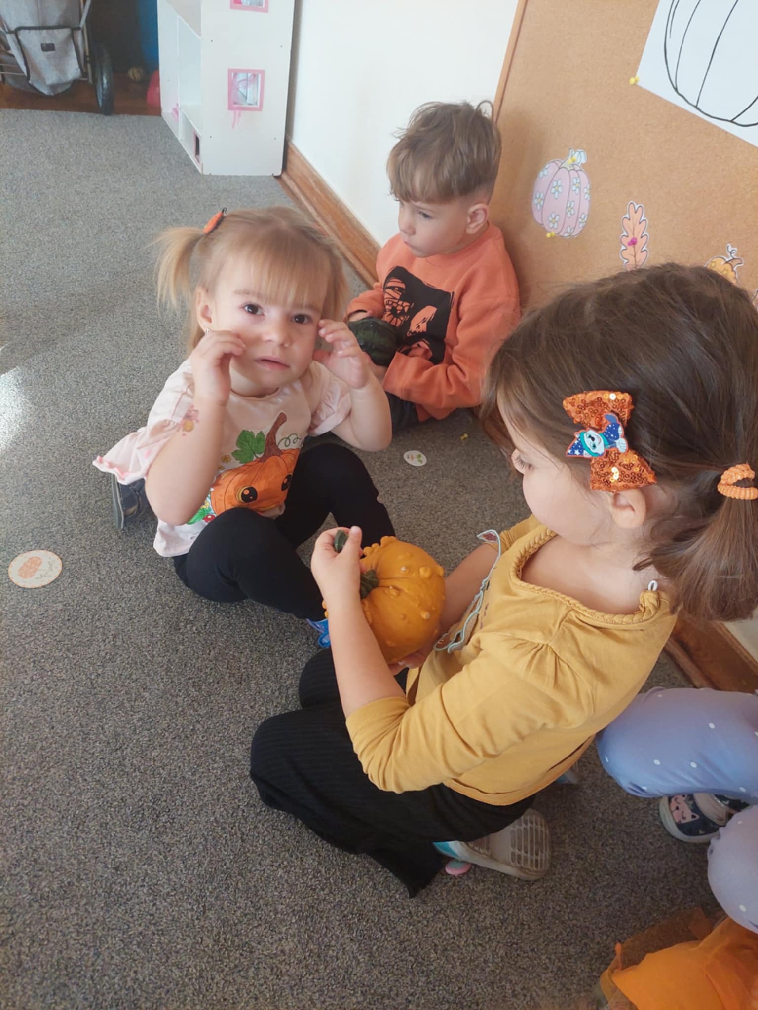 31 października w naszej grupie odbył się Dzień Dyni. Dzieci ubrały się w odzież w kolorze pomarańczowym. Dzień Dyni pozwolił nam poznać wielką różnorodność dyń i wzbogacił naszą wiedzę na ich temat. Wzięliśmy udział w licznych zabawach z dynią w roli głównej. Były „dyniowe” zawody, skoki przez dynię, toczenie jej, a nawet „dyniowe” tańce. Mróweczki wykonały również piękne prace plastyczne. Ten dzień był pełen wrażeń i radości.
