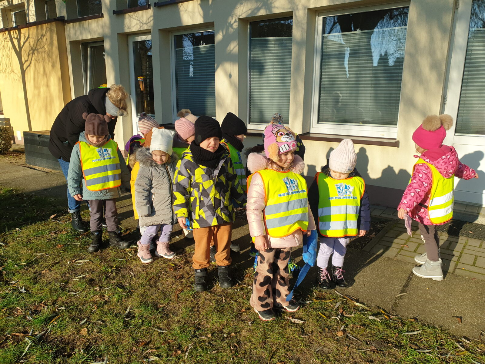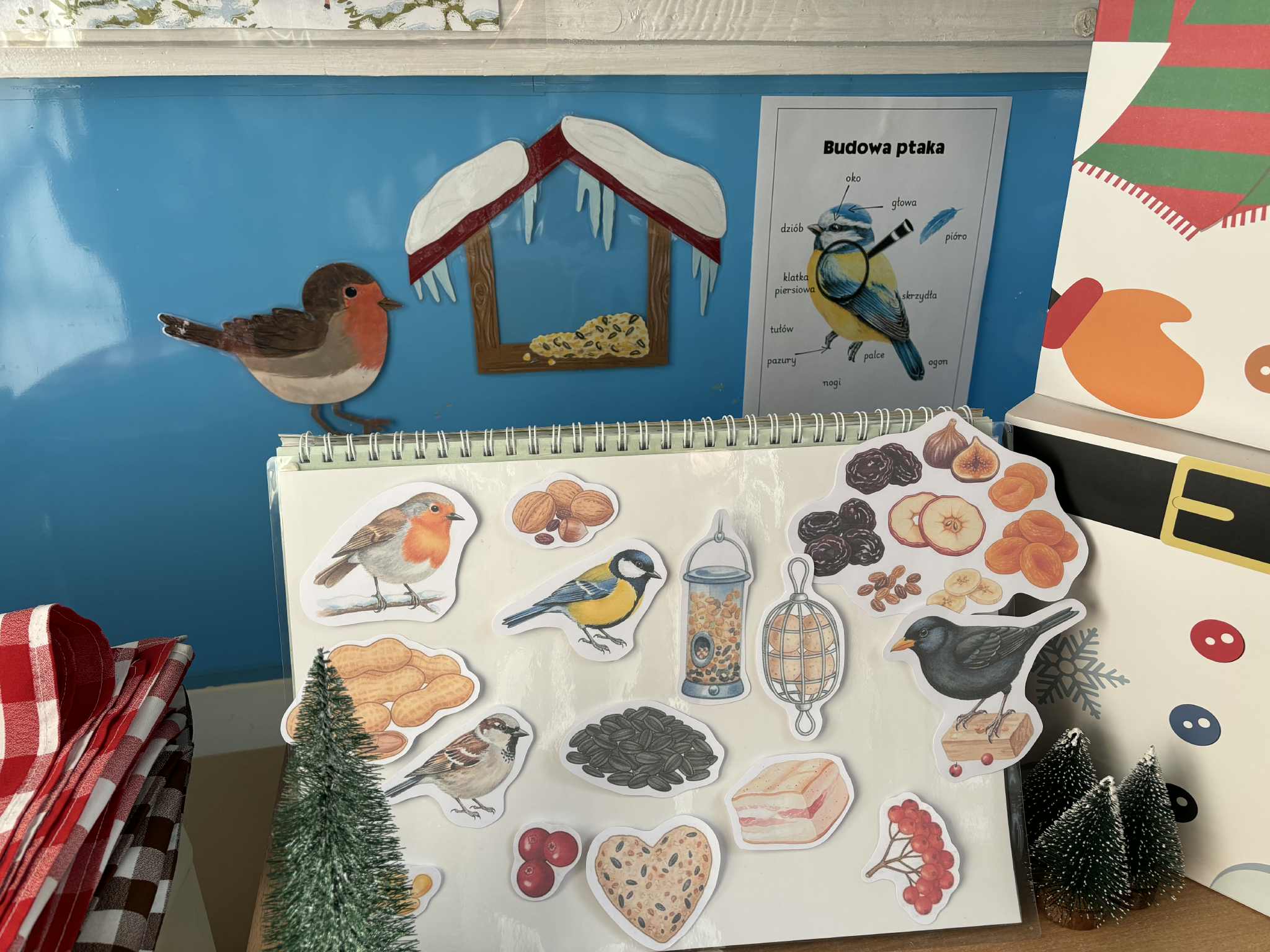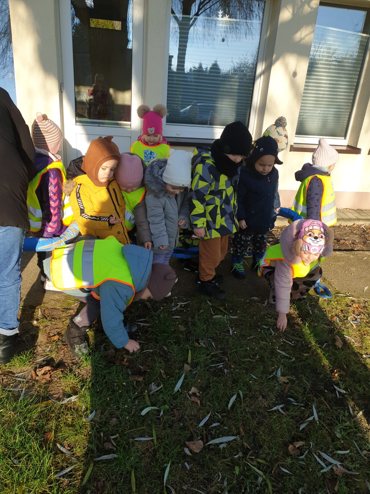 W styczniu wspólnie utworzyliśmy kącik tematyczny „Dokarmiamy ptaki”, wzbogacony o ilustracje ptaków zimujących w Polsce, karmników oraz różnych przysmaków. Dzieci z entuzjazmem układały elementy kącika, poznając nazwy ptaków i ucząc się, dlaczego zimą potrzebują naszej pomocy. Następnie grupa wybrała się na plac przedszkolny, gdzie rozsypała przysmaki dla ptaków. Spacer na świeżym powietrzu wywołał dużą radość z pomocy skrzydlatym przyjaciołom! Obiecaliśmy także systematyczne dokarmianie okolicznych ptaków przez całą zimę.