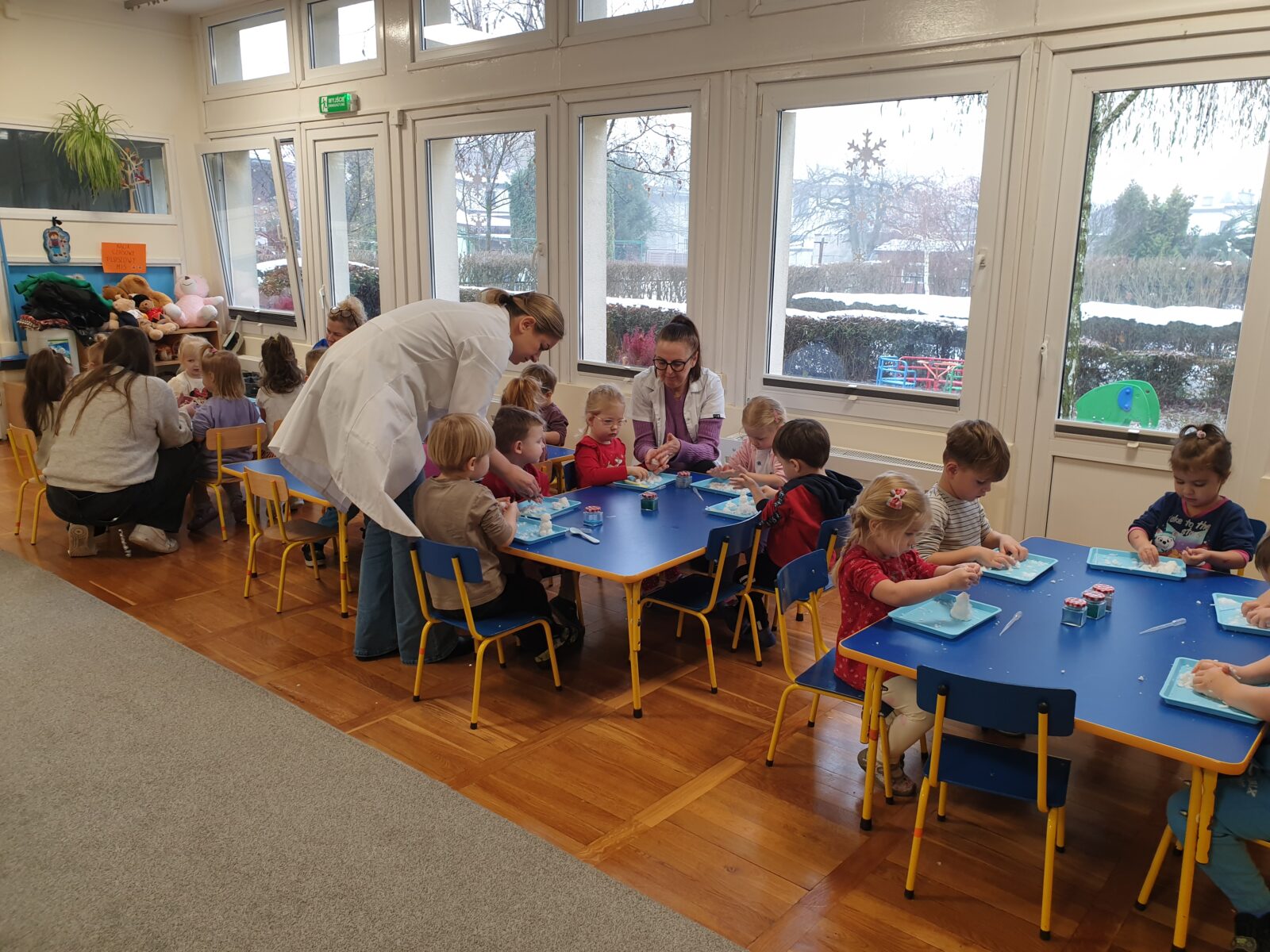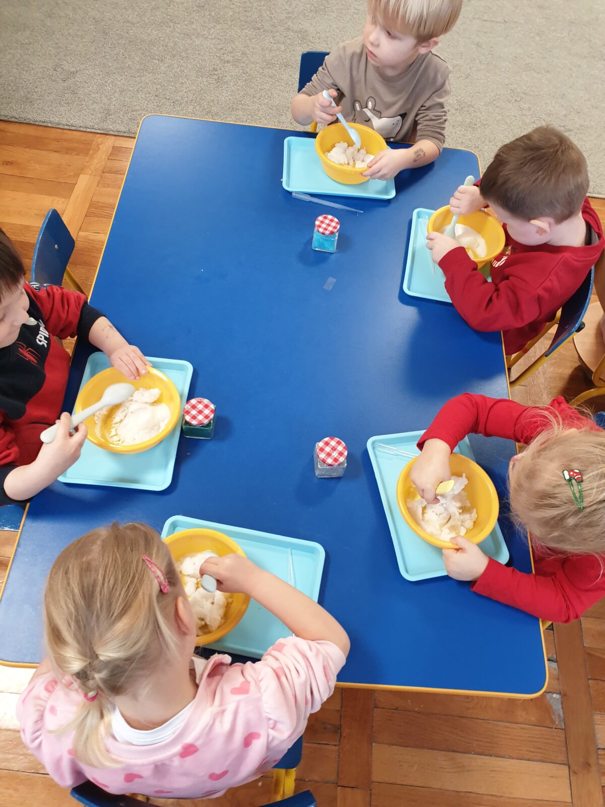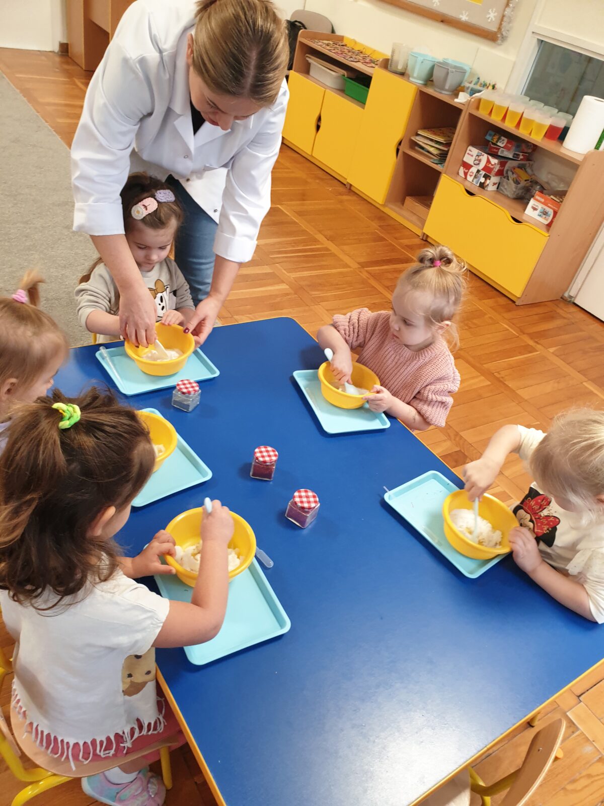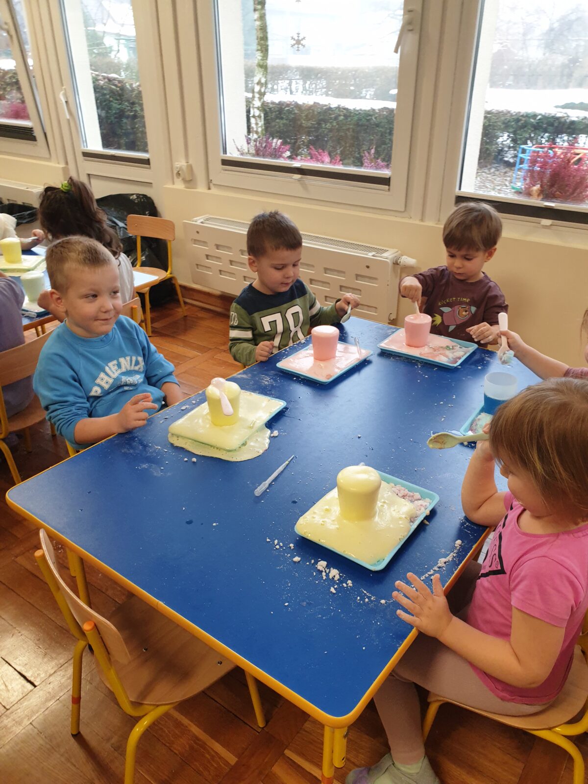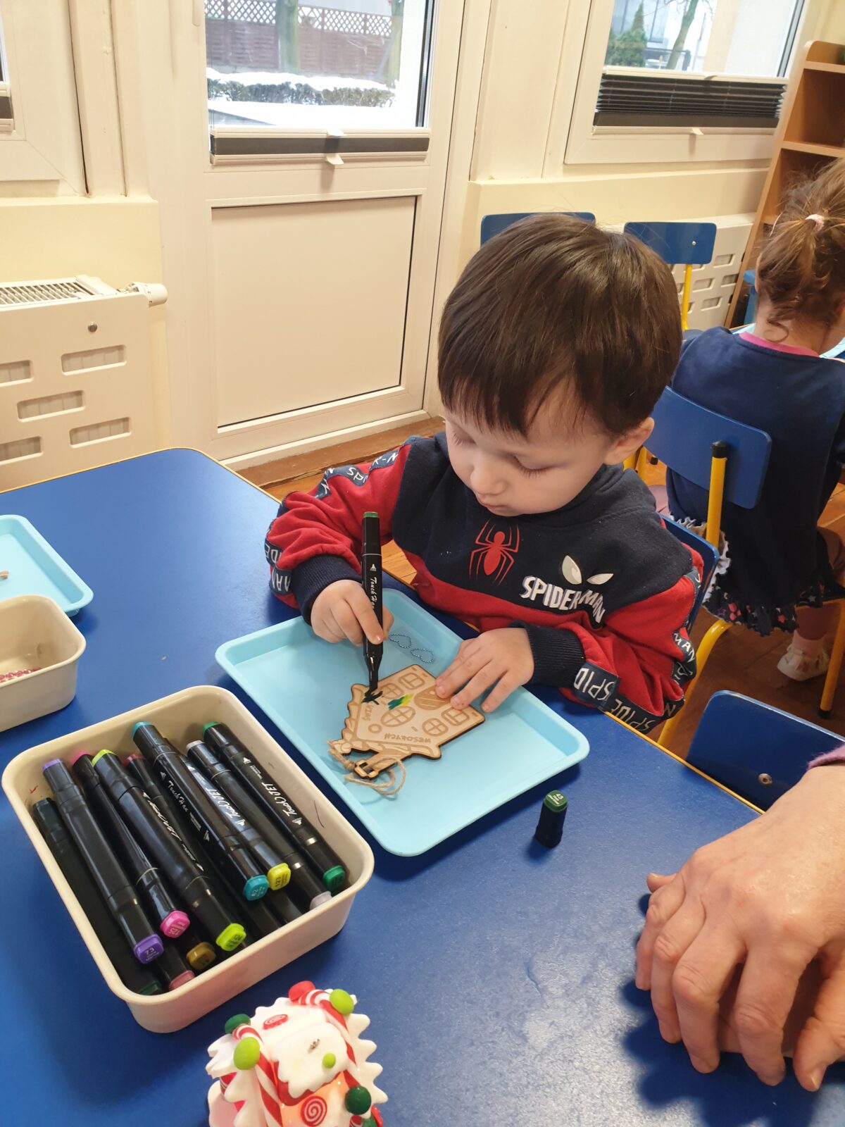 1 grudnia w grupie Mróweczki odbyły się świąteczne warsztaty plastyczne, wprowadzające dzieci w magię nadchodzących świąt Bożego Narodzenia. Przedszkolaki z wielkim zaangażowaniem ozdabiały zawieszki na choinkę, według własnych pomysłów. Następnie dzieci przygotowały sztuczny śnieg z bezpiecznych składników, lepiąc z niego urocze bałwany, co dostarczyło mnóstwo radości. Na zakończenie wykonano efektowny „wulkan”, a obserwacja kolorowej „erupcji” stała się niezapomnianą atrakcją edukacyjną.