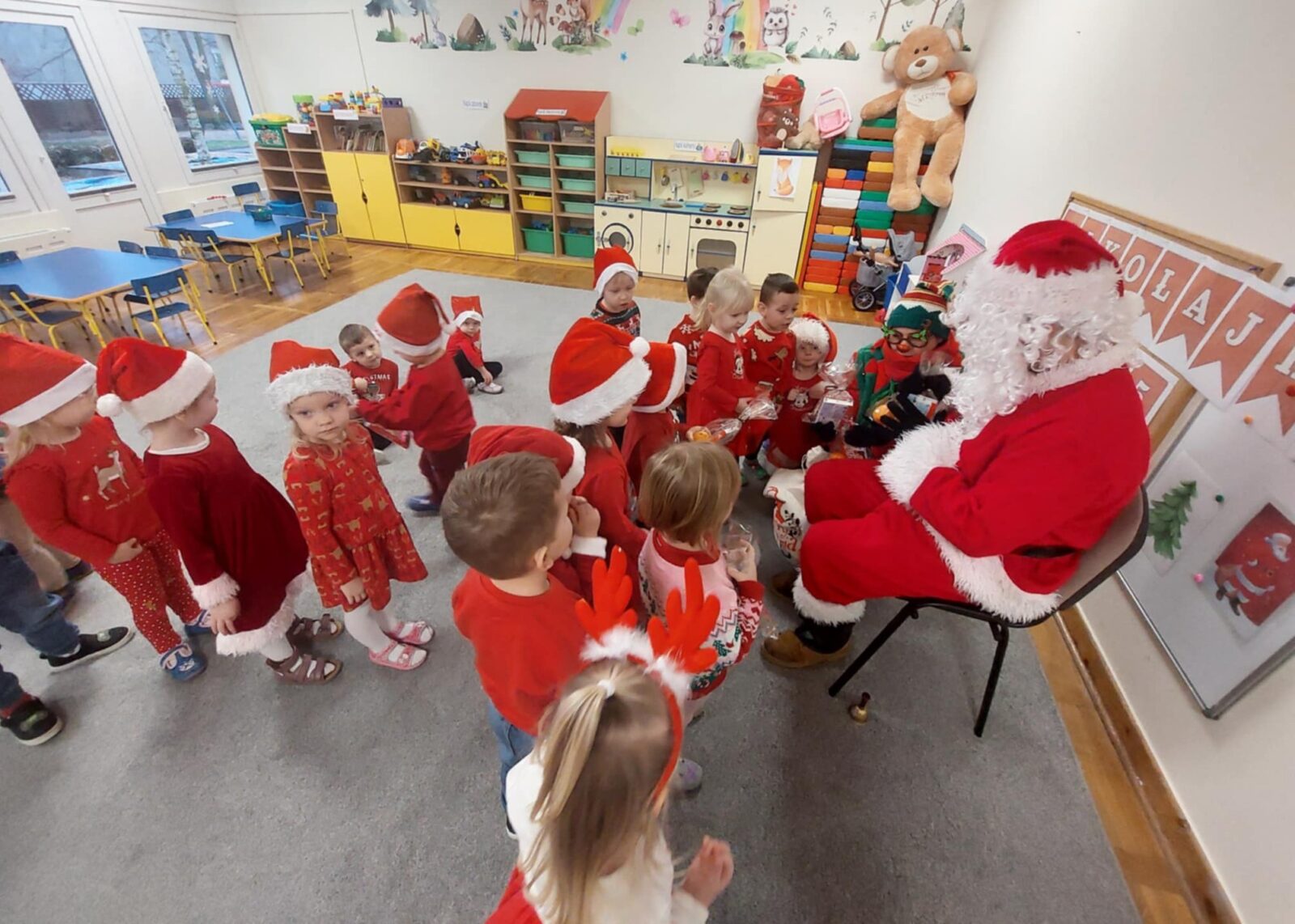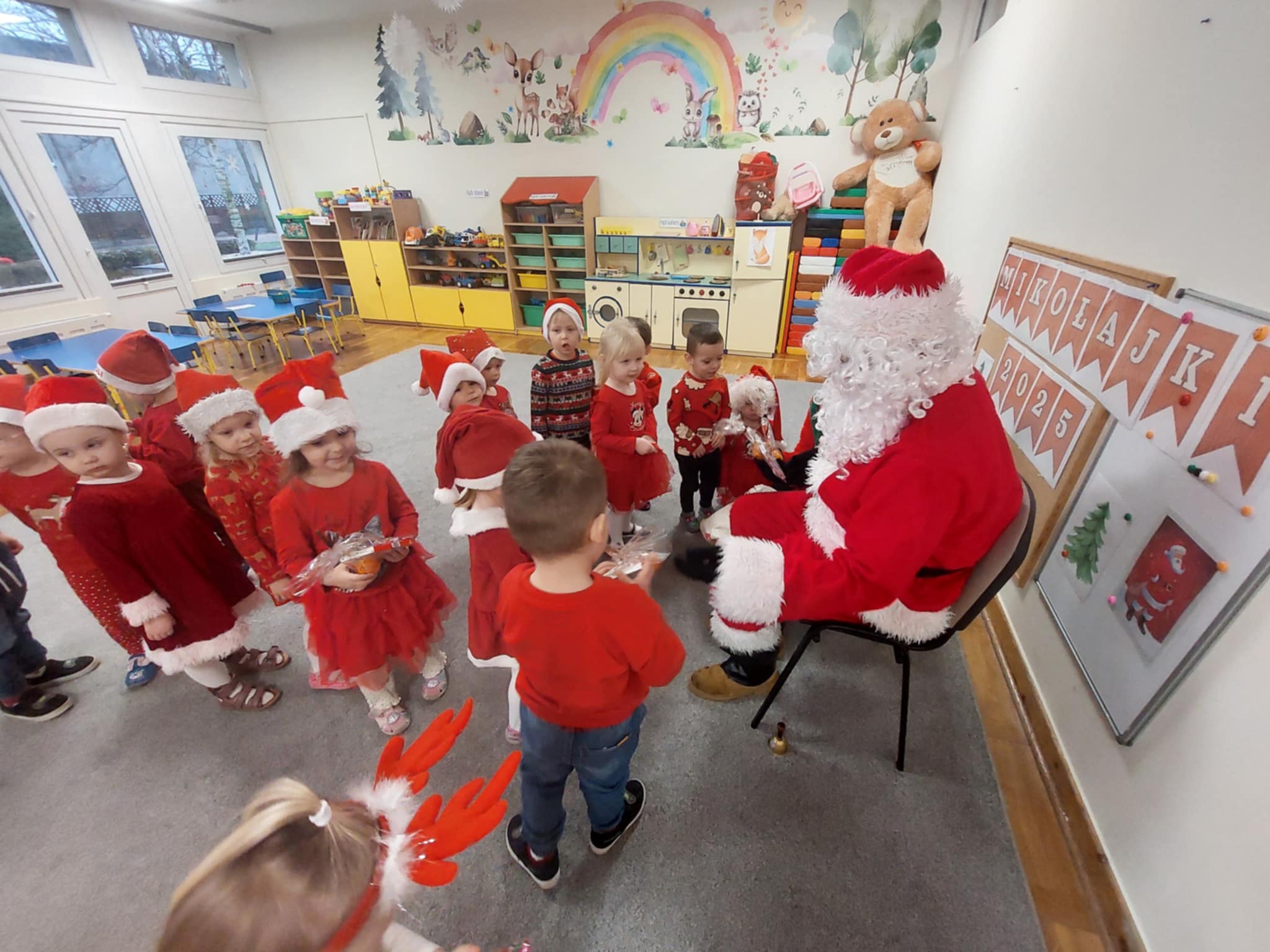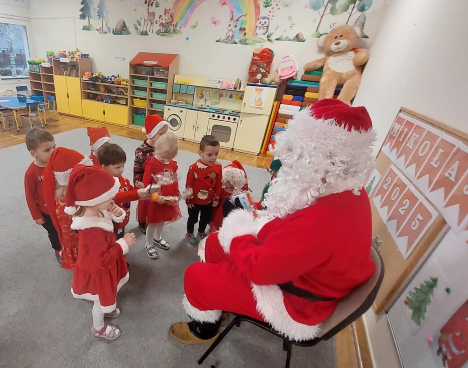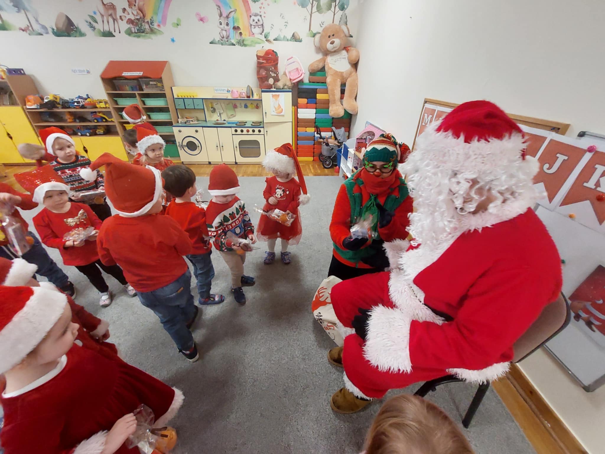 W piątek 5 grudnia Mróweczki już od rana czekały na Mikołaja. Dzieci nadsłuchiwały dźwięku dzwoneczków, które słychać było z daleka. I już wiadomo było, że do przedszkola zbliża się nikt inny, jak…. Święty Mikołaj i jego pomocnik Elf .Wszystkie przedszkolaki bardzo przeżywały to spotkanie, szczególnie te, które pierwszy raz witały Mikołaja. Długo oczekiwani goście wywołali uśmiech na twarzach przedszkolaków. Dzieci z ogromną radością przywitały Mikołaja śpiewając mu piosenkę. Każde dziecko złożyło obietnice, iż kolejny rok będzie grzeczne i posłuszne. Na zakończenie Święty Mikołaj wszystkim przedszkolakom osobiście przekazał piękne prezenty, a w nich – dla każdego coś dobrego.