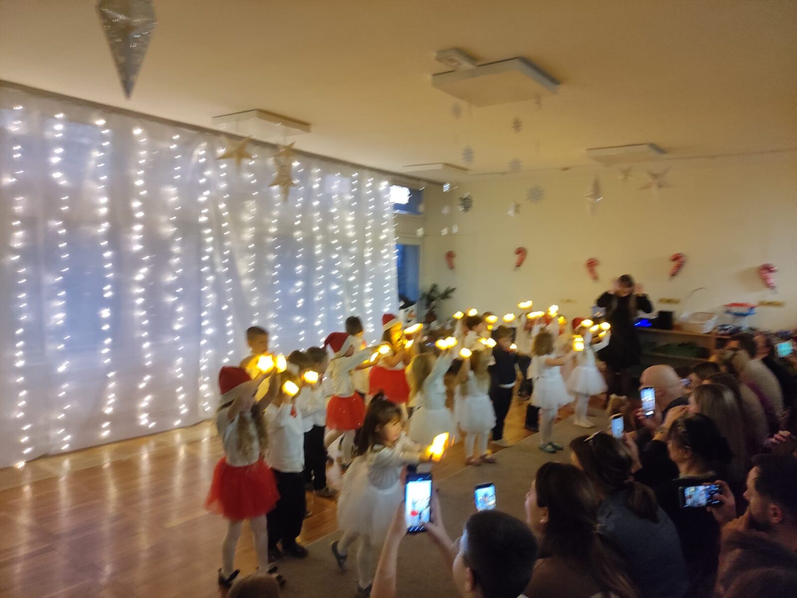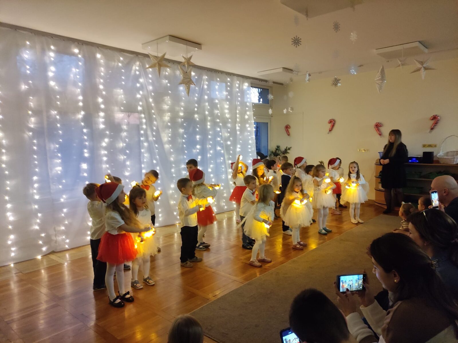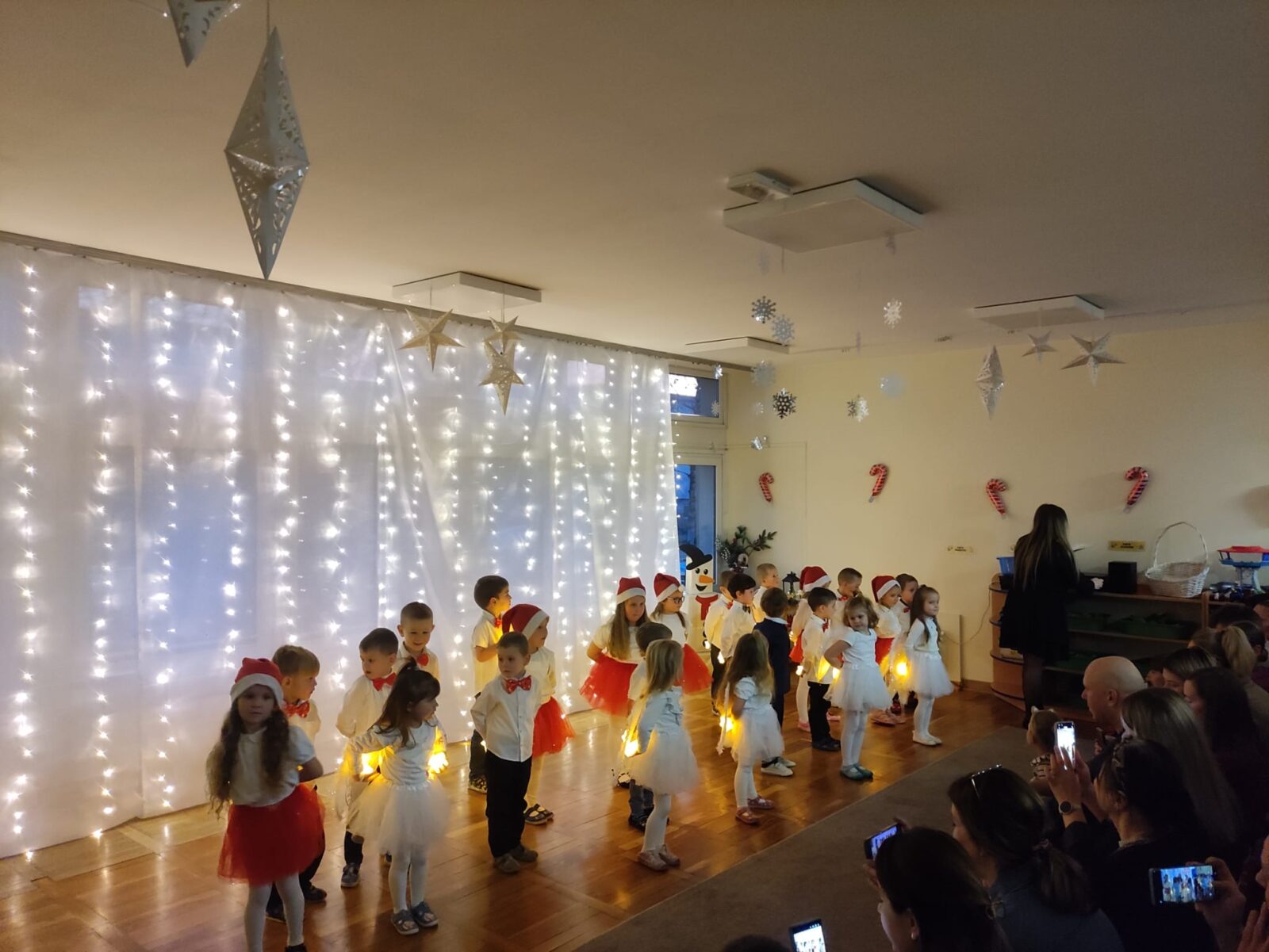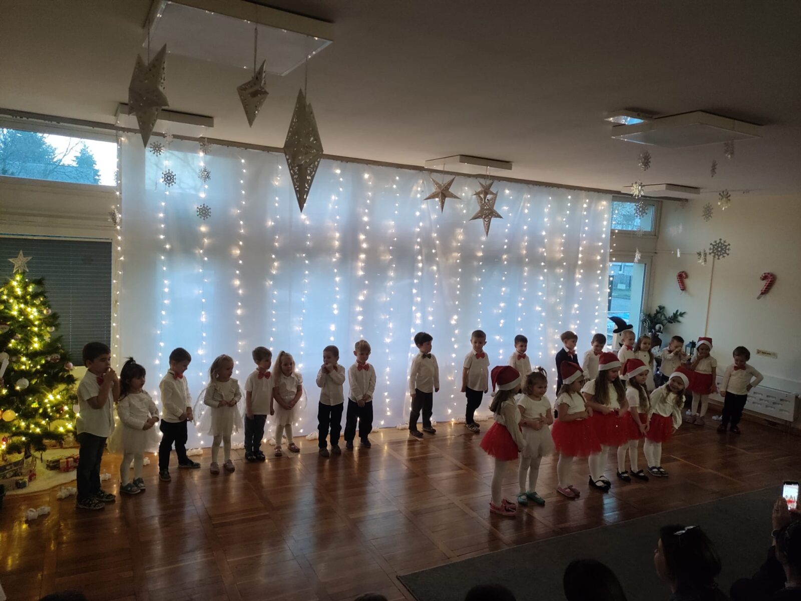 W dniu 16 grudnia 2025 roku odbyło się przedstawienie świąteczne dla rodziców dzieci z grupy Pszczółki. W trakcie przedstawienia dzieci zaprezentowały swoje umiejętności wokalne, recytatorskie i taneczne. Nasze spotkanie przebiegło w bardzo miłej, świątecznej atmosferze, a rodzice z dziećmi mogli pogłębiać rodzinne więzi i spędzić razem piękny, magiczny przedświąteczny czas w blasku choinki.