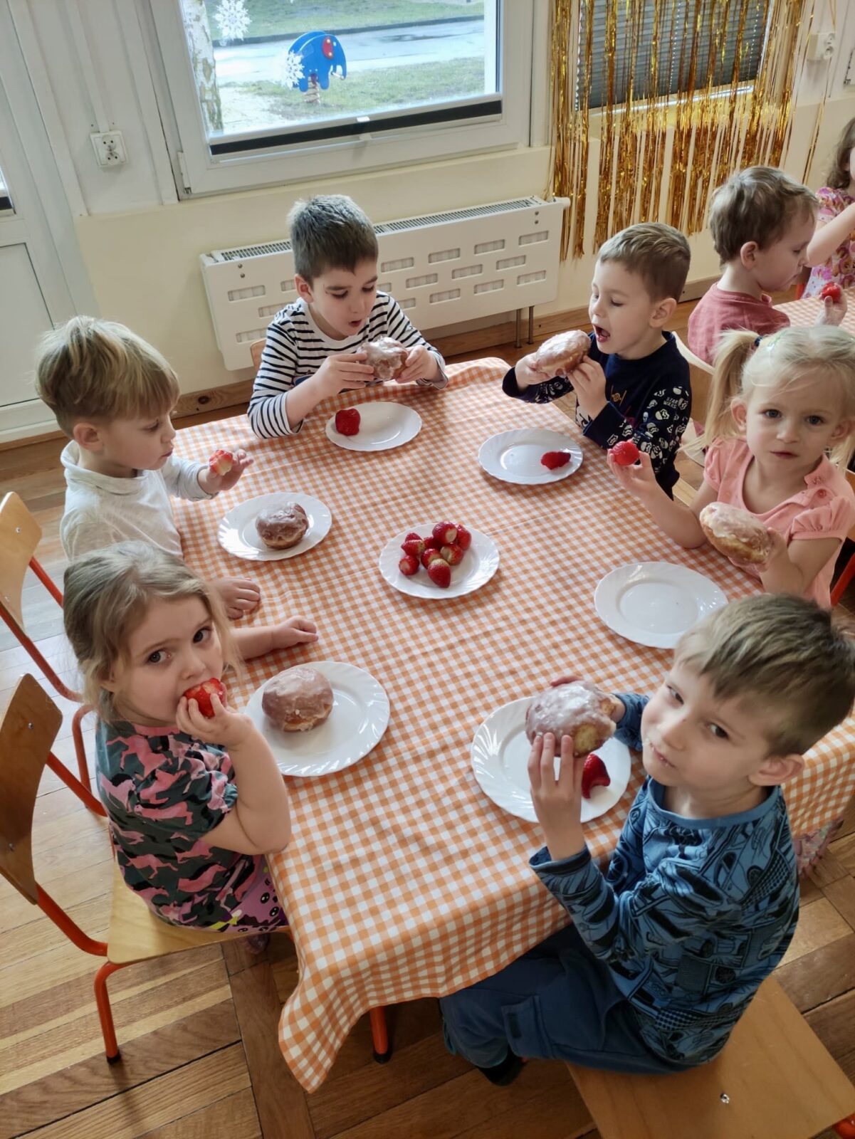 Pszczółki również świętowały Tłusty Czwartek poprzez wykonywanie zadań ukrytych w pączkach, poznanie i nazywanie ich smaków na obrazkach, a także zajadanie się pączkami. :)🍩