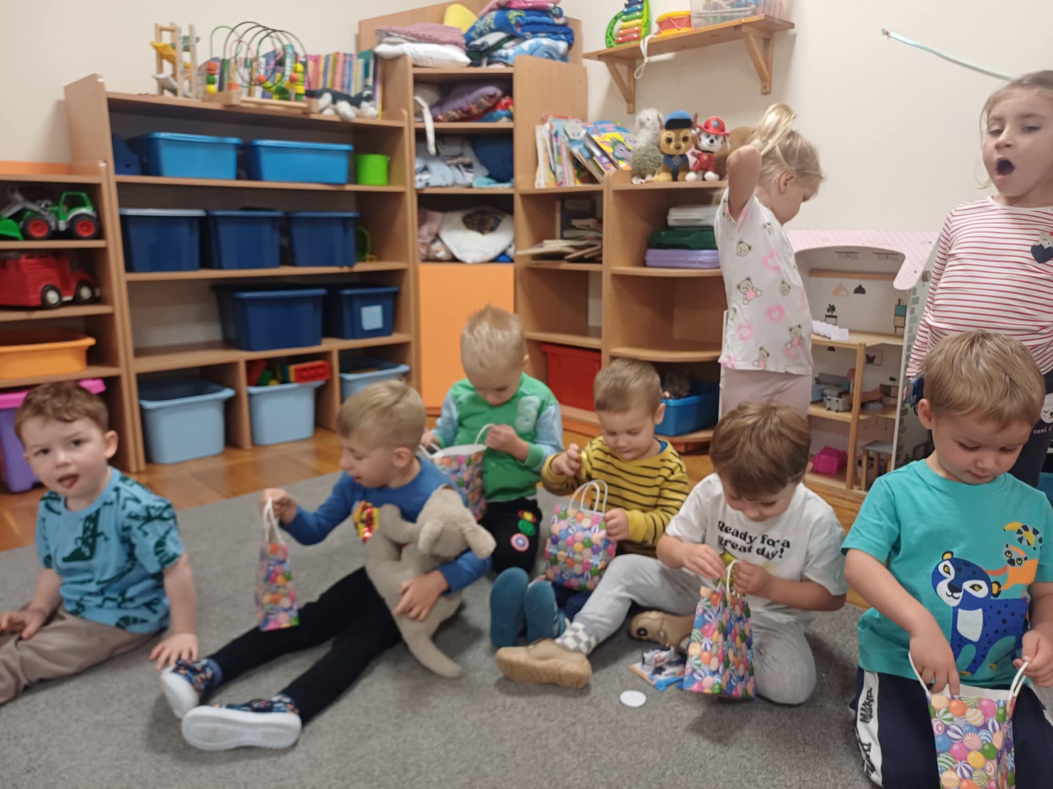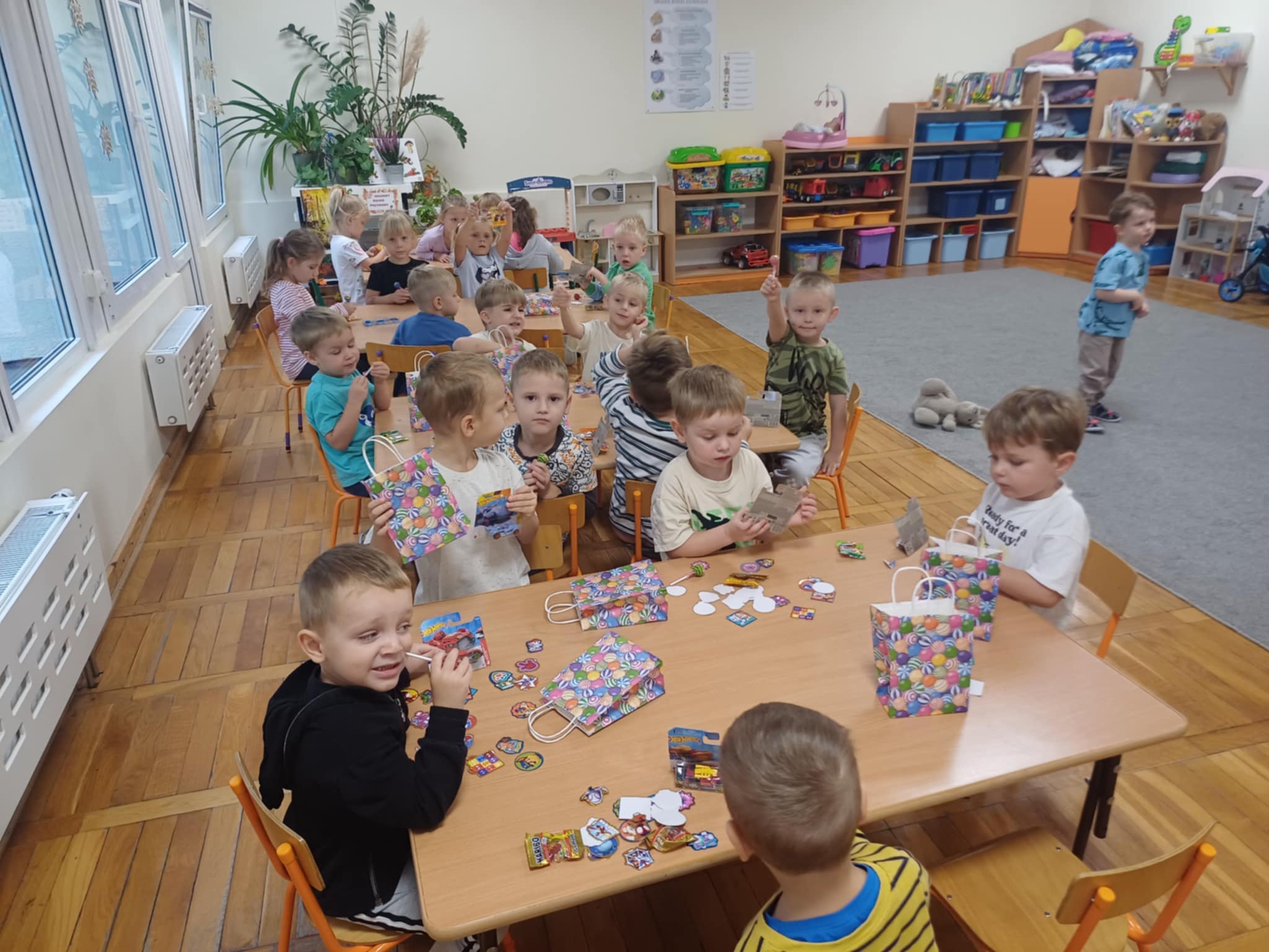 30 września jest bardzo ważnym dniem, ponieważ wtedy obchodzimy Dzień Chłopca. Jest to doskonała okazja do integracji gupy i wykazania się empatią. Dziewczynki złożyły życzenia chłopcom i wręczyły im prezenty, a następnie wspólnie usiedli do słodkiego poczęstunku. Był to mile spędzony czas pełen radości,