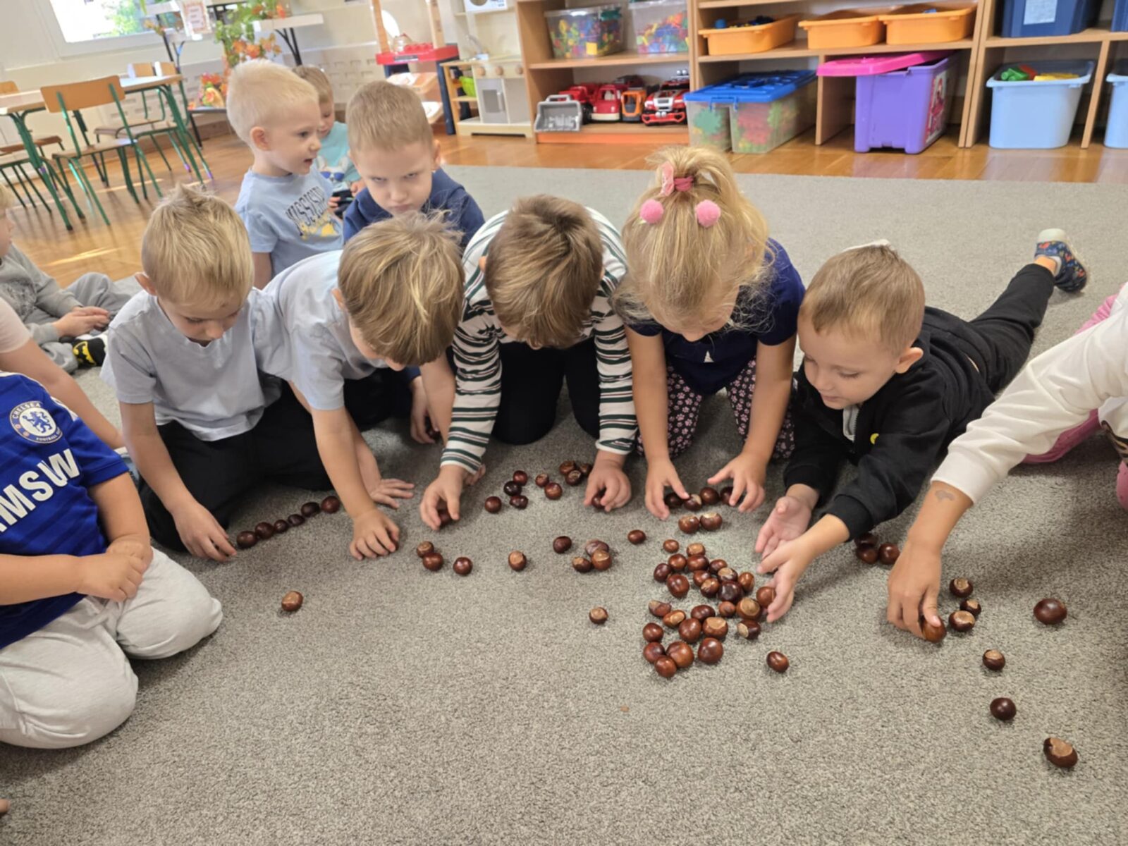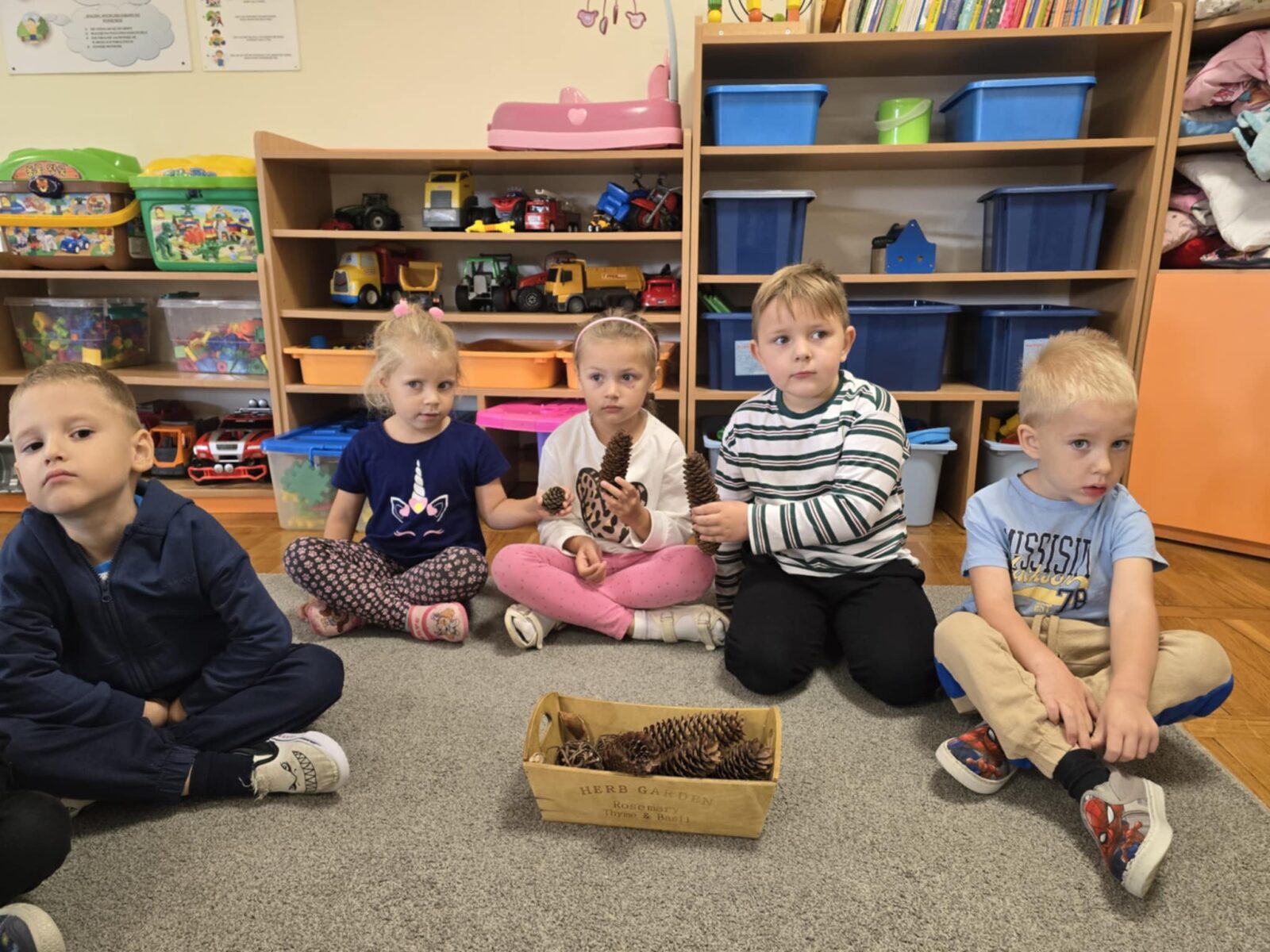 23 września, z okazji pierwszego dnia jesieni, w naszej sali powstał jesienny kącik przyrody. Znajdują się w nim dary jesieni, które nie tylko rozwijają zainteresowanie przyrodą, ale są także świetnym materiałem manipulacyjnym.