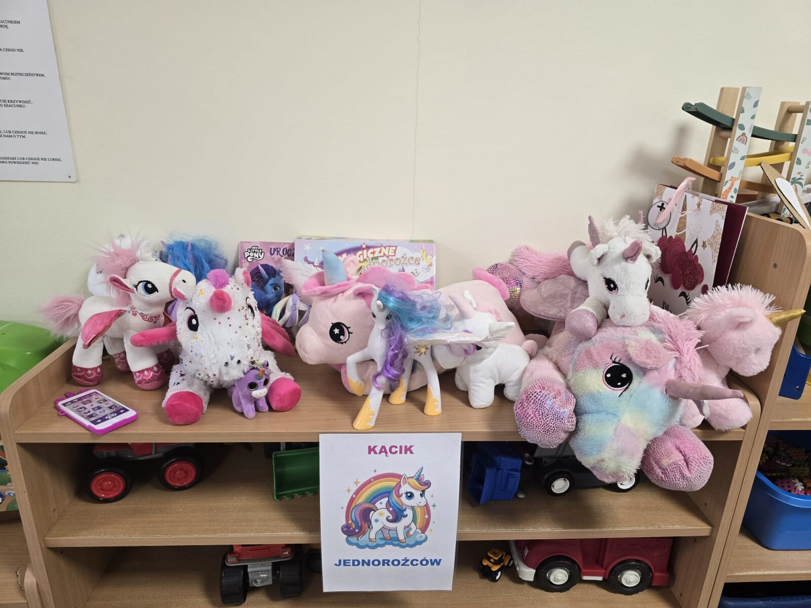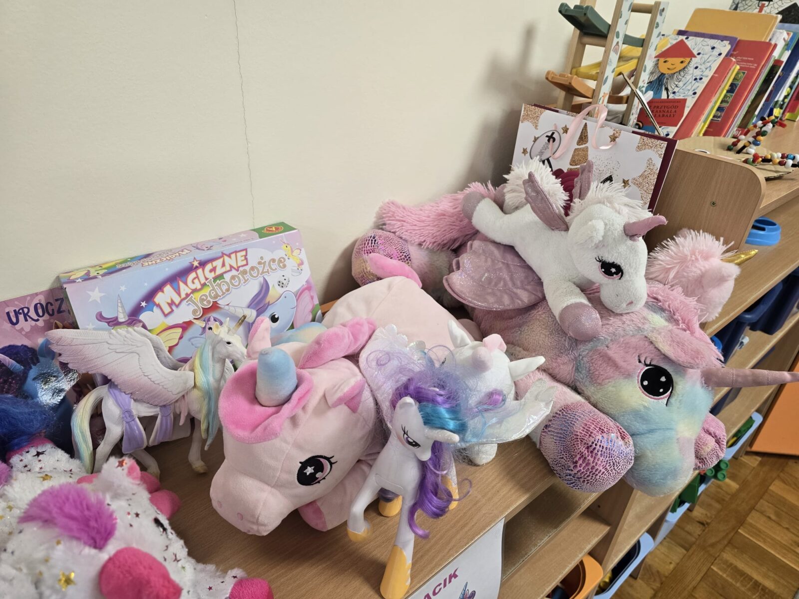 Z okazji Dnia Jednorożca, powstał w naszej grupie „Kącik Jednorożców”. Zrobiło się różowo, magicznie i przytulaśnie. Była to także doskonała okazja do poznania nowych gier i zabaw.