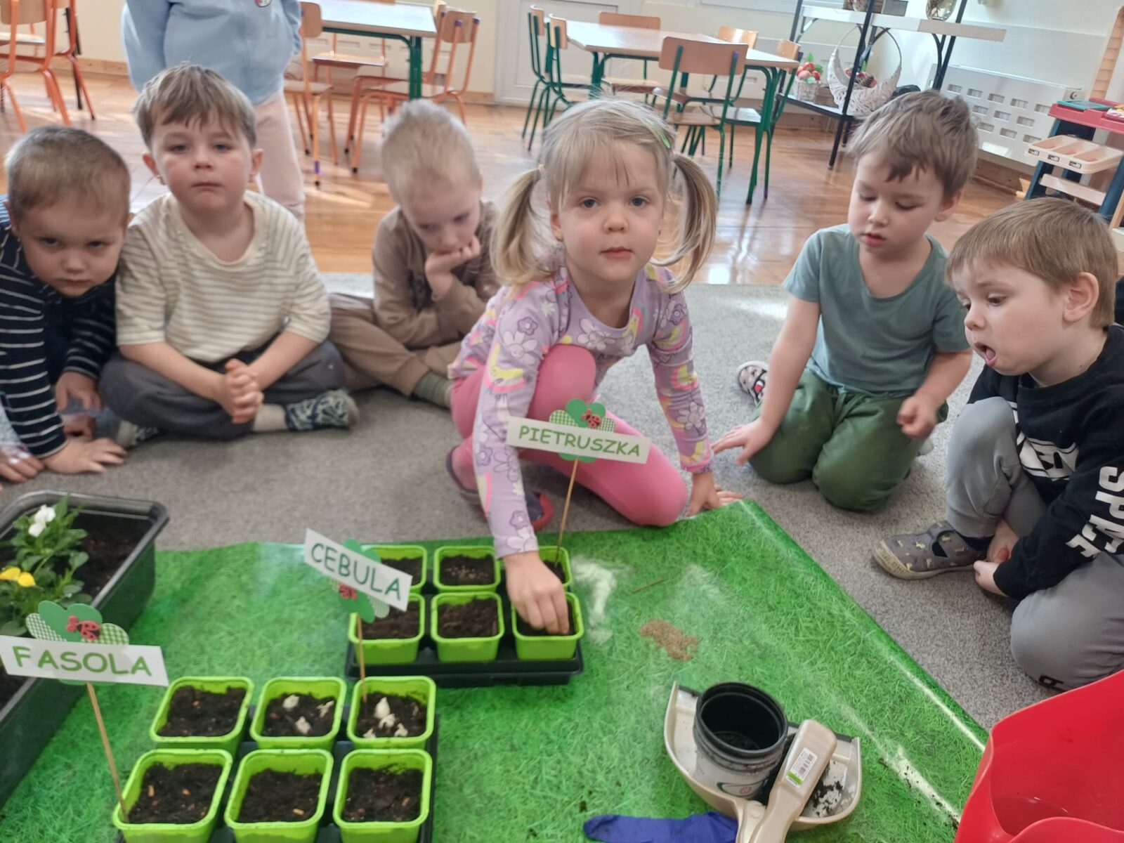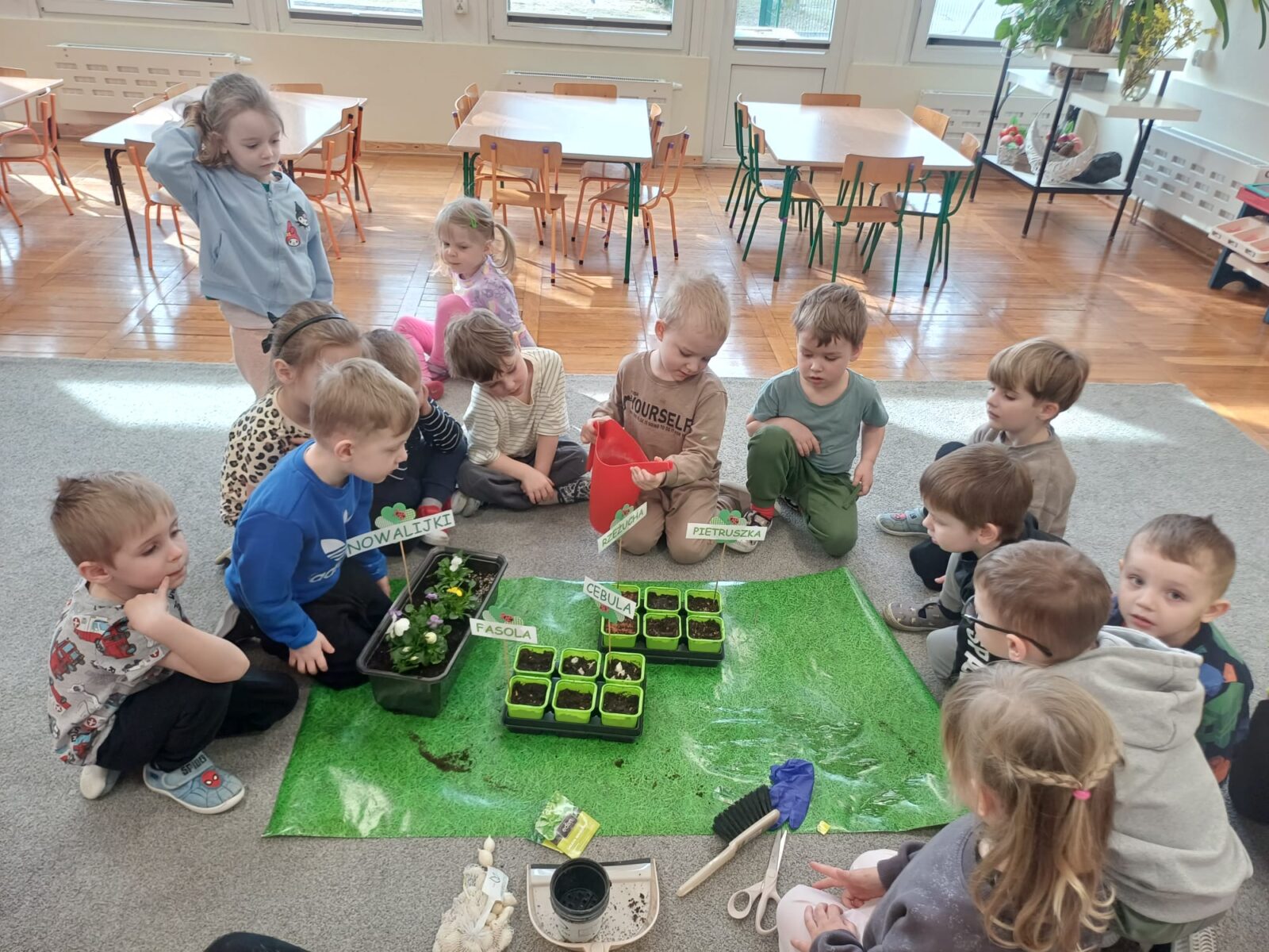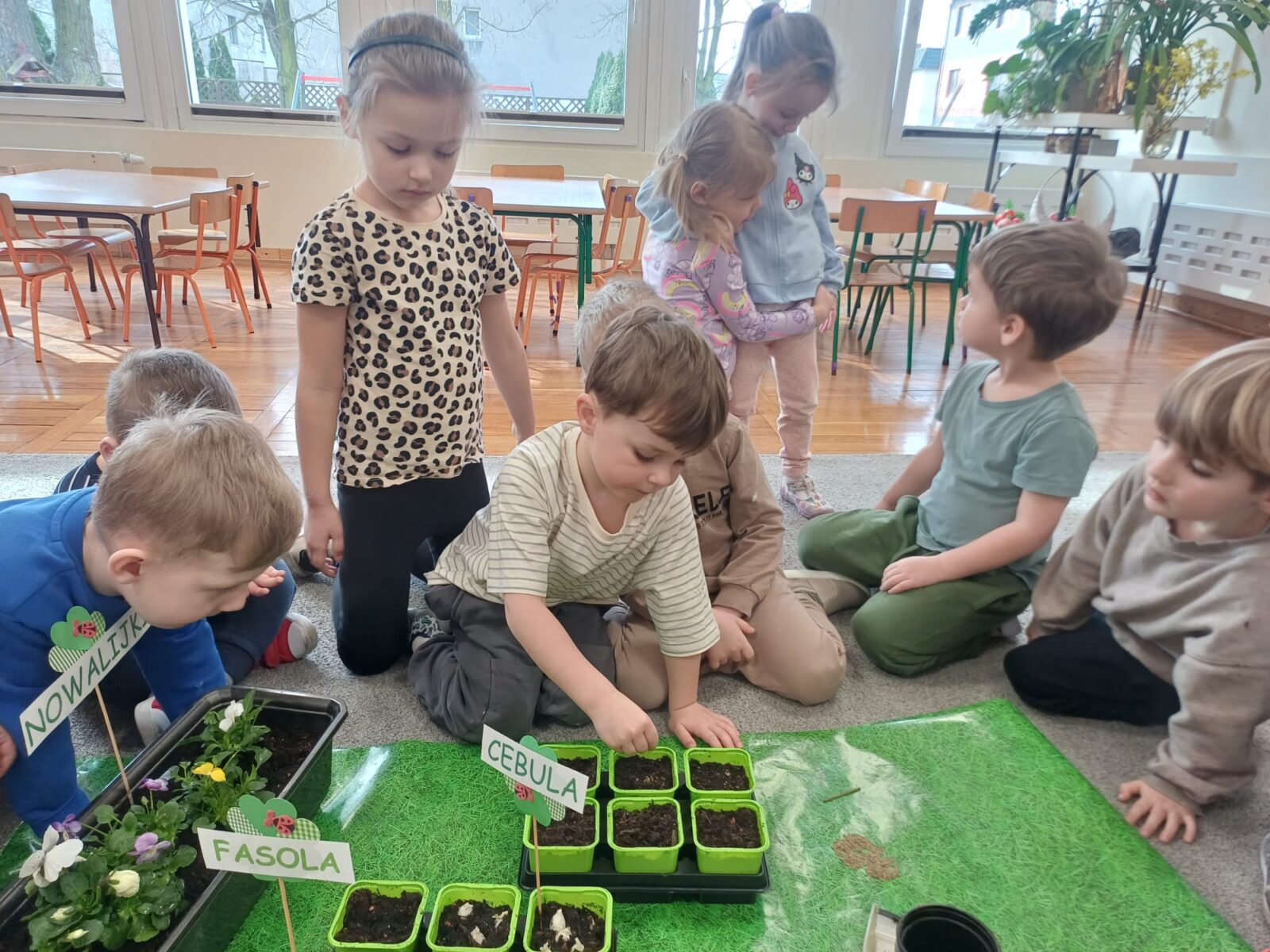W grupie „Żuczki” już nie możemy doczekać się wiosny i przywołujemy ją bardzo usilnie, dlatego też powstał u nas „Kącik Młodego Ogrodnika”. Dzieci nie tylko dowiedziały się czego roślina potrzebuje do wzrostu, ale także zamienili się w prawdziwych ogrodników. Przedszkolacy samodzielnie posadzili nowalijki oraz wysiali nasiona m.in. rzeżuchy i pietruszki. Wszystkim bardzo podobała się rola ogroników i z wielkim zaangażowaniem wzięli udział w zajęciach.