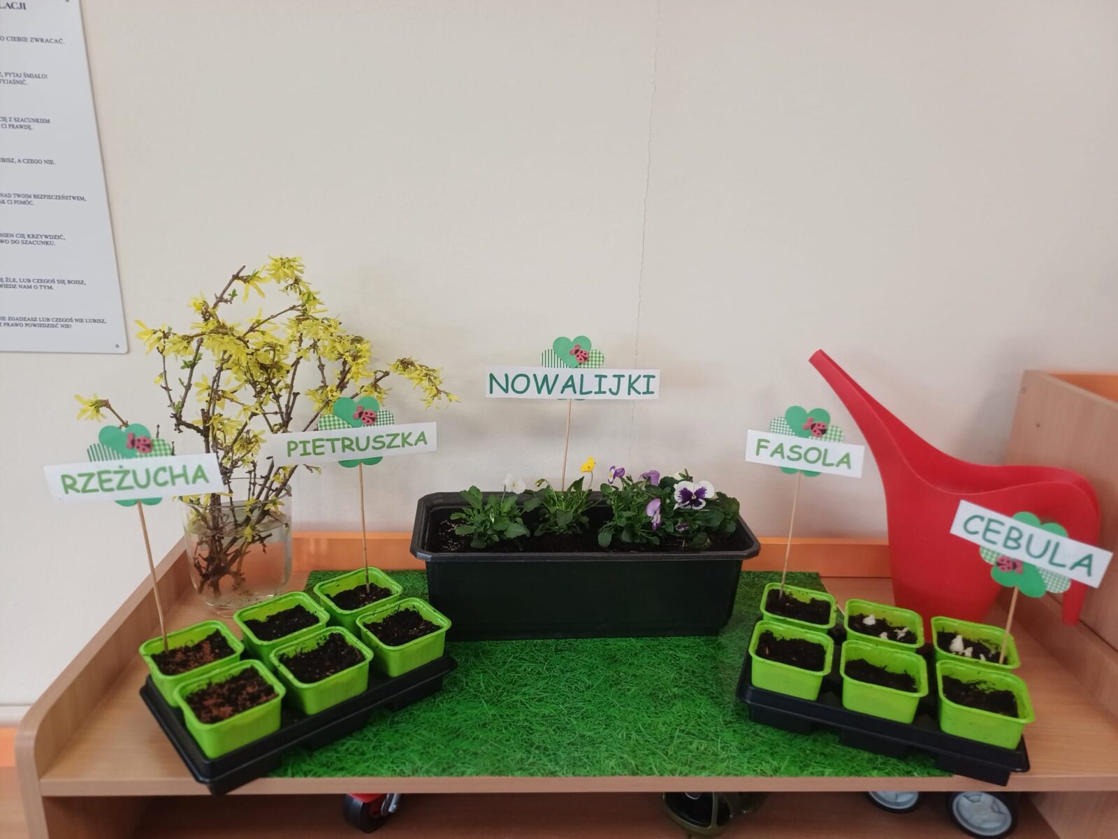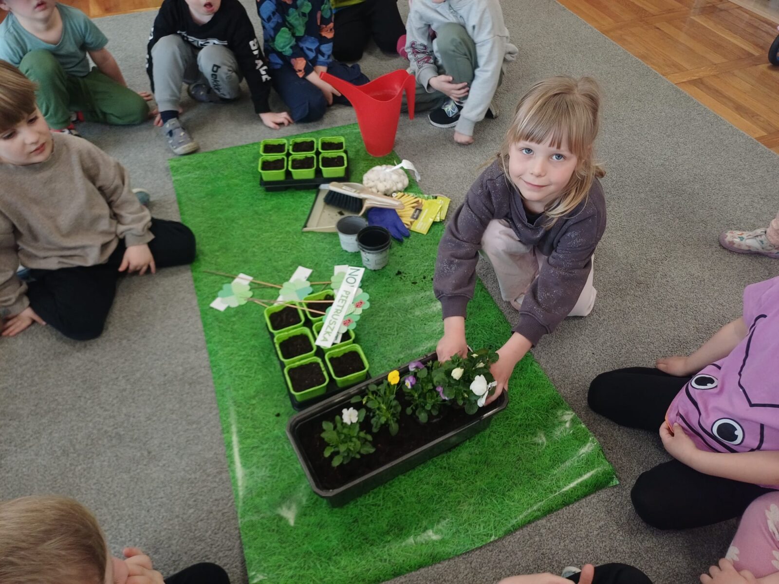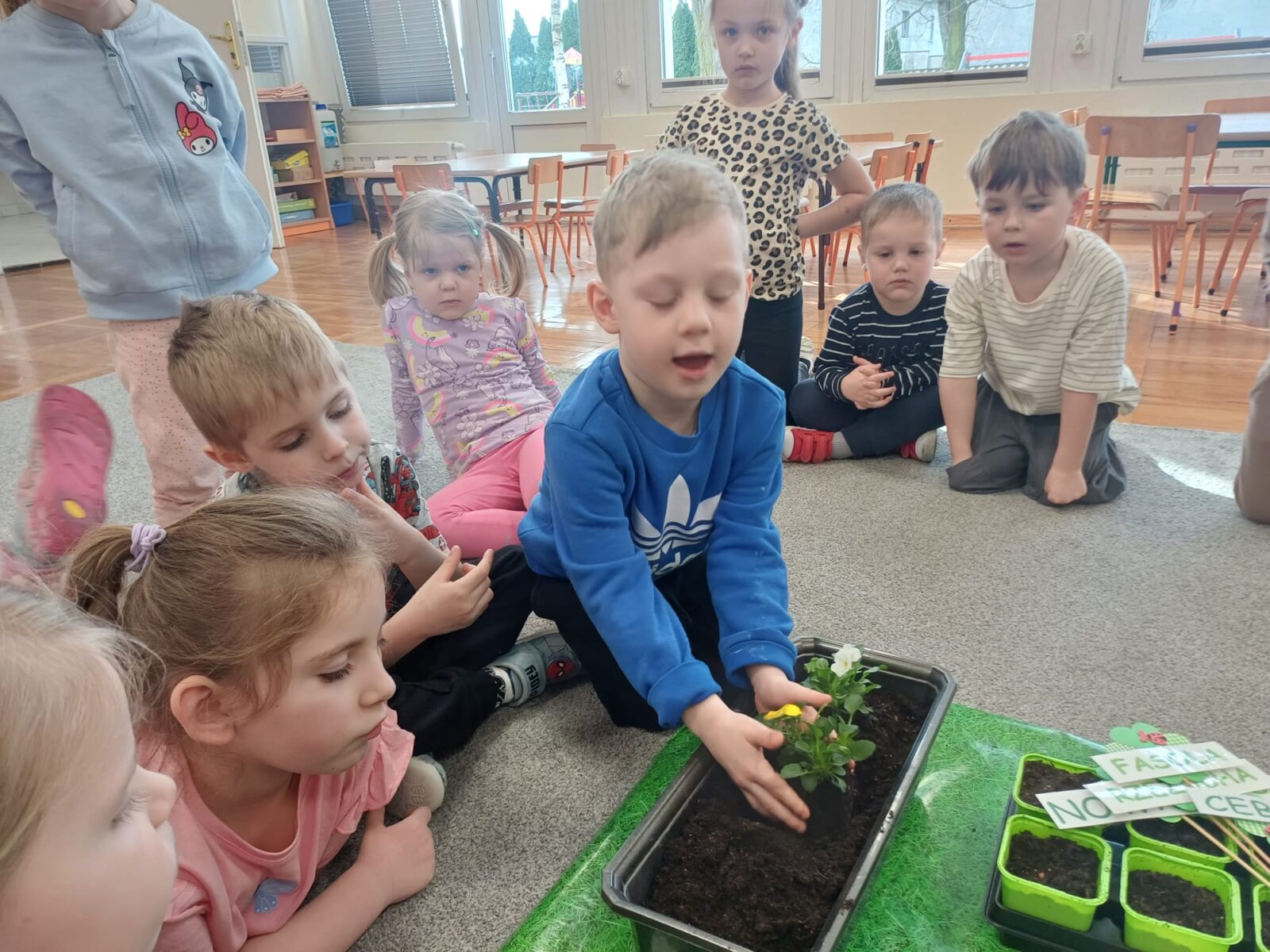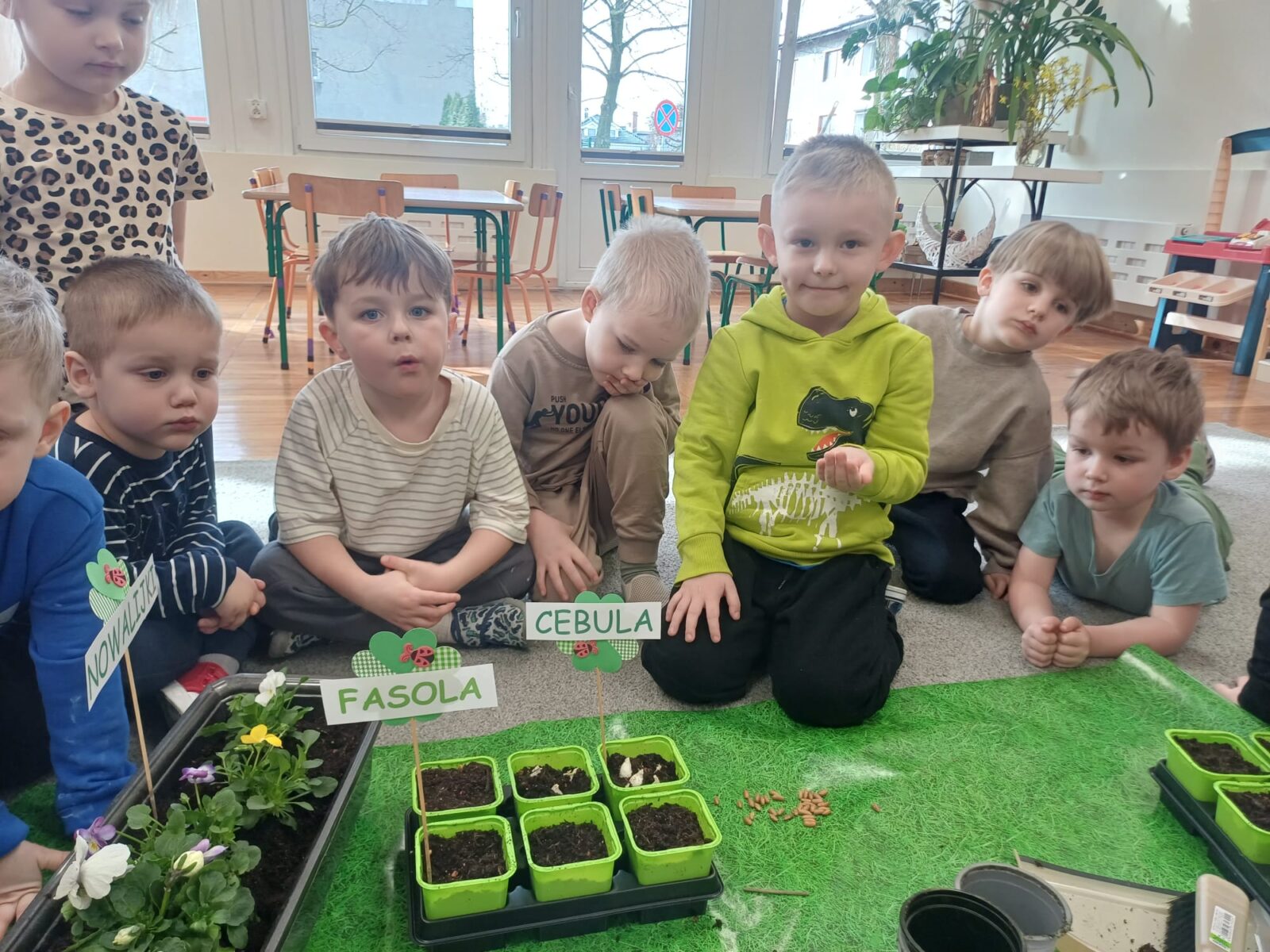 W grupie „Żuczki” już nie możemy doczekać się wiosny i przywołujemy ją bardzo usilnie, dlatego też powstał u nas „Kącik Młodego Ogrodnika”. Dzieci nie tylko dowiedziały się czego roślina potrzebuje do wzrostu, ale także zamienili się w prawdziwych ogrodników. Przedszkolacy samodzielnie posadzili nowalijki oraz wysiali nasiona m.in. rzeżuchy i pietruszki. Wszystkim bardzo podobała się rola ogroników i z wielkim zaangażowaniem wzięli udział w zajęciach.
