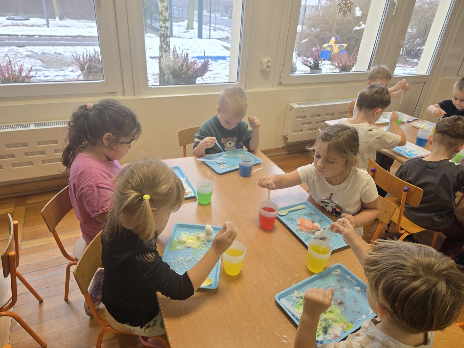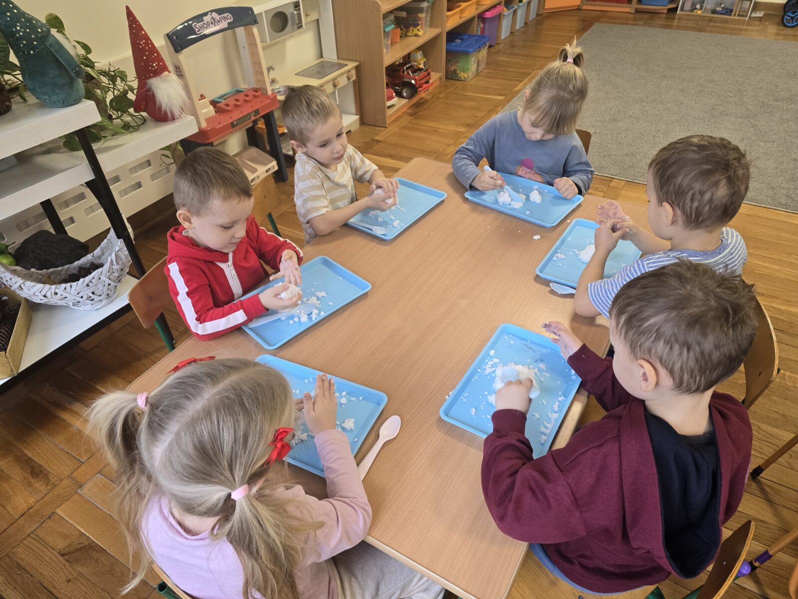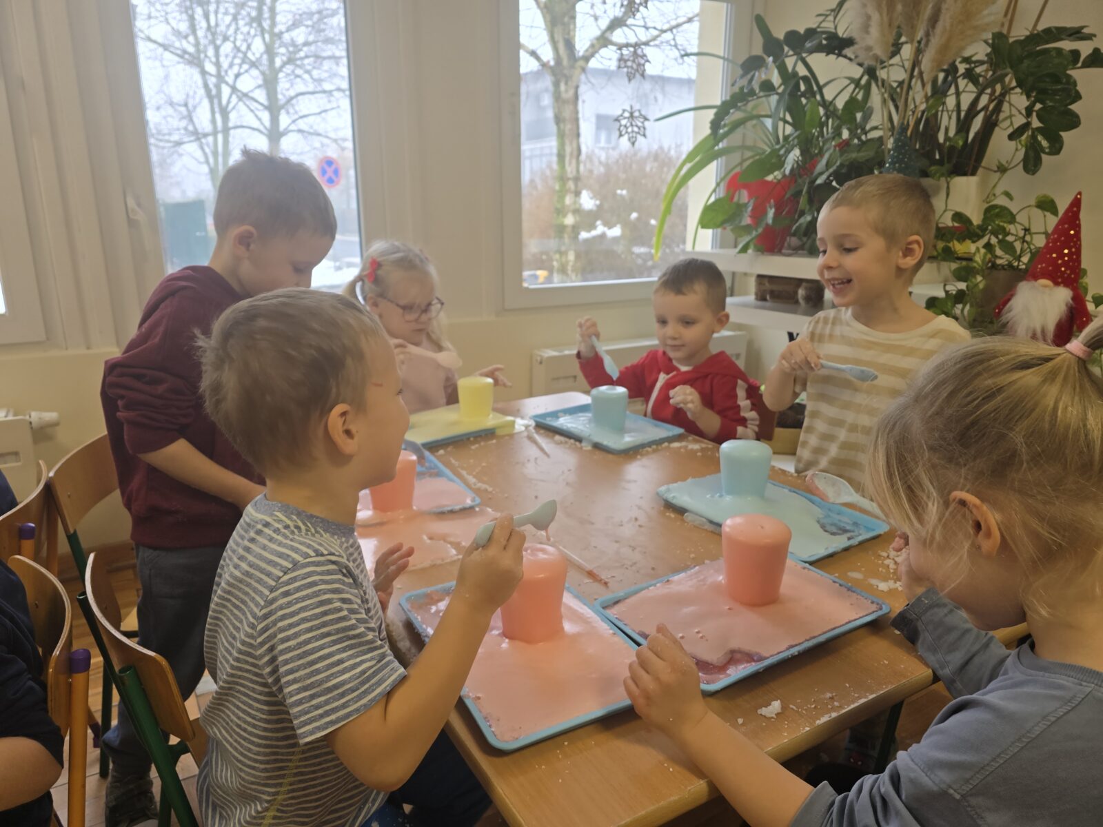 1 grudnia wkroczyliśmy w magiczny czas świąteczno-zimowy, a wszystko za sprawą warsztatów przeprowadzonych przez Akademię Eksperymentów. Nasi przedszkolacy mieli pełne ręce roboty… Zrobili zawieszkę na choinkę i suchy śnieg, z którego powstały bałwanki. Następnie roztapiali te bałwanki, a na końcu samodzielnie stworzyli kolorowe wulkany. Był to dla nich fantastyczny dzień pełen nowych doświadczeń.