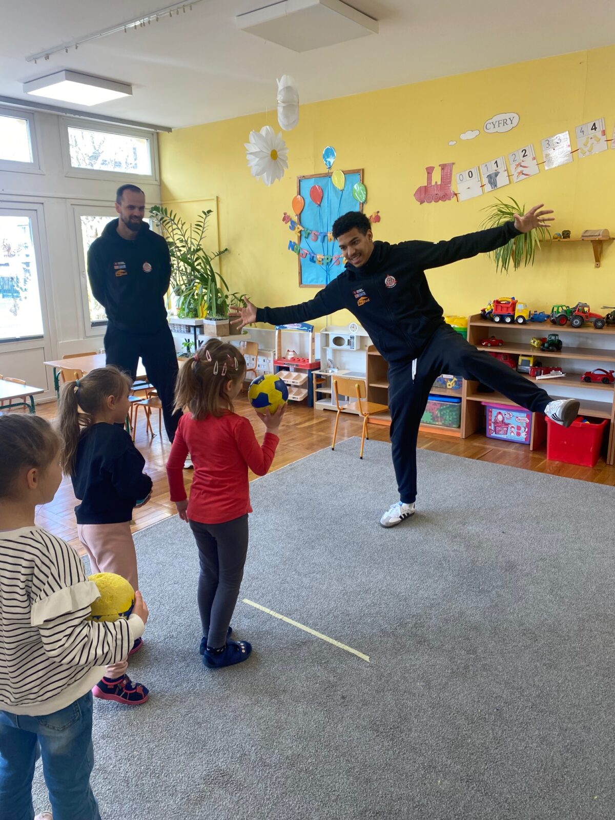8 kwietnia naszą grupę odwiedzili wyjątkowi goście – piłkarze ręczni, którzy poprowadzili dla dzieci pełne energii i radości zajęcia sportowe. Pod czujnym okiem trenerów Krzysztofa Łyżwy oraz Filipa Rybarczyka, przedszkolaki miały okazję poczuć się jak prawdziwi sportowcy.