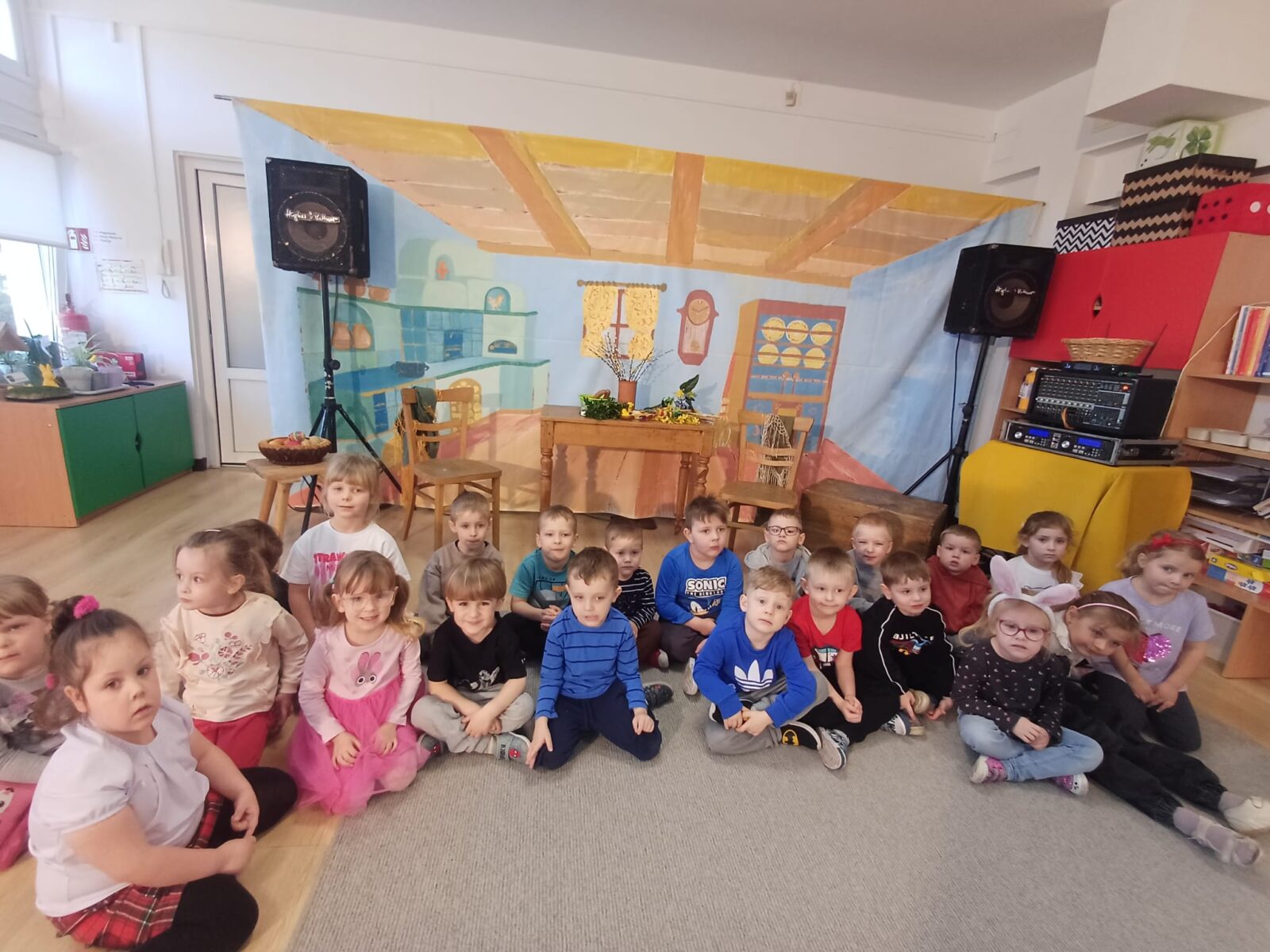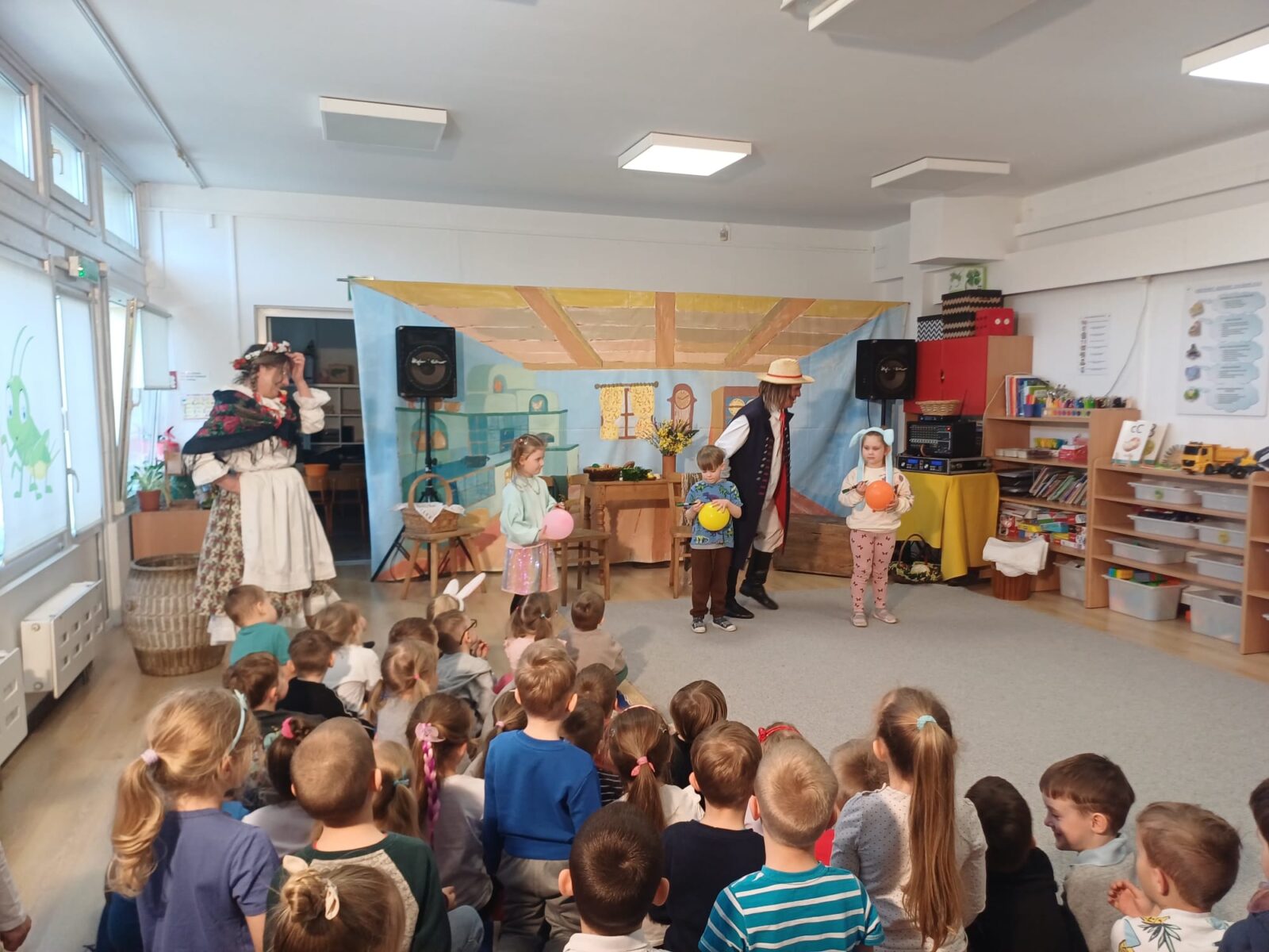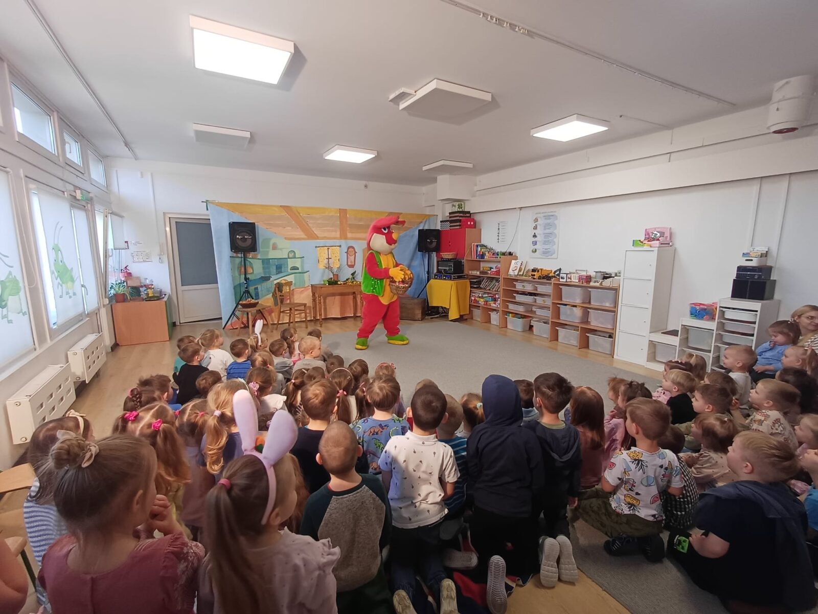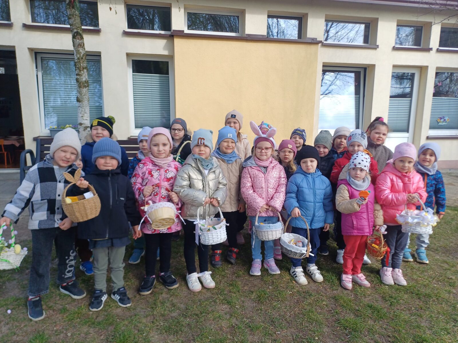 1 kwietnia 2026 roku nasze przedszkole odwiedził Zajączek. Od rana witał dzieci na wejściu do przedszkola i częstował je czekoladowymi jajkami. Następnie wystąpił kabaret Bzik-Show, który w przystępny sposób przedstawił wielkanocne tradycje. Jednak największą atrakcją dnia było poszukiwanie swoich koszyków na placu przedszkolnym. To był intensywny dzień pełen radości.