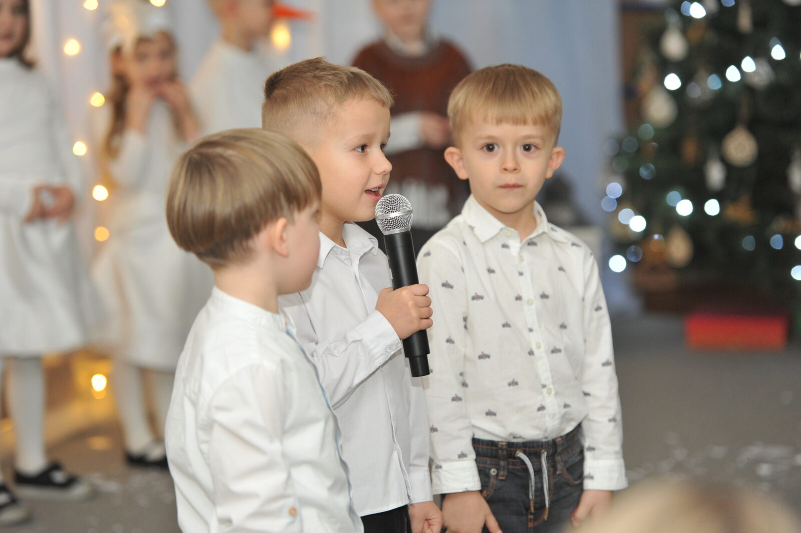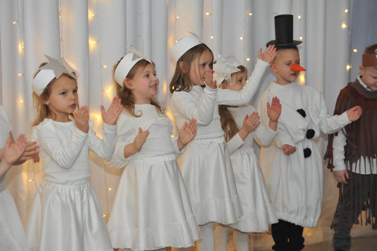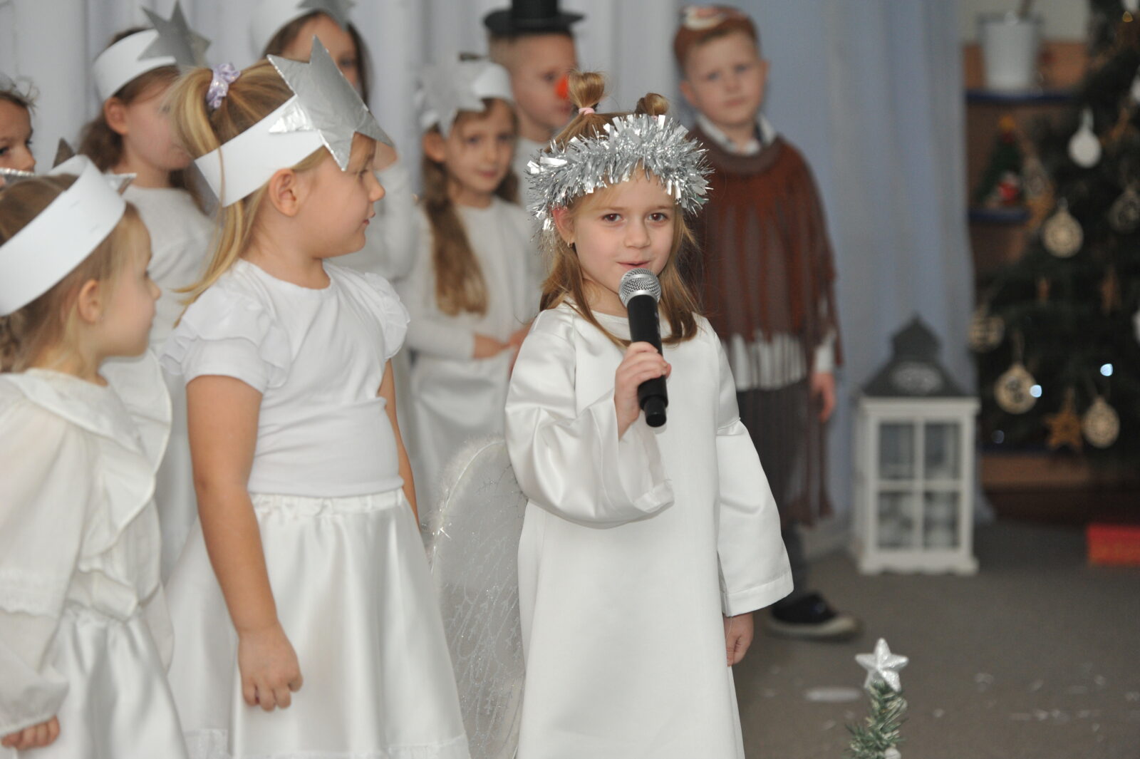 Pod kierunkiem pani Ewy i pani Asi, dzieci zaprezentowały swoje umiejętności aktorskie, zaśpiewały współczesne pastorałki i inne piosenki o tematyce świątecznej.