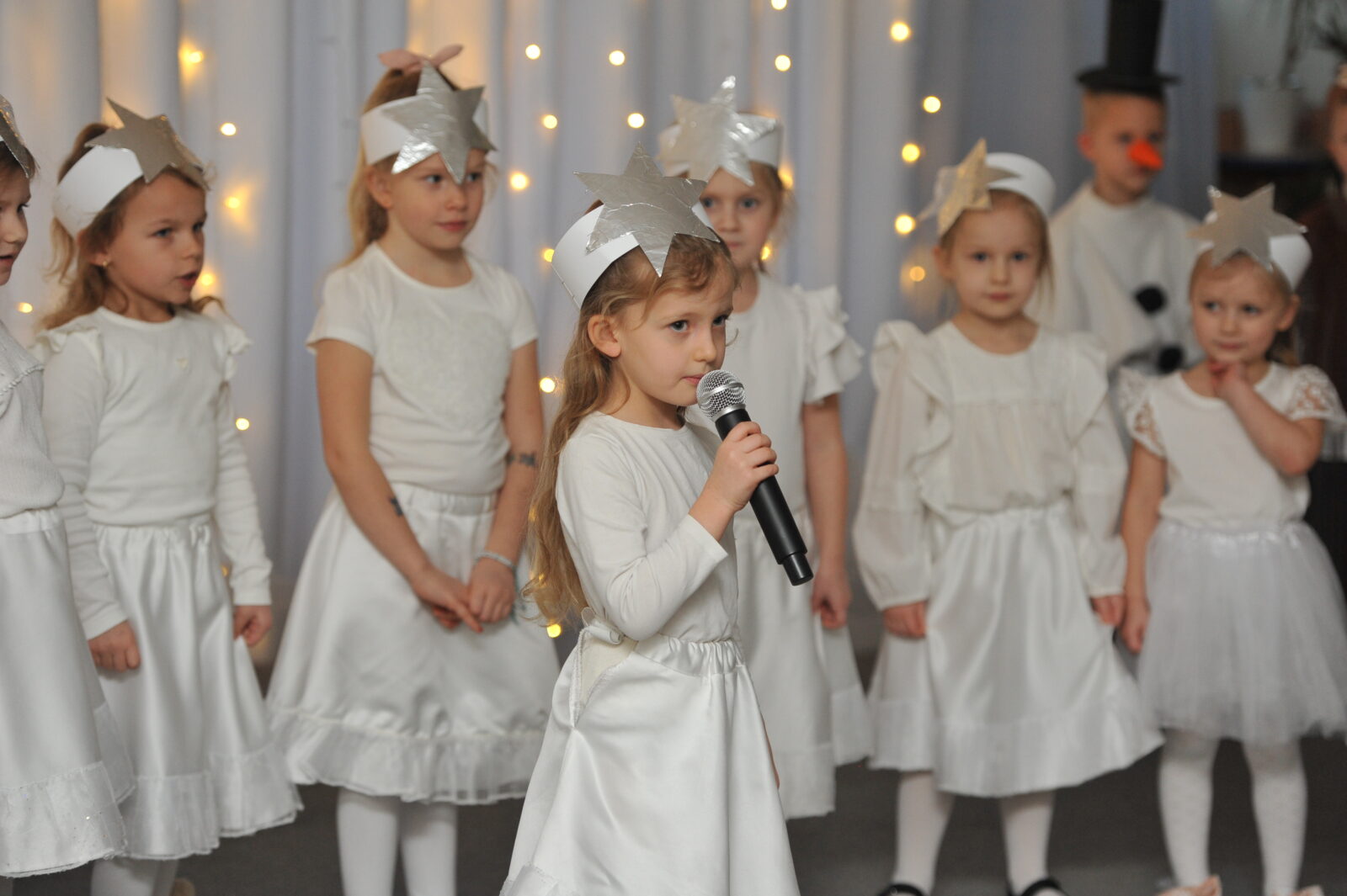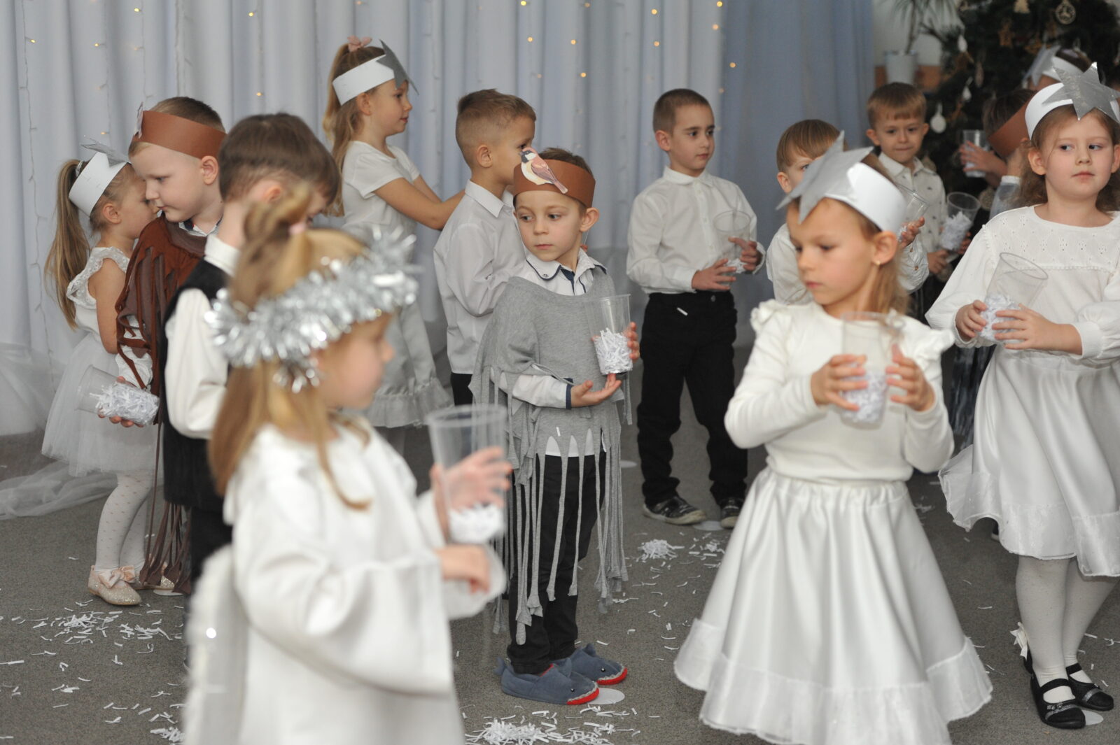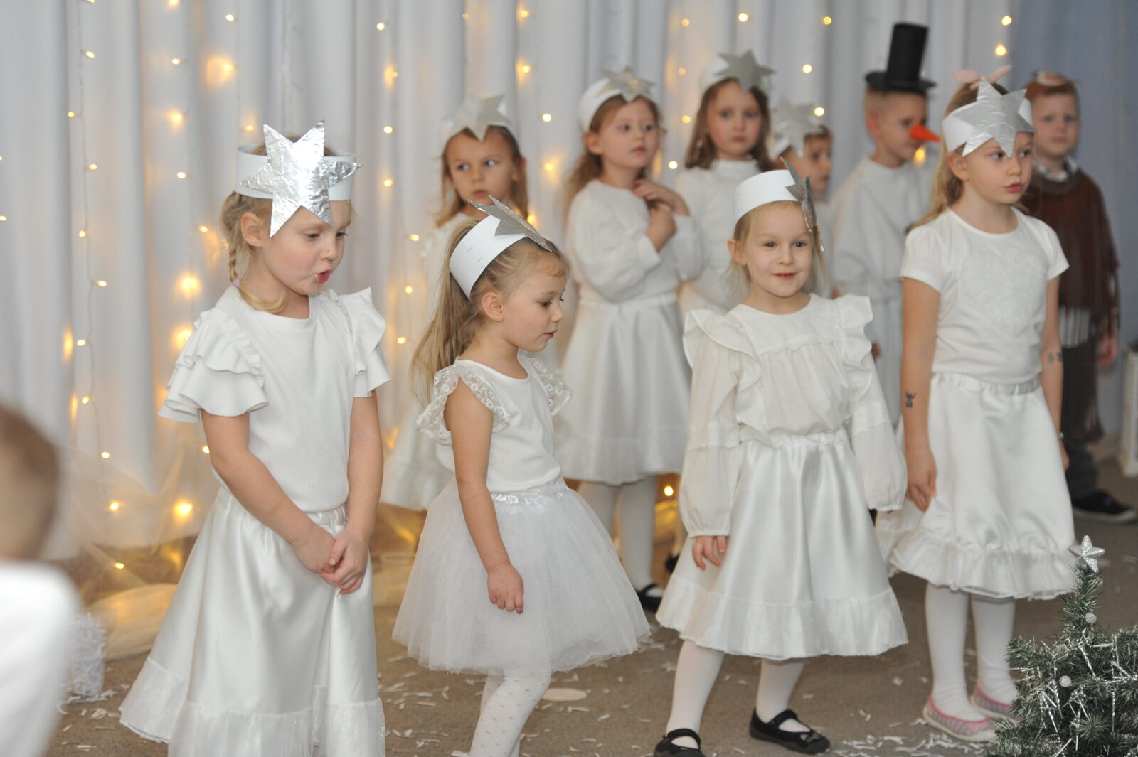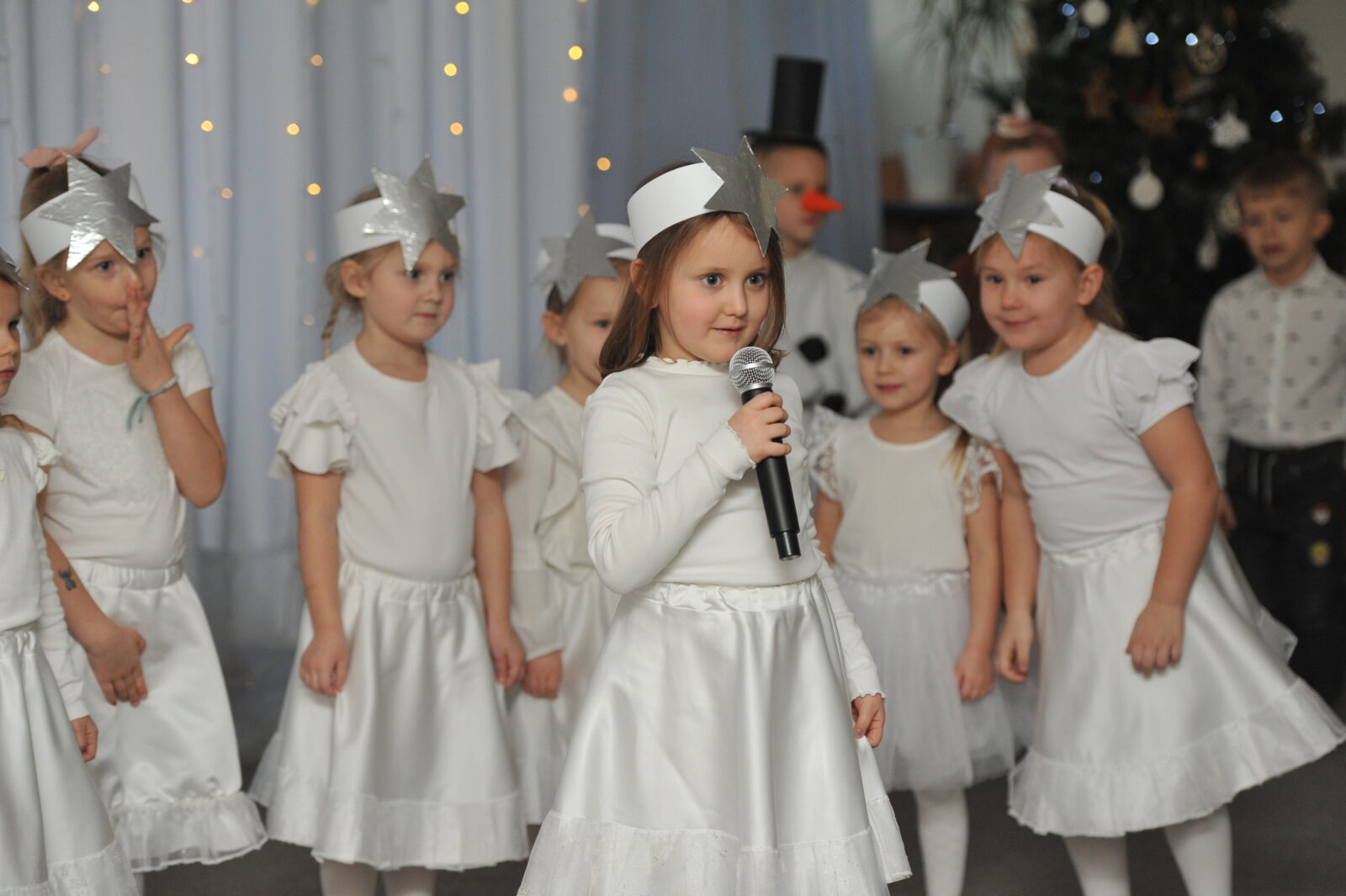 Pod kierunkiem pani Ewy i pani Asi, dzieci zaprezentowały swoje umiejętności aktorskie, zaśpiewały współczesne pastorałki i inne piosenki o tematyce świątecznej.