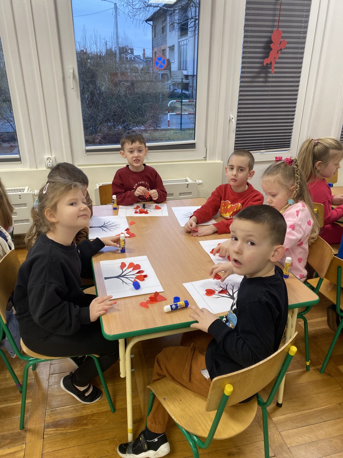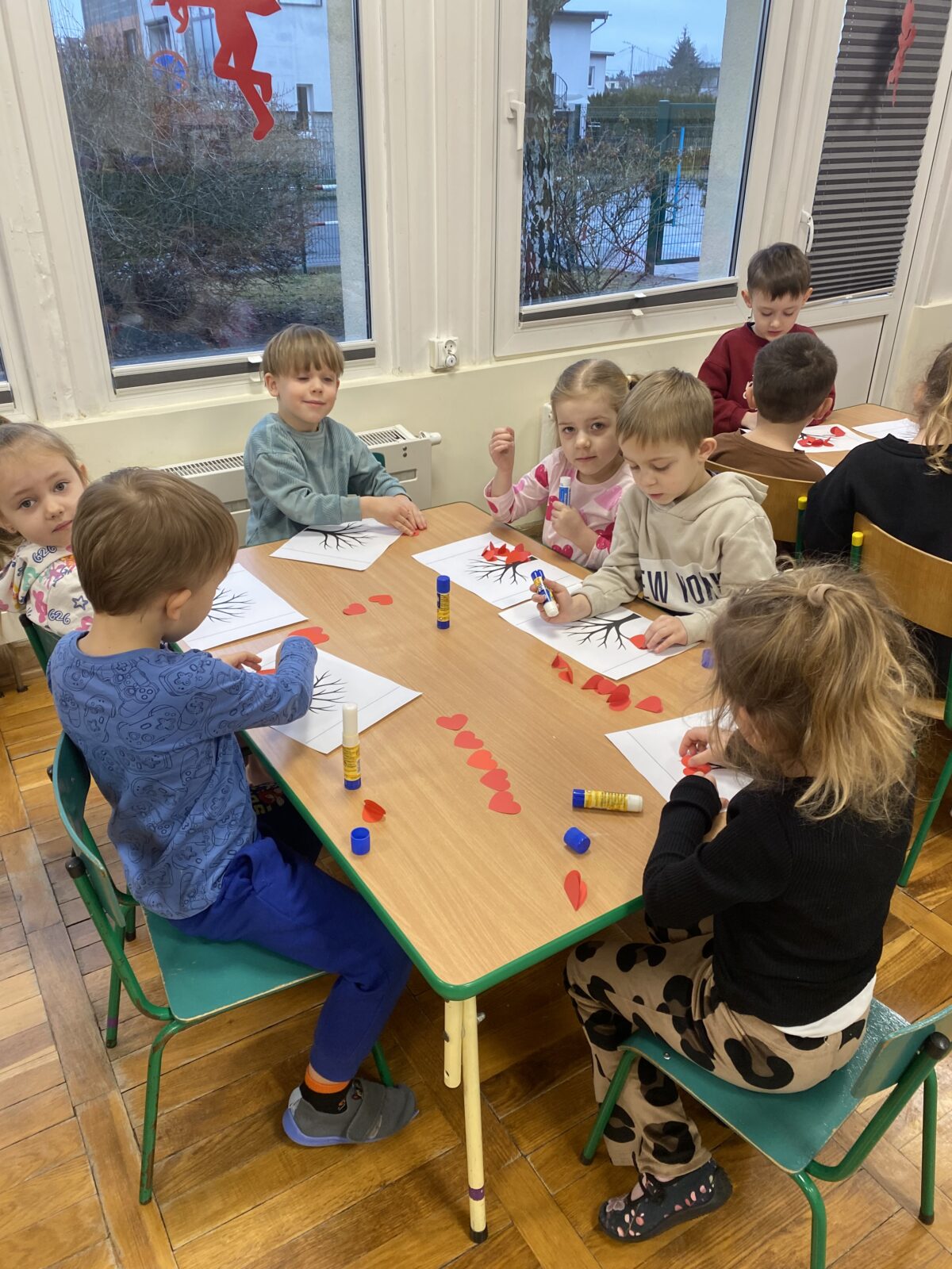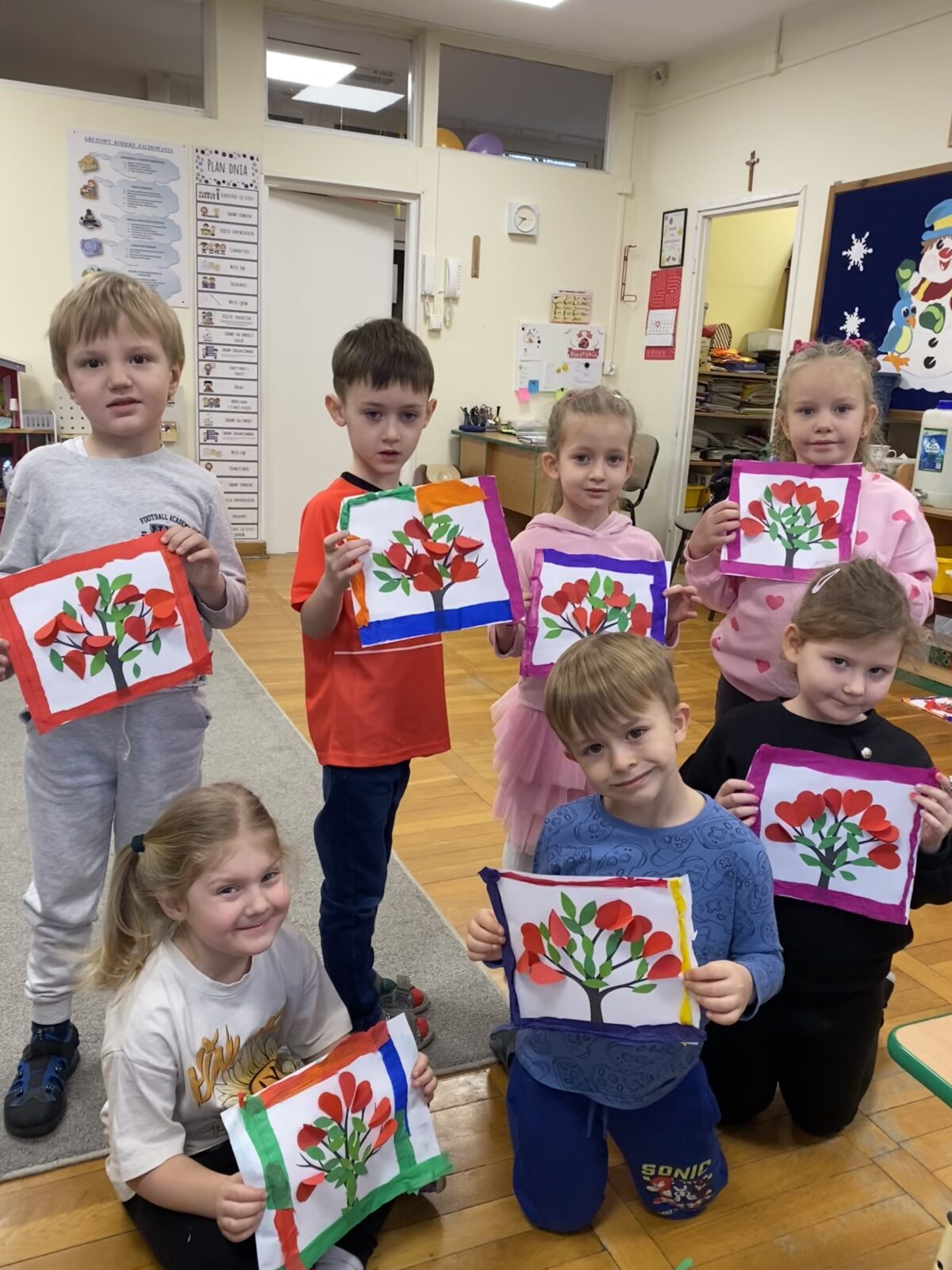 Powstały także piękne prace plastyczne „Drzewa Miłości”, które ozdobiły wejście do naszej sali. To był dzień pełen uśmiechu, życzliwości i wspólnej zabawy.