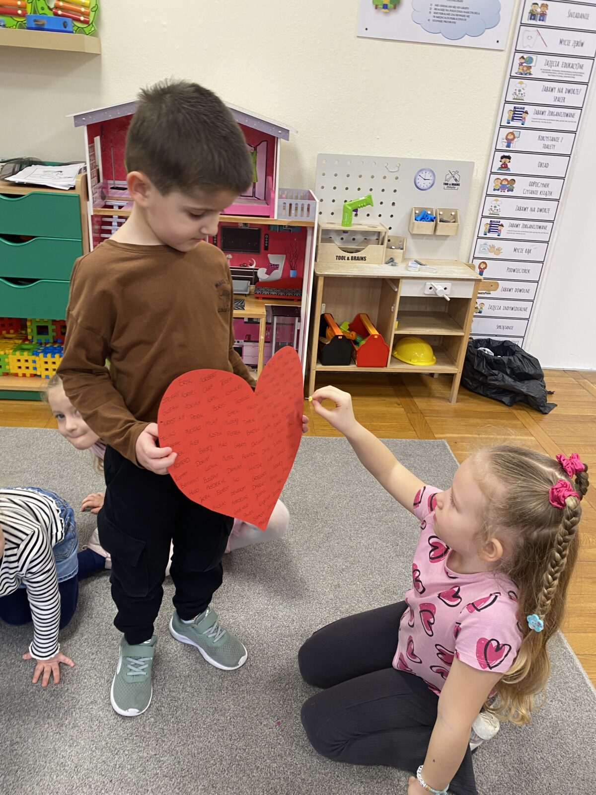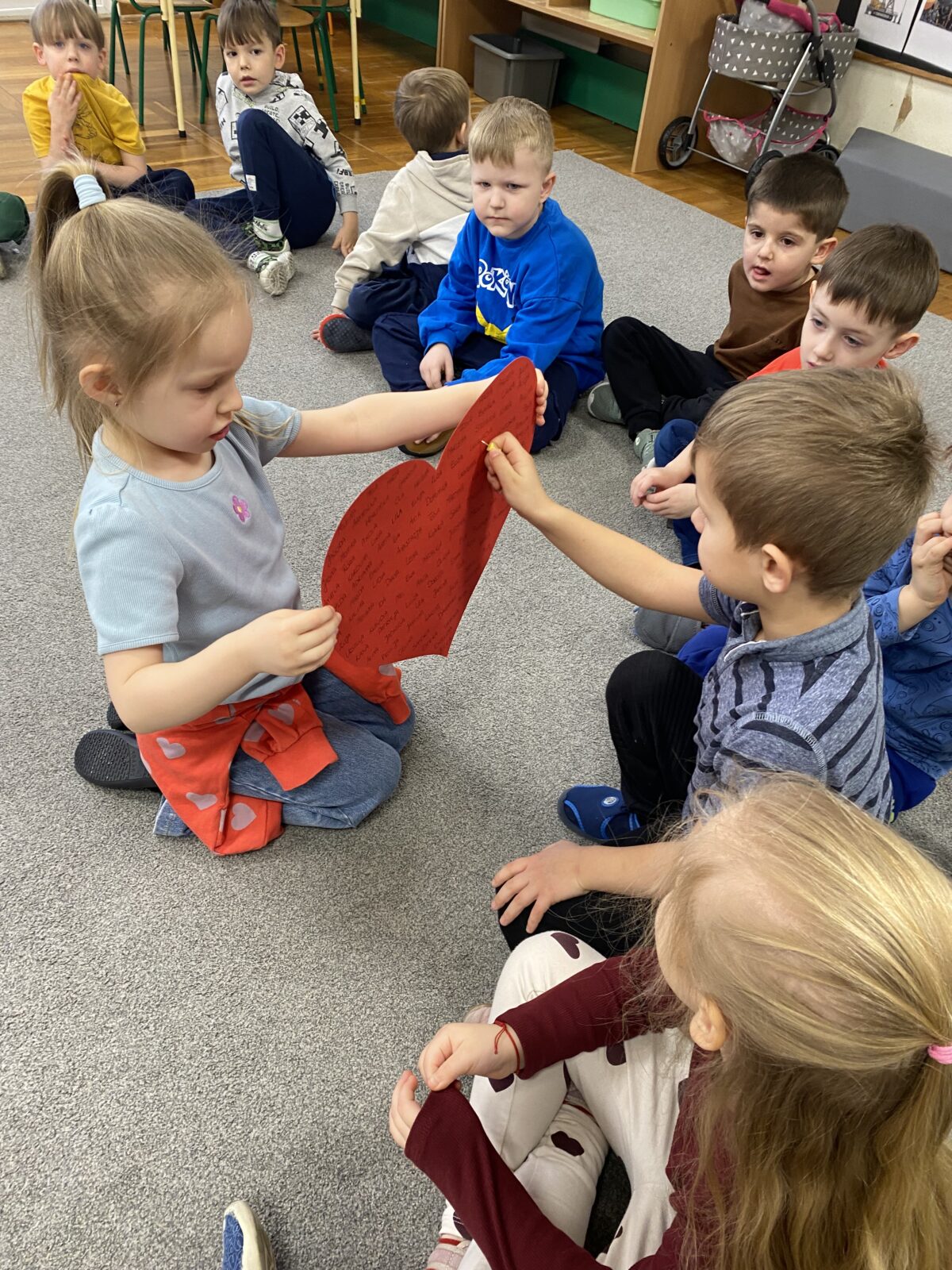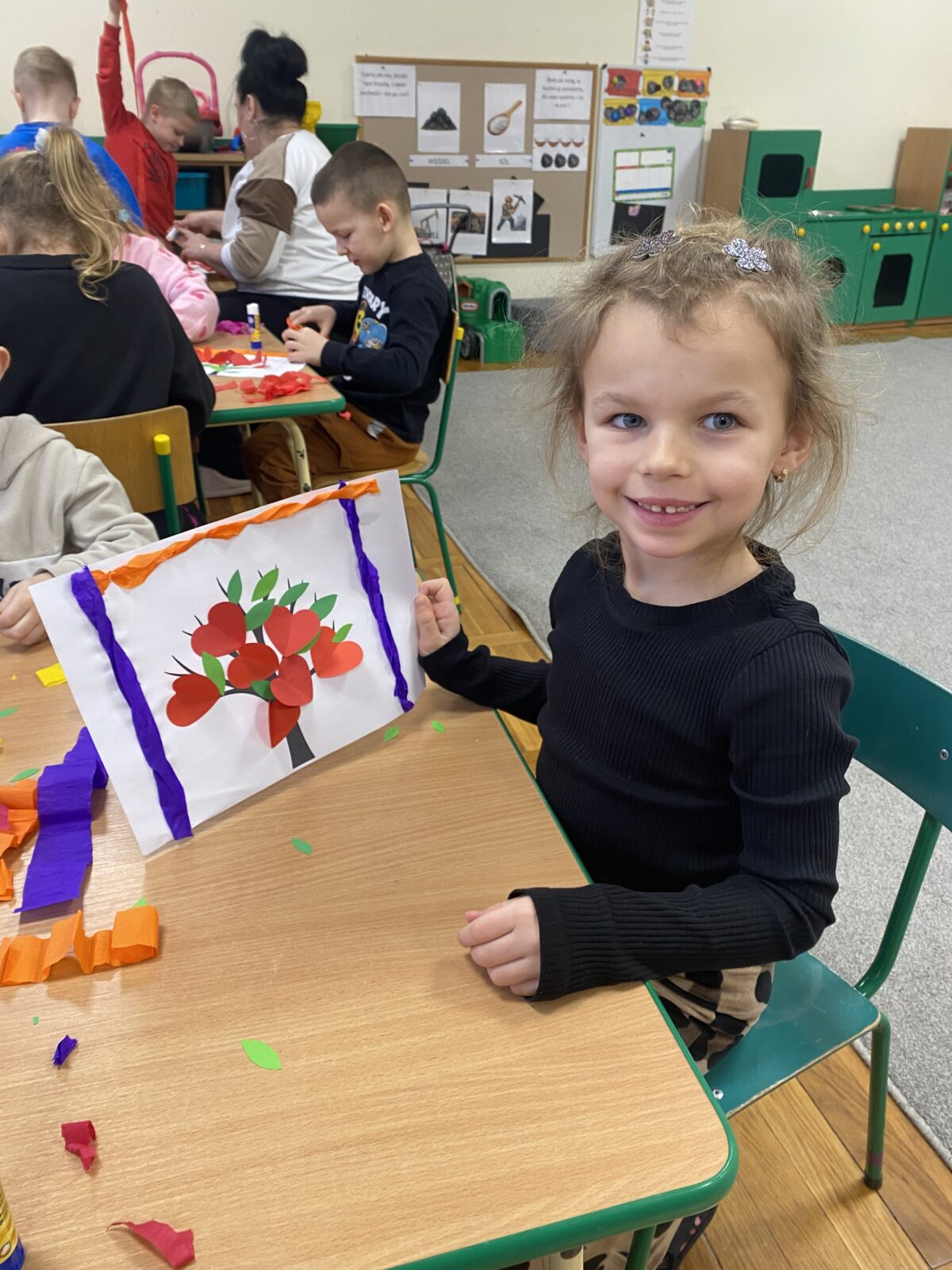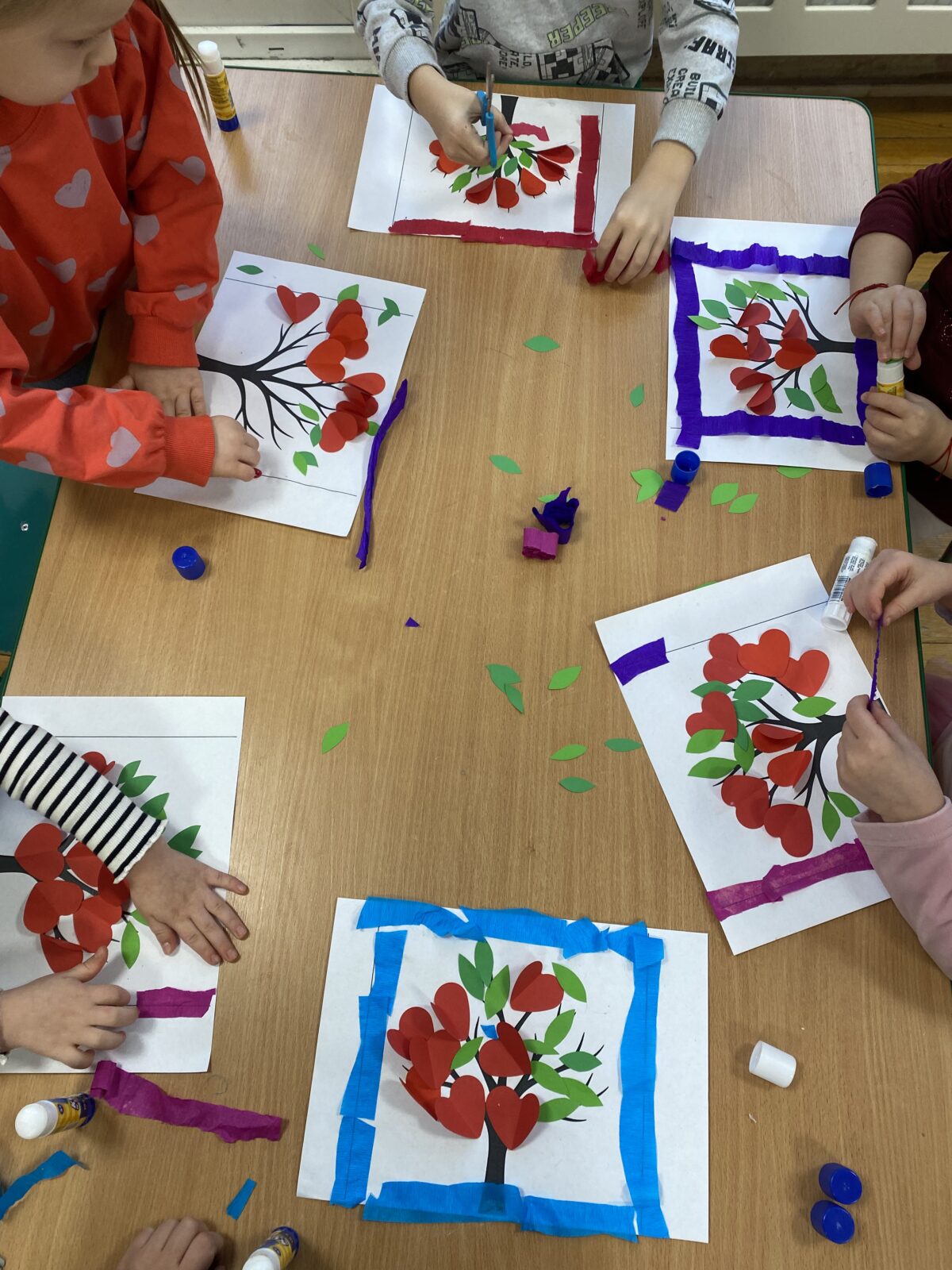 Powstały także piękne prace plastyczne „Drzewa Miłości”, które ozdobiły wejście do naszej sali. To był dzień pełen uśmiechu, życzliwości i wspólnej zabawy.