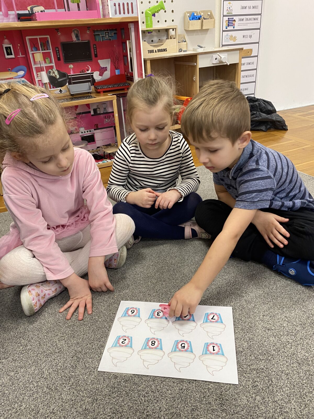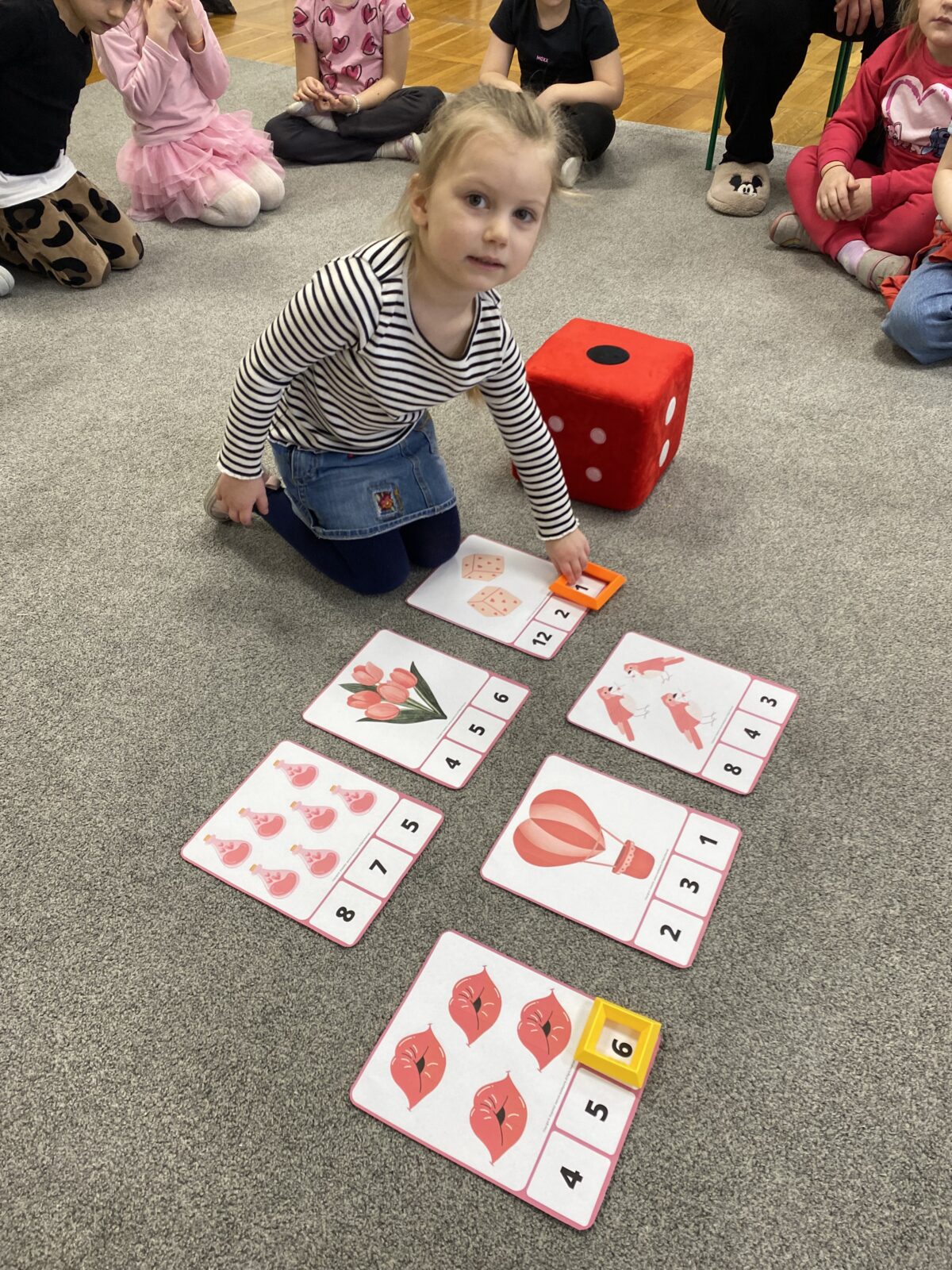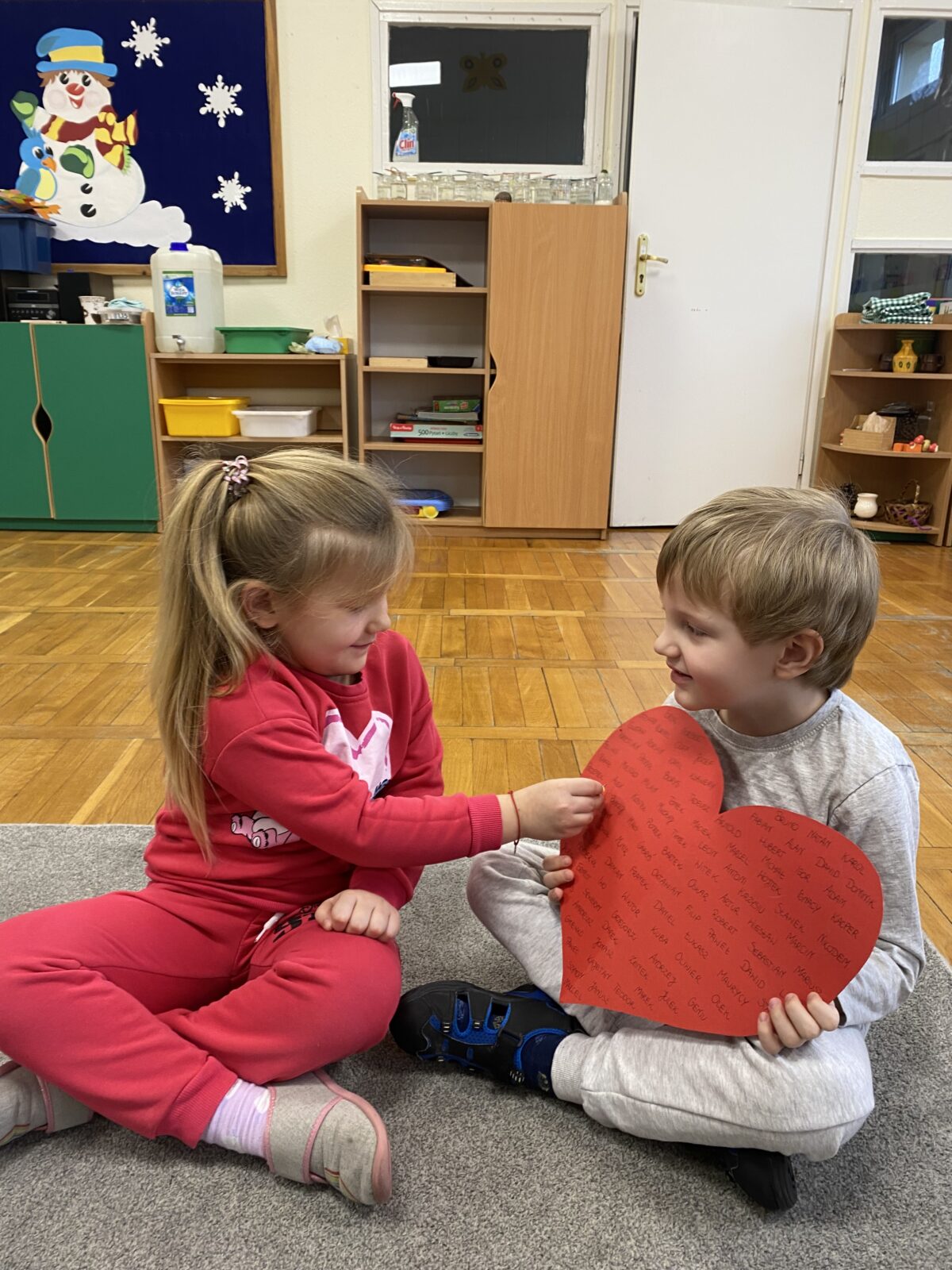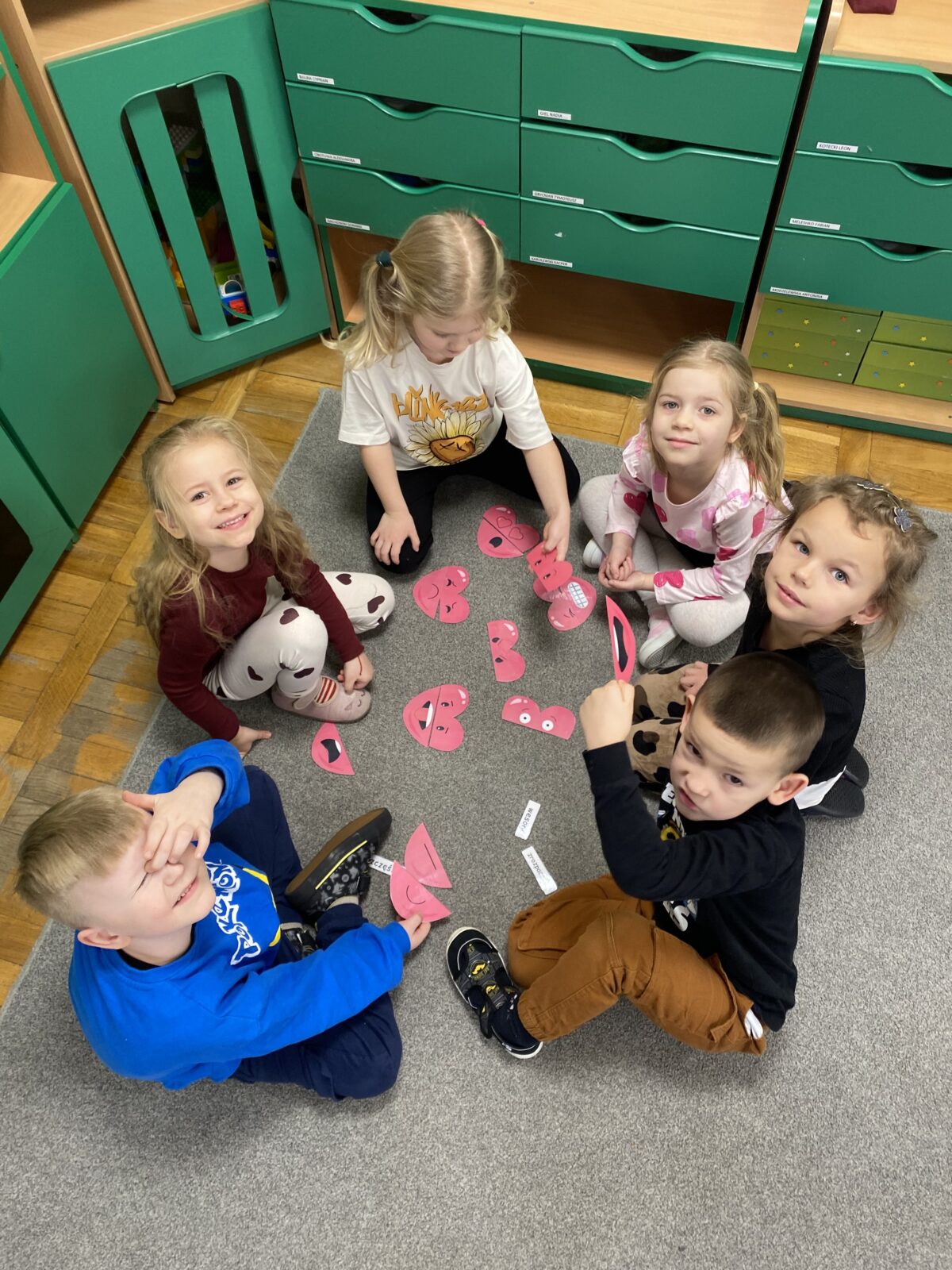 Przedszkolaki wzięły udział w walentynkowym quizie, bawiły się w dopasowywanie minek oraz odkrywały „serca z emocjami”. Nie zabrakło również zabaw matematycznych w walentynkowym klimacie. Dużo radości sprawiła zabawa, podczas której dzieci wkłuwały szpilkę w serce, aby wylosować swojego wybranka.