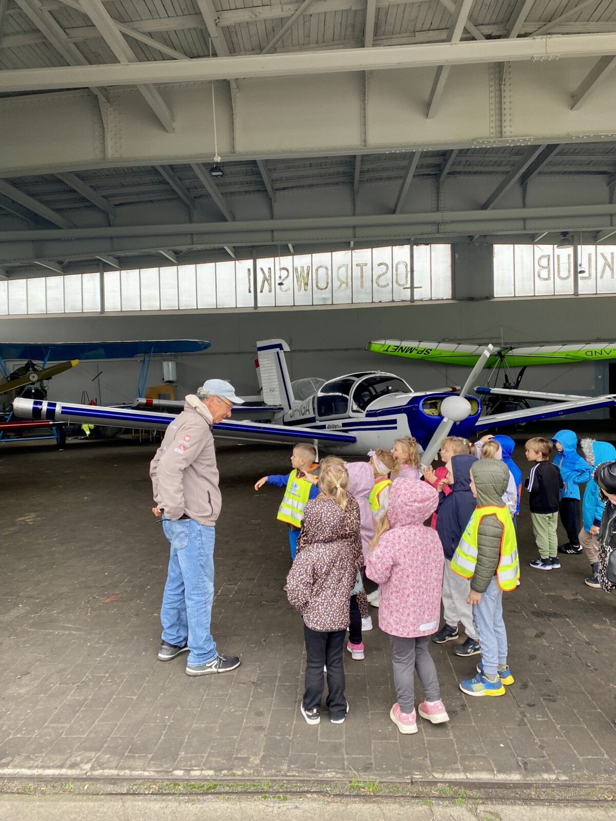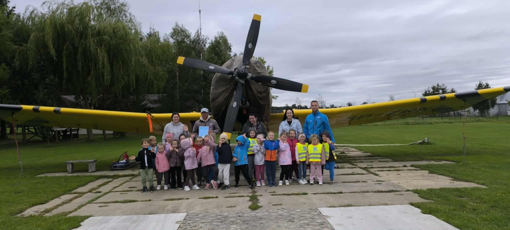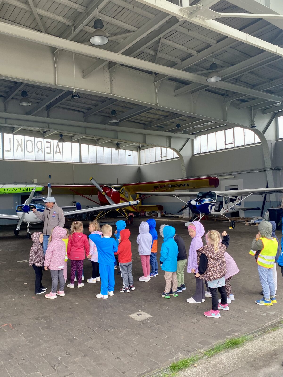 W poniedziałek 22 września grupa Biedronki wybrała się na wycieczkę do aeroklubu w Michałkowie. Dzieci miały okazję zobaczyć z bliska różne rodzaje samolotów oraz szybowców. Pracownik aeroklubu opowiedział im, jak wygląda praca pilota, do czego służą poszczególne części samolotu oraz jakie zasady bezpieczeństwa obowiązują na lotnisku.