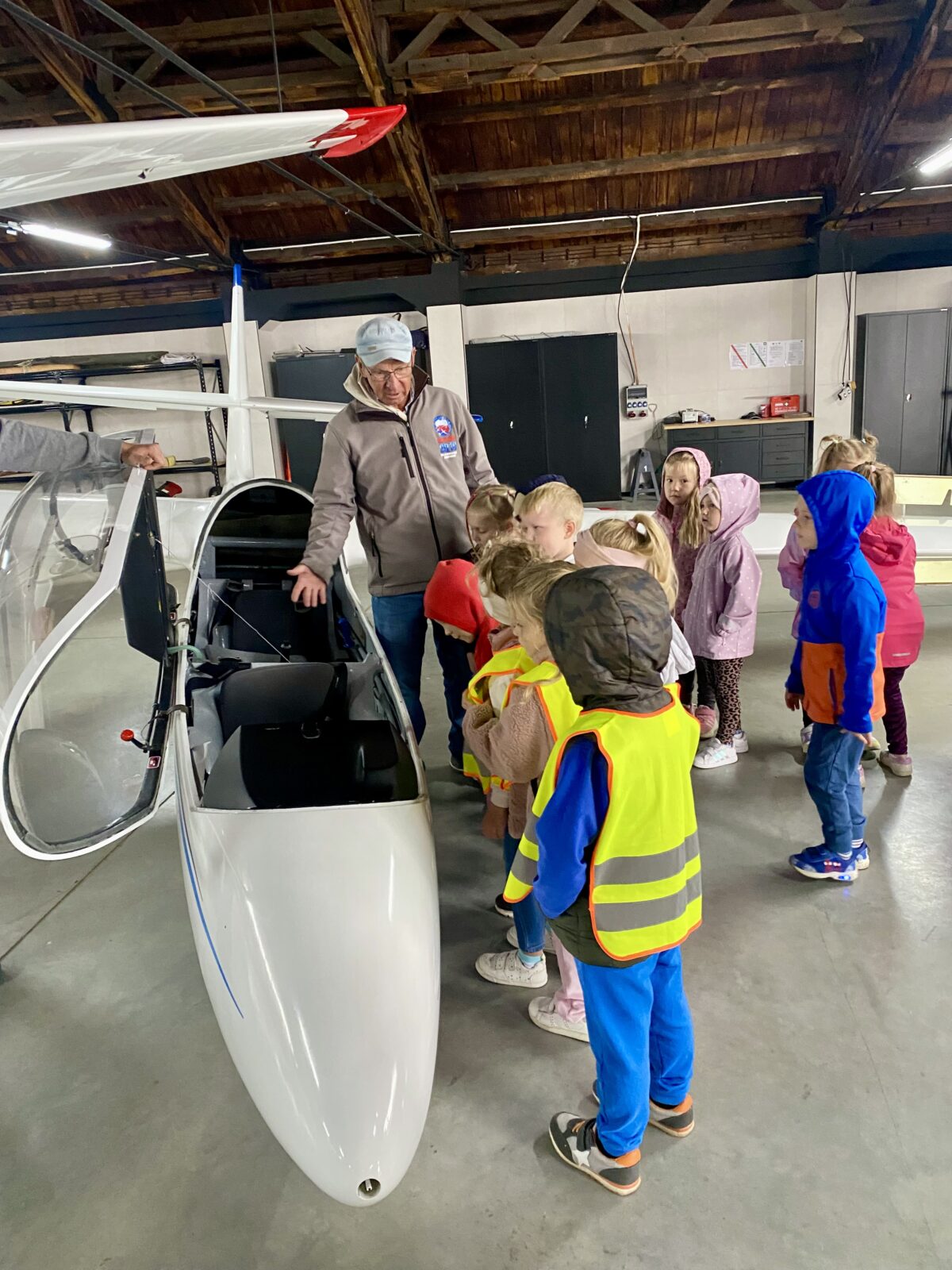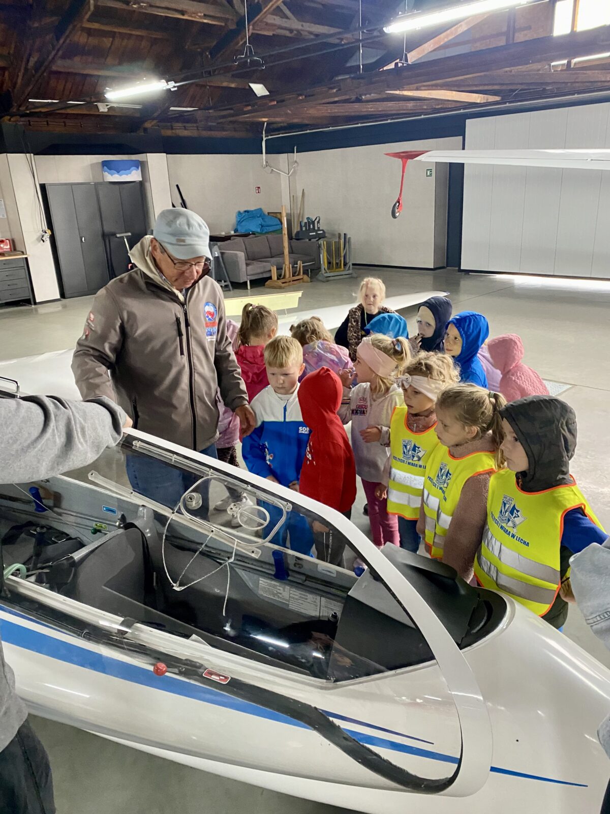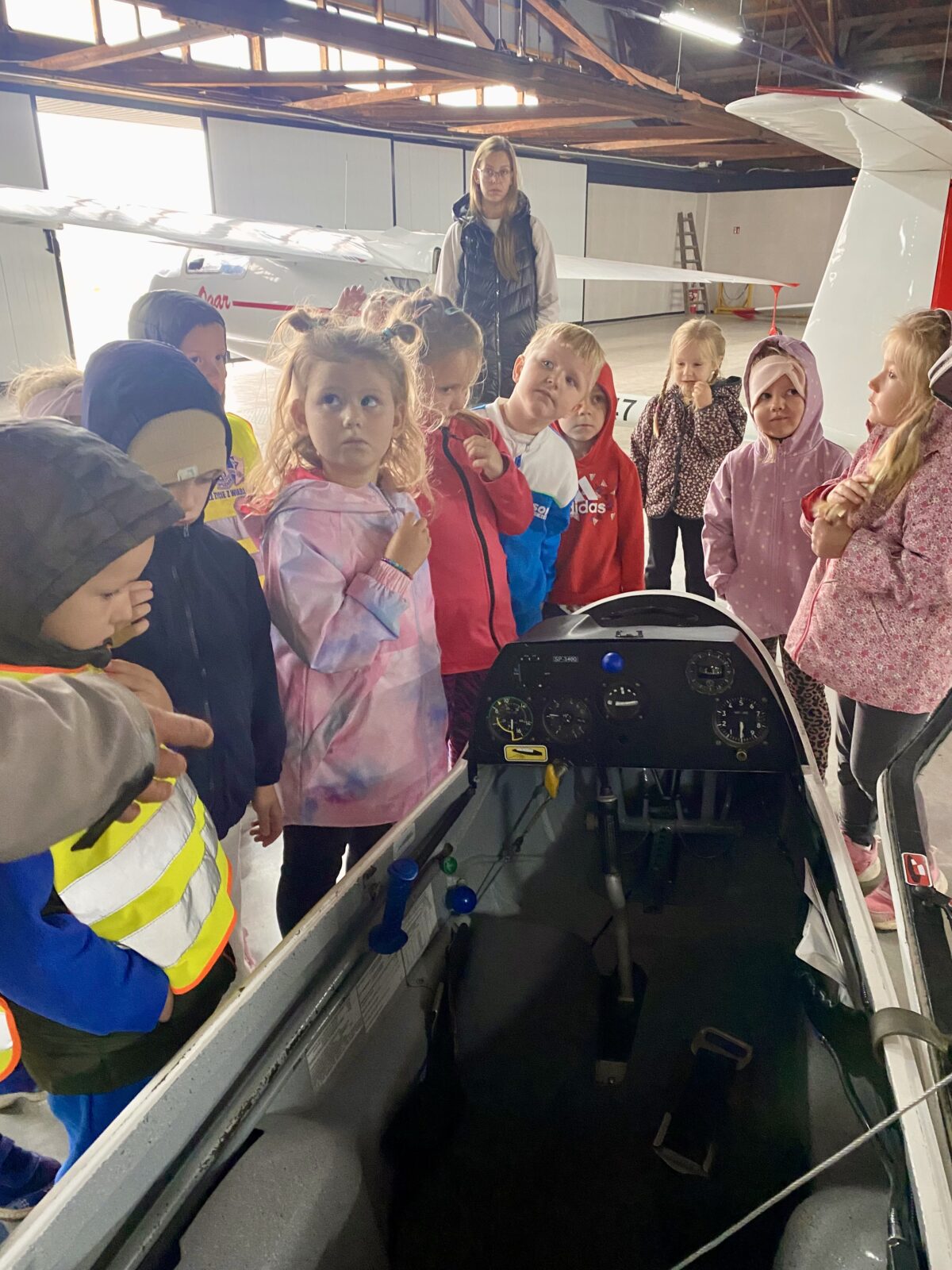 W poniedziałek 22 września grupa Biedronki wybrała się na wycieczkę do aeroklubu w Michałkowie. Dzieci miały okazję zobaczyć z bliska różne rodzaje samolotów oraz szybowców. Pracownik aeroklubu opowiedział im, jak wygląda praca pilota, do czego służą poszczególne części samolotu oraz jakie zasady bezpieczeństwa obowiązują na lotnisku.