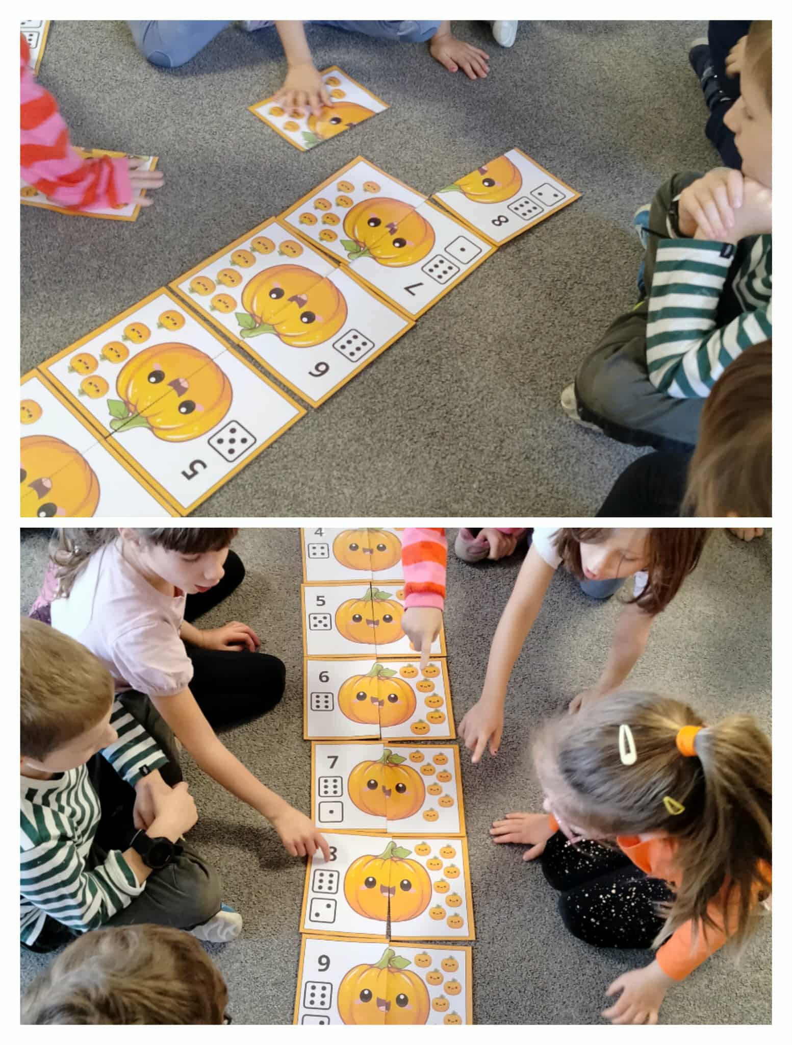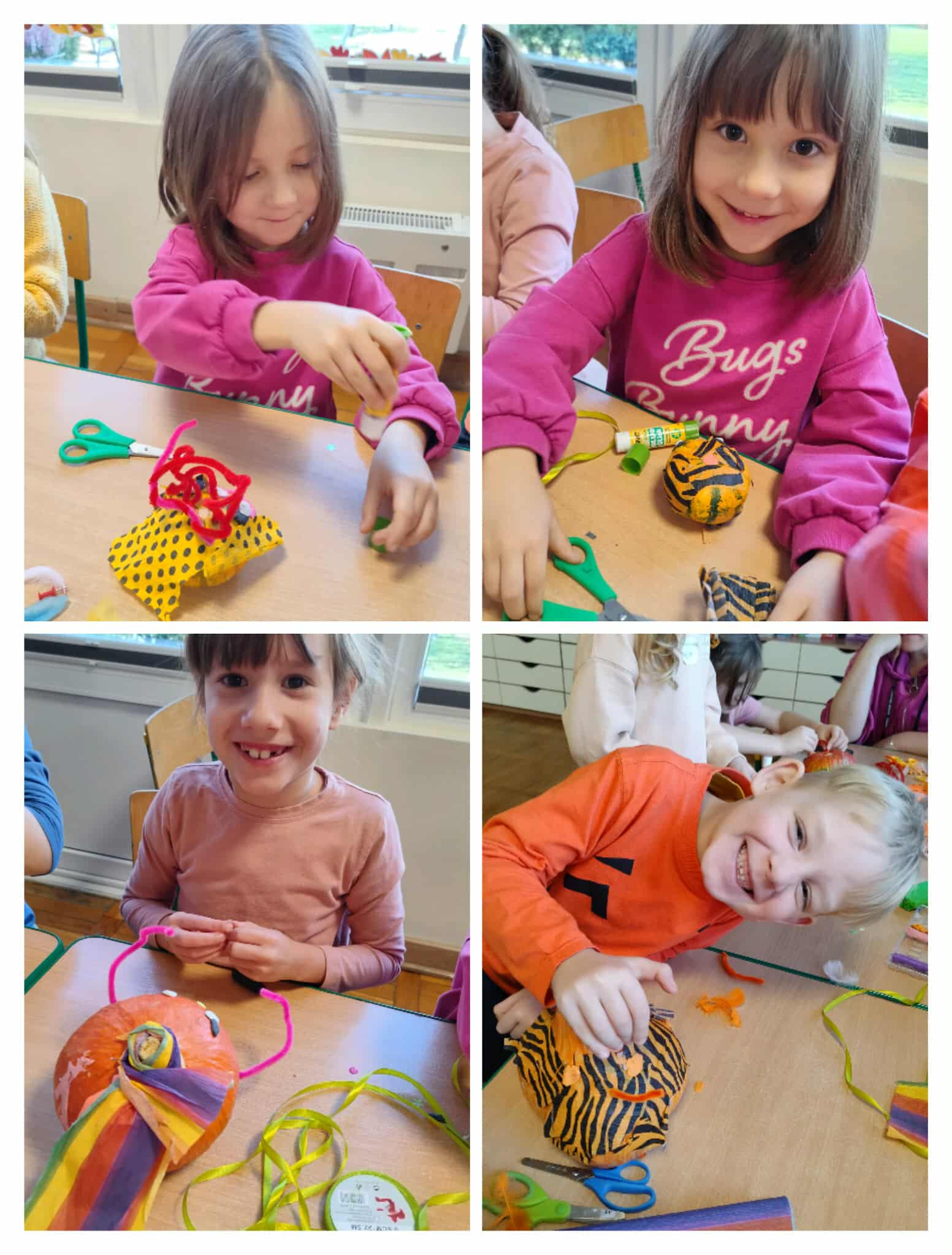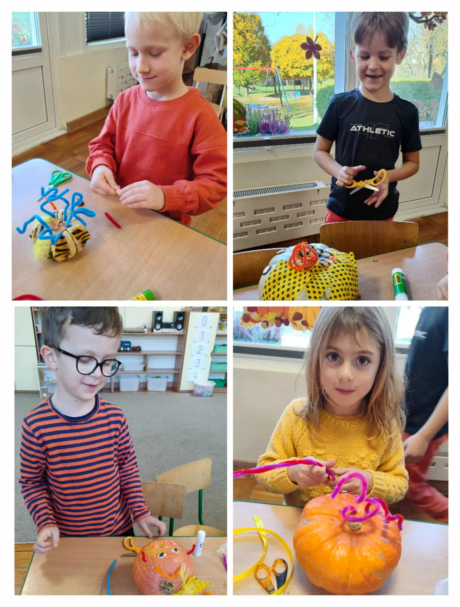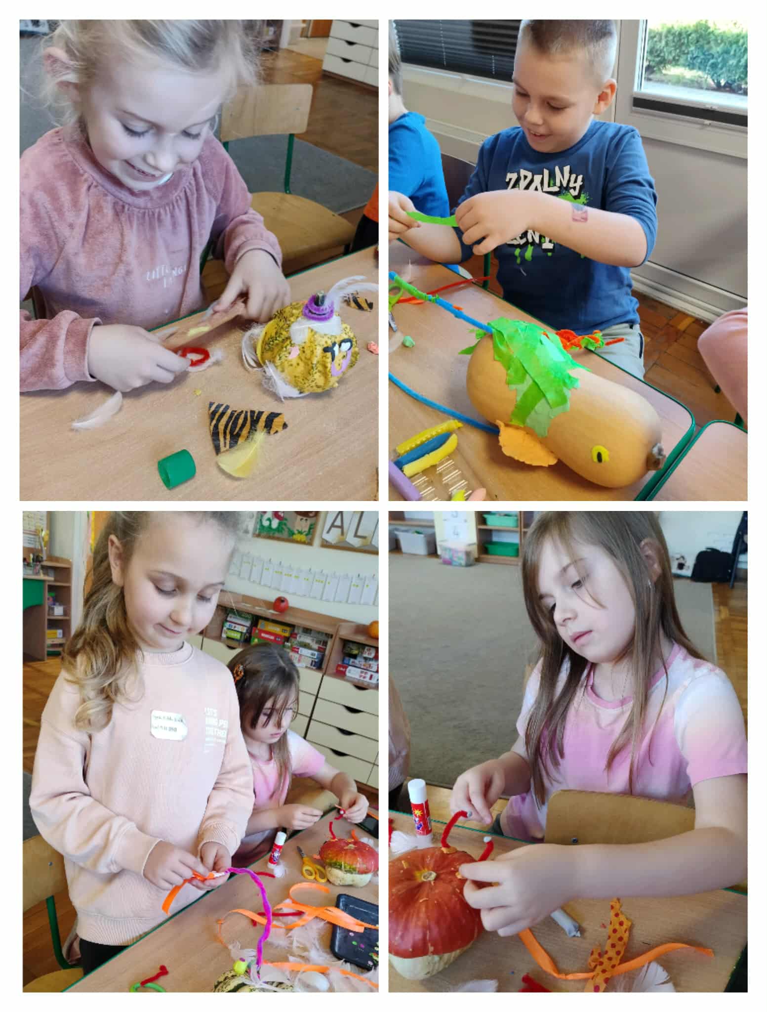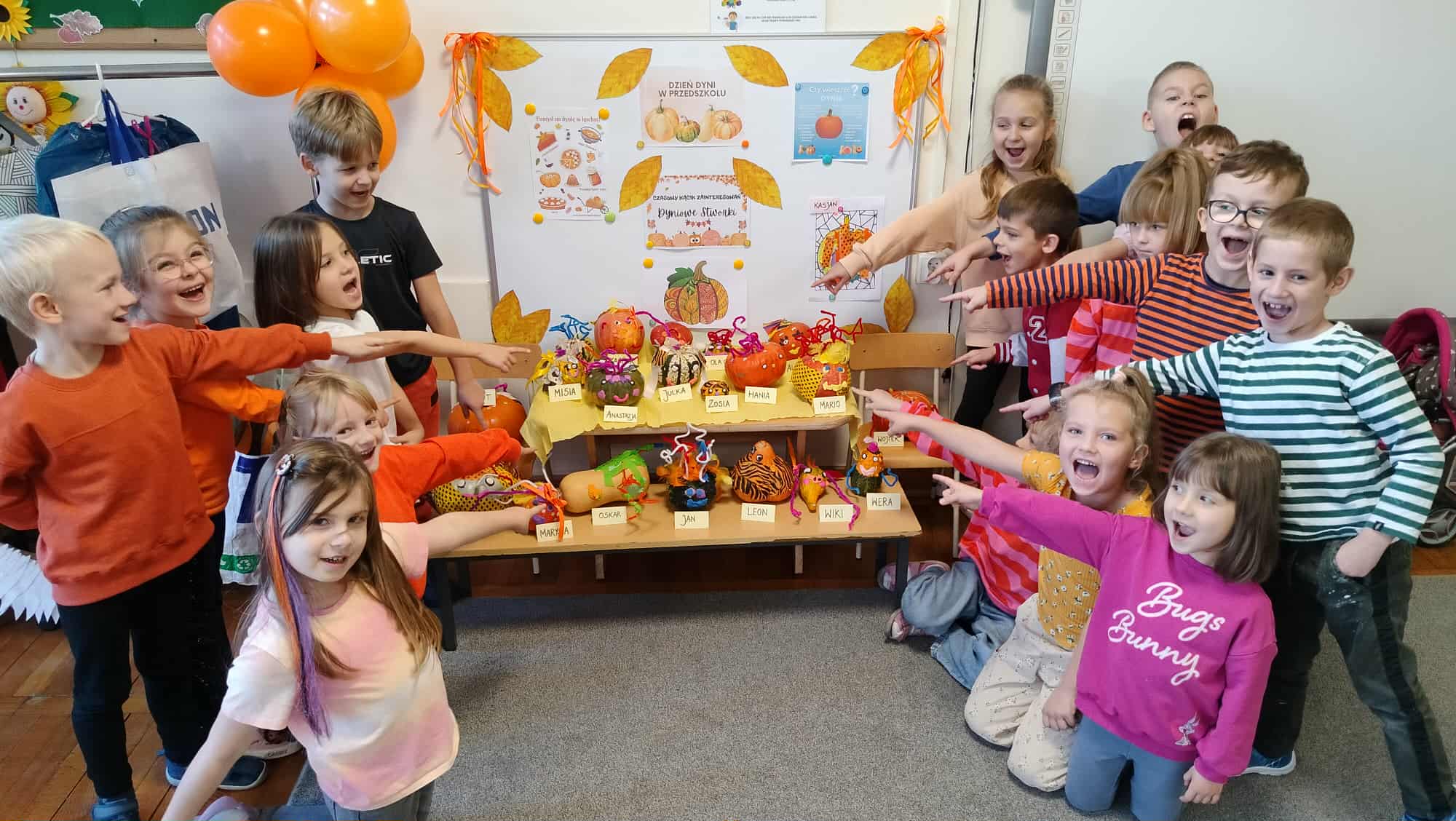 Z okazji dnia dyni w naszej grupie w miesiącu październiku stworzyliśmy czasowy kącik zainteresowań i nazwaliśmy go „Dyniowe Stworki”. Dzieci podczas zajęć tworzyły samodzielnie stworki z wykorzystaniem dyni i różnych materiałów. Dzięki kreatywności i pomysłowości dzieci powstały kolorowe, wesołe stworki, które znalazły w naszej sali swoje wyjątkowe miejsce. Dzieci podczas zabaw swobodnych mogli zabierać swoje dzieła, które wspaniale pasowały do zabaw teatralnych bądź tematycznych. W tym dniu z okazji dnia dyni dzieci rozwijały również swoje umiejętności matematyczne.