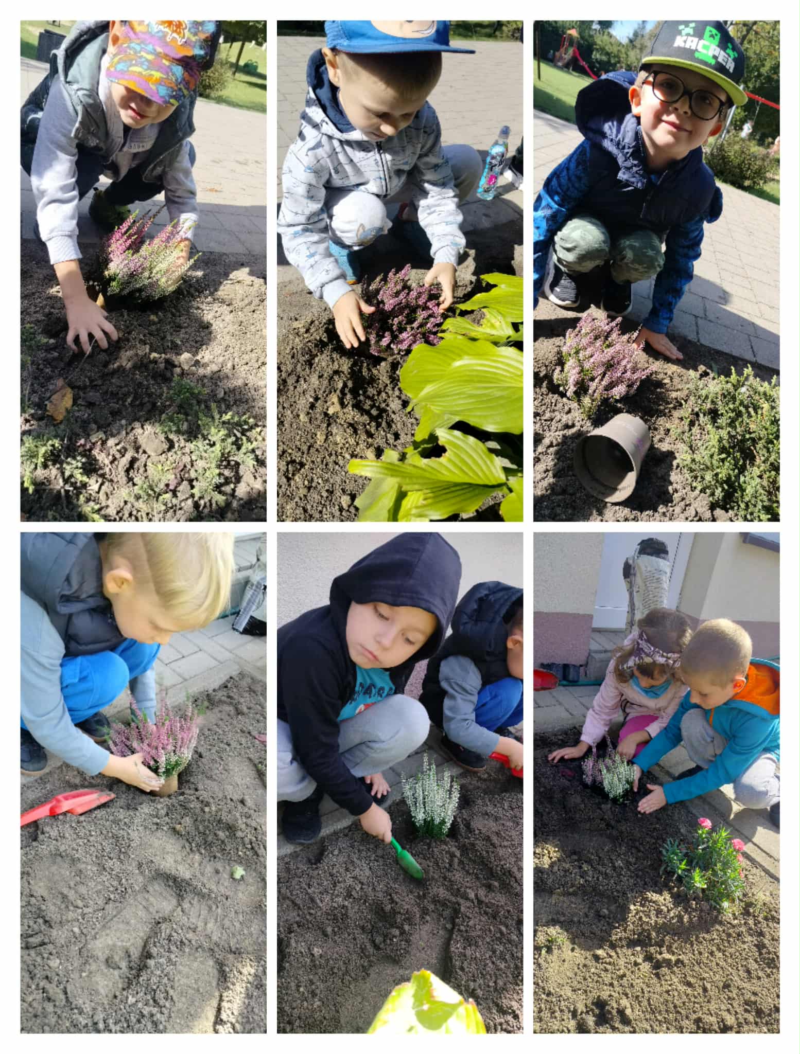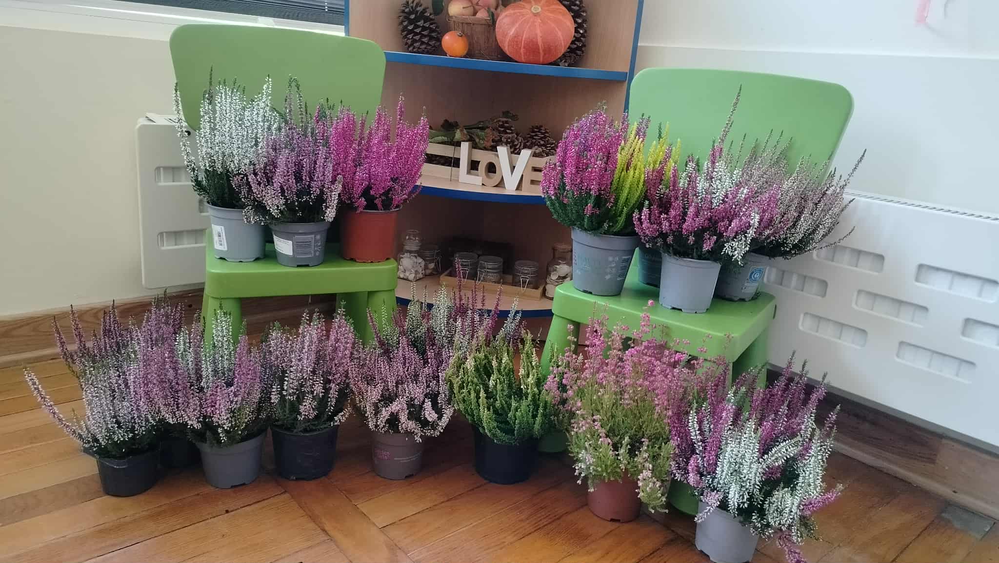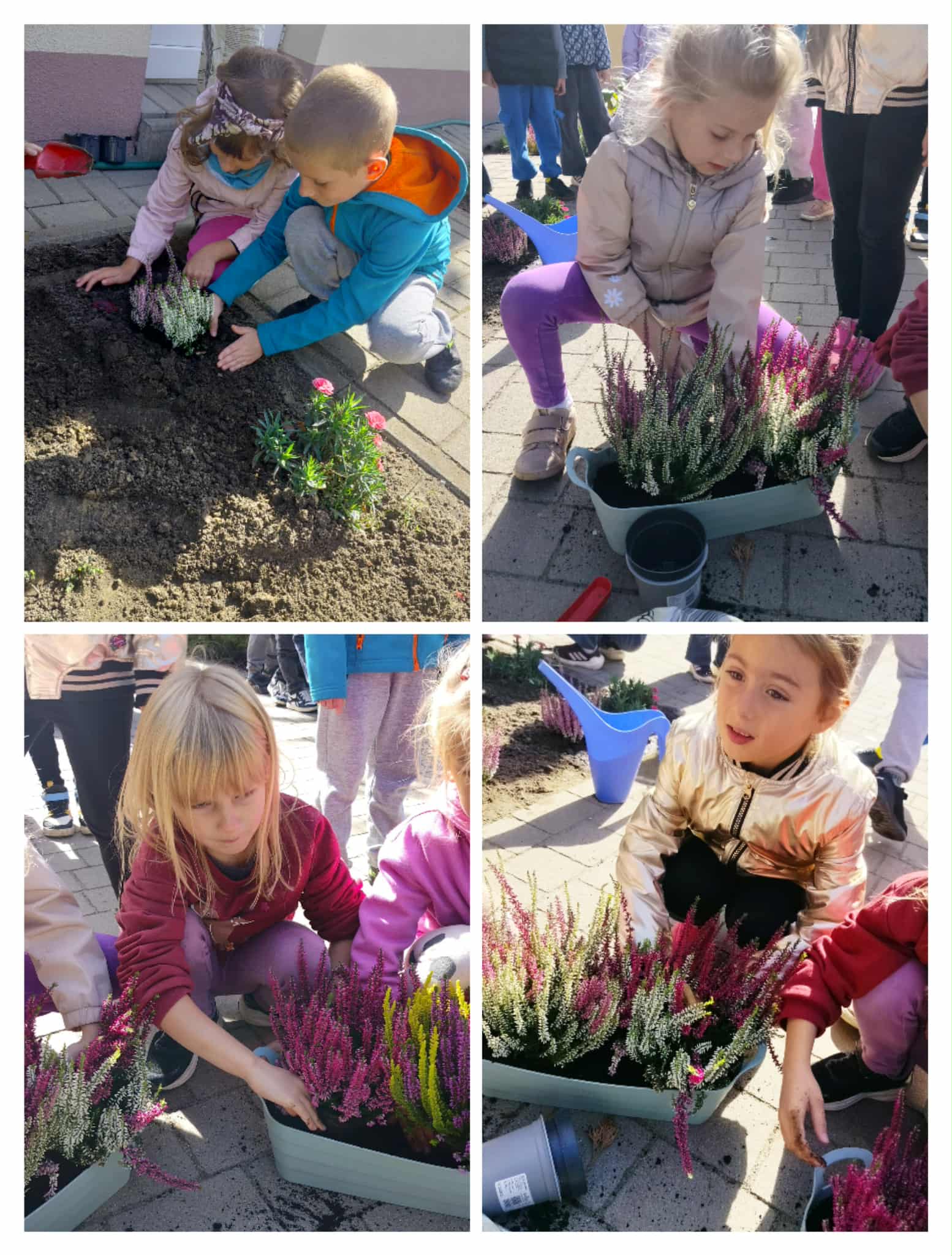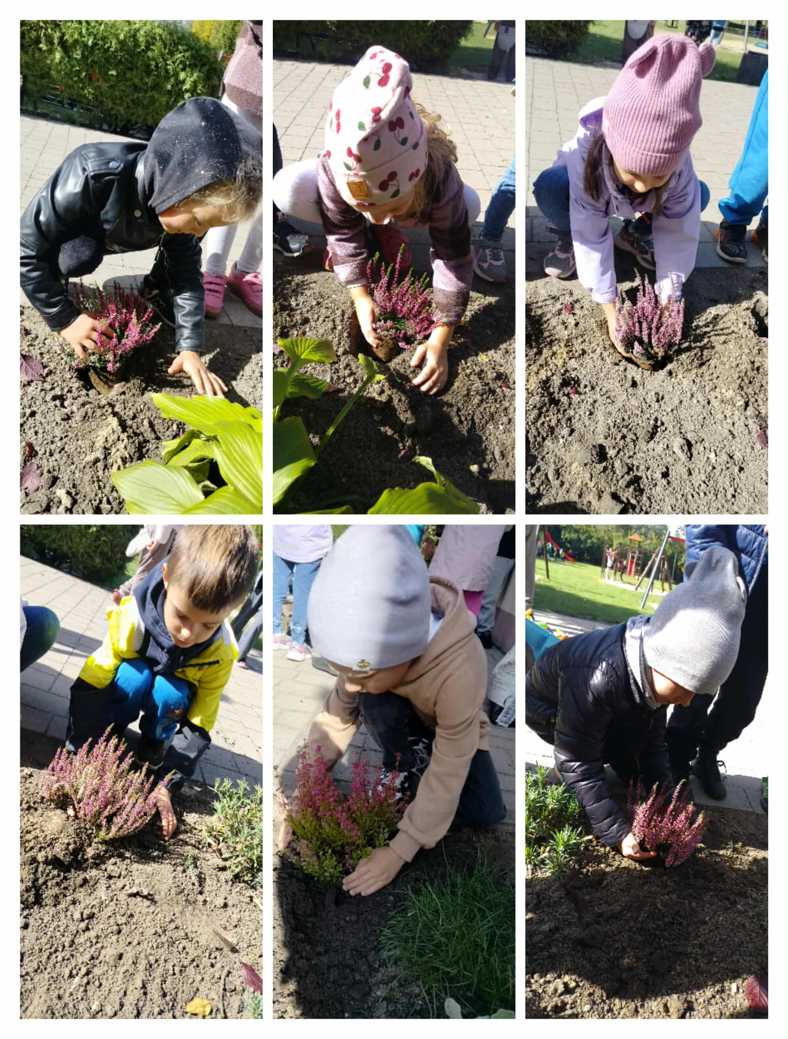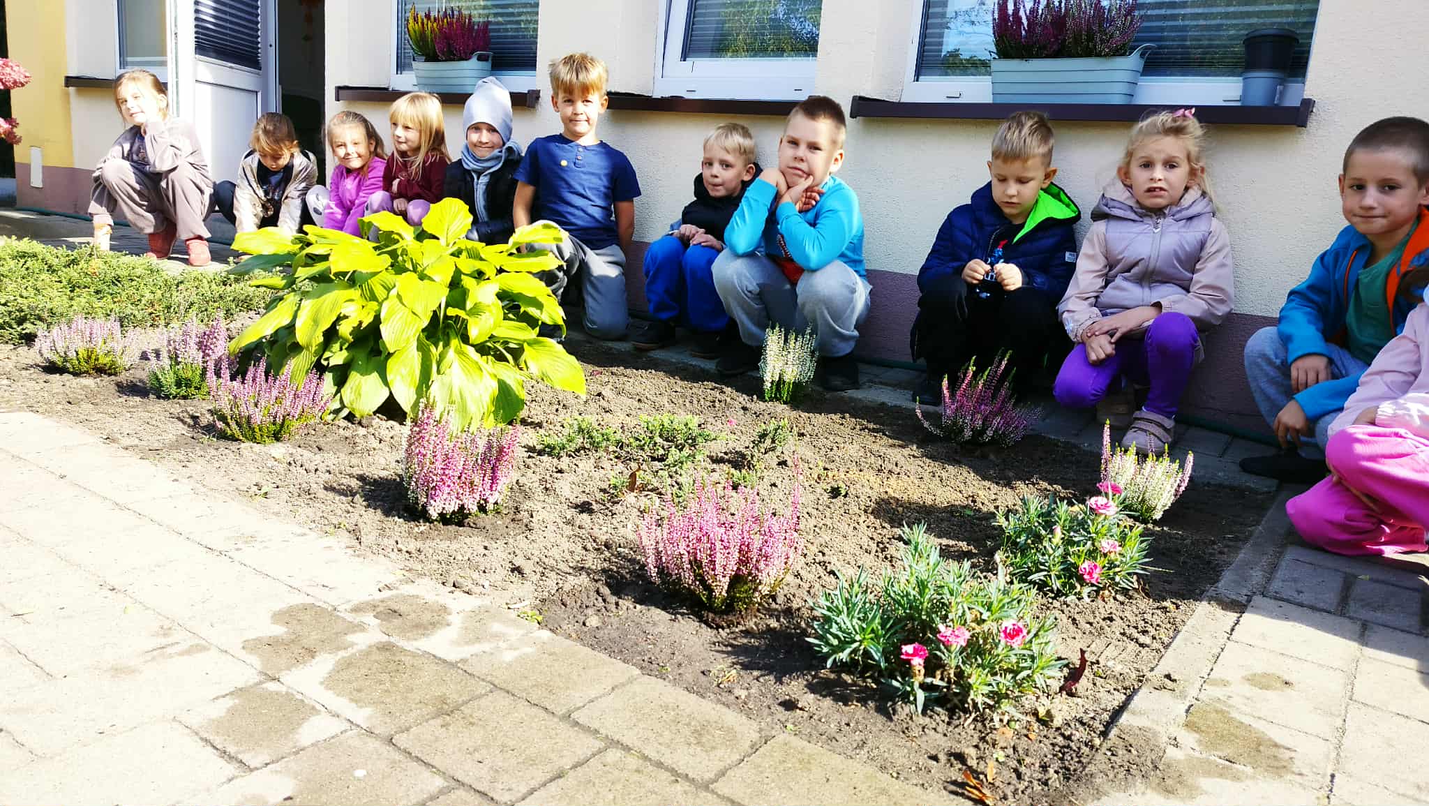 Dnia 29 września grupa Motylki stworzyła czasowy kącik zainteresowań. Zagospodarowaliśmy miejsce w naszej sali gdzie gromadzimy dary jesieni. Dzieci mają możliwość obserwacji, i zabaw w kąciku. Początkowo rozmawialiśmy o wszystkich darach jakie przynosi nam jesień. Stworzyliśmy również ogródek który nazwaliśmy „Jesienne wrzosowisko”. Każde dziecko przyniosło swój wrzos i zasadziliśmy przed naszą salą ten ogródek również należy do naszego czasowego kącika zainteresowań. Zadaniem dzieci jest codzienna pielęgnacja roślin oraz obserwacja wzrostu naszych pięknych wrzosów, które zdobią miejsce przed naszą salą.