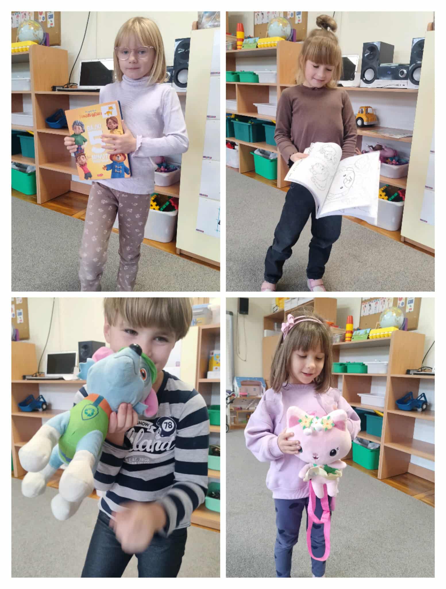 5 listopada przypada dzień postaci z bajek. W związku w naszej grupie podczas zajęć na temat znanych bajek i baśni dzieci miały możliwość zaprezentowania swoich ulubionych bohaterów. Opowiadały o nich z wielką pasją a także dużym zaangażowaniem przekazywały informacje na temat swoich ulubionych postaci. Postanowiliśmy stworzyć w naszej sali czasowy kącik zainteresowań, w którym zostały umieszczone przyniesione przez dzieci maskotki i książki.