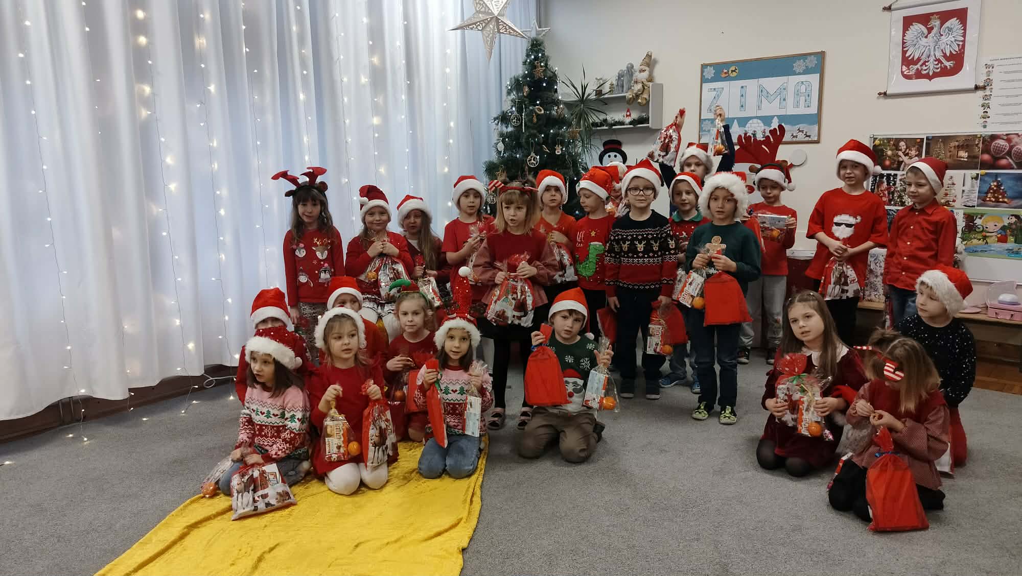 5 grudnia grupę Motylki odwiedził bardzo miły i długo oczekiwany gość. Dzieci czekały już od samego rana na dźwięk dzwonków i się doczekały dotarł do nas … Miał czerwony strój, długą, białą brodę, dźwigał na plecach bardzo ciężki worek, a w nim prezenty. To nie mógł być nikt inny tylko MIKOŁAJ- niezwykle wesoły, rozmowny i chętny do wspólnej zabawy i tańca. Pomimo braku białego puchu, jak co roku przybył na czas. Spotkanie przebiegało w bardzo radosnej i przyjaznej atmosferze. Przedszkolaki śpiewały Mikołajowi piosenki, nie obyło się bez rozmów z Mikołajem o tym kto był grzeczny. Święty Mikołaj obdarował wszystkie dzieci słodkimi prezentami i upominkami. Na twarzach dzieci malowała się wielka radość i przejęcie, a także nadzieja na kolejne spotkanie. Święty Mikołaju bardzo dziękujemy za odwiedziny.