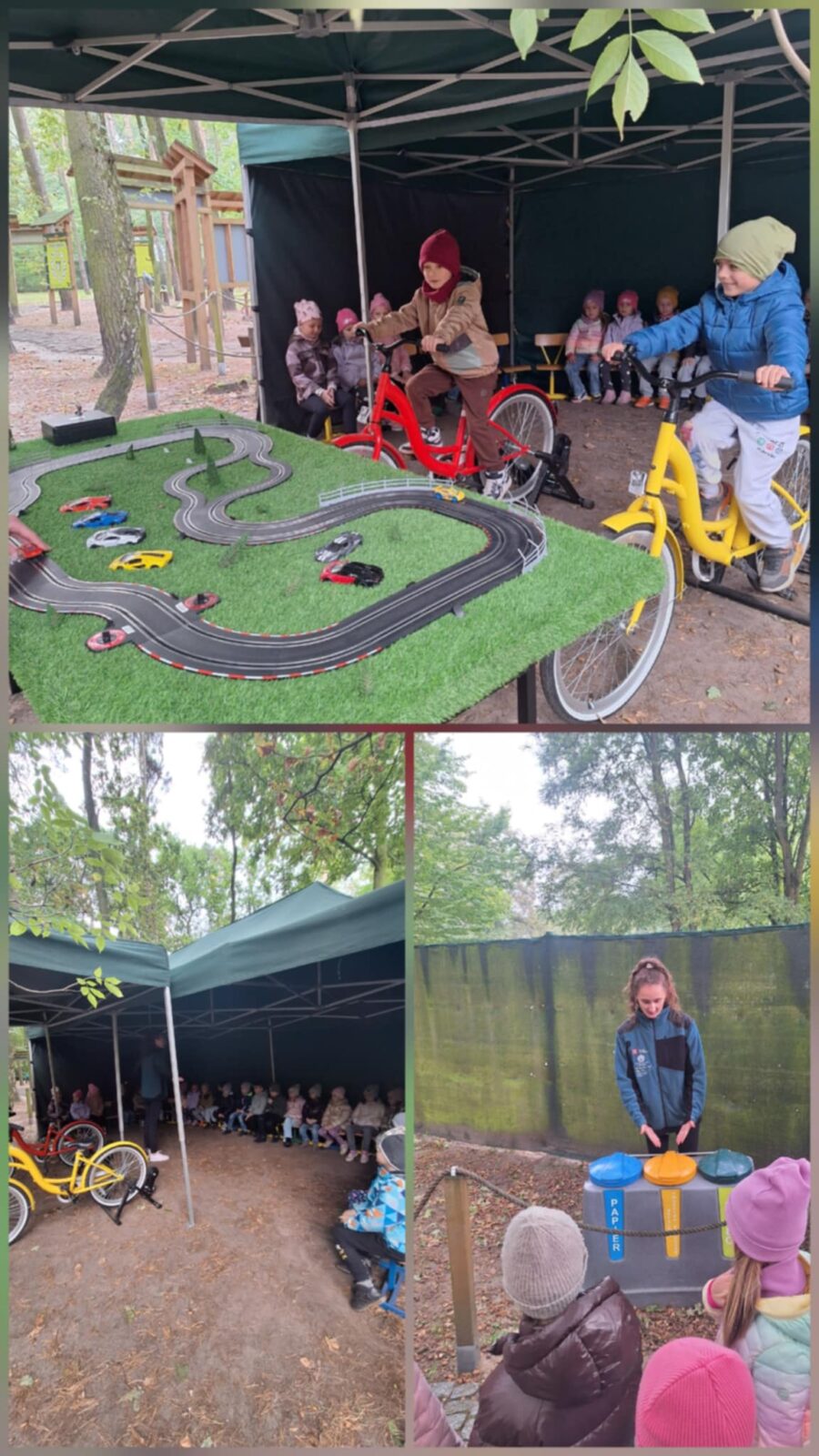 Dnia 1 października nasza grupa brała udział w warsztatach ekologicznych realizowanych w ramach projektu EKO PODRÓŻ – Centrum Edukacji Ekologicznej. Celem warsztatów było rozwijanie świadomości ekologicznej oraz kształtowanie postaw przyjaznych środowisku. Podczas warsztatów dzieci uczestniczyły w zajęciach podczas których wykonano doświadczenie o czystym i zanieczyszczonym powietrzu, miały możliwość obserwowaniu procesu czyszczenia wody. Motylki poznały różne rodzaje owadów i poszerzyły widzę przyrodniczą na ich temat. Największą atrakcją dla dzieci były zabawy podczas których samodzielnie mogły wytwarzać prąd na rowerkach. Na koniec tworzyły w piasku koryta wody aby obserwować jak płynie rzeka.