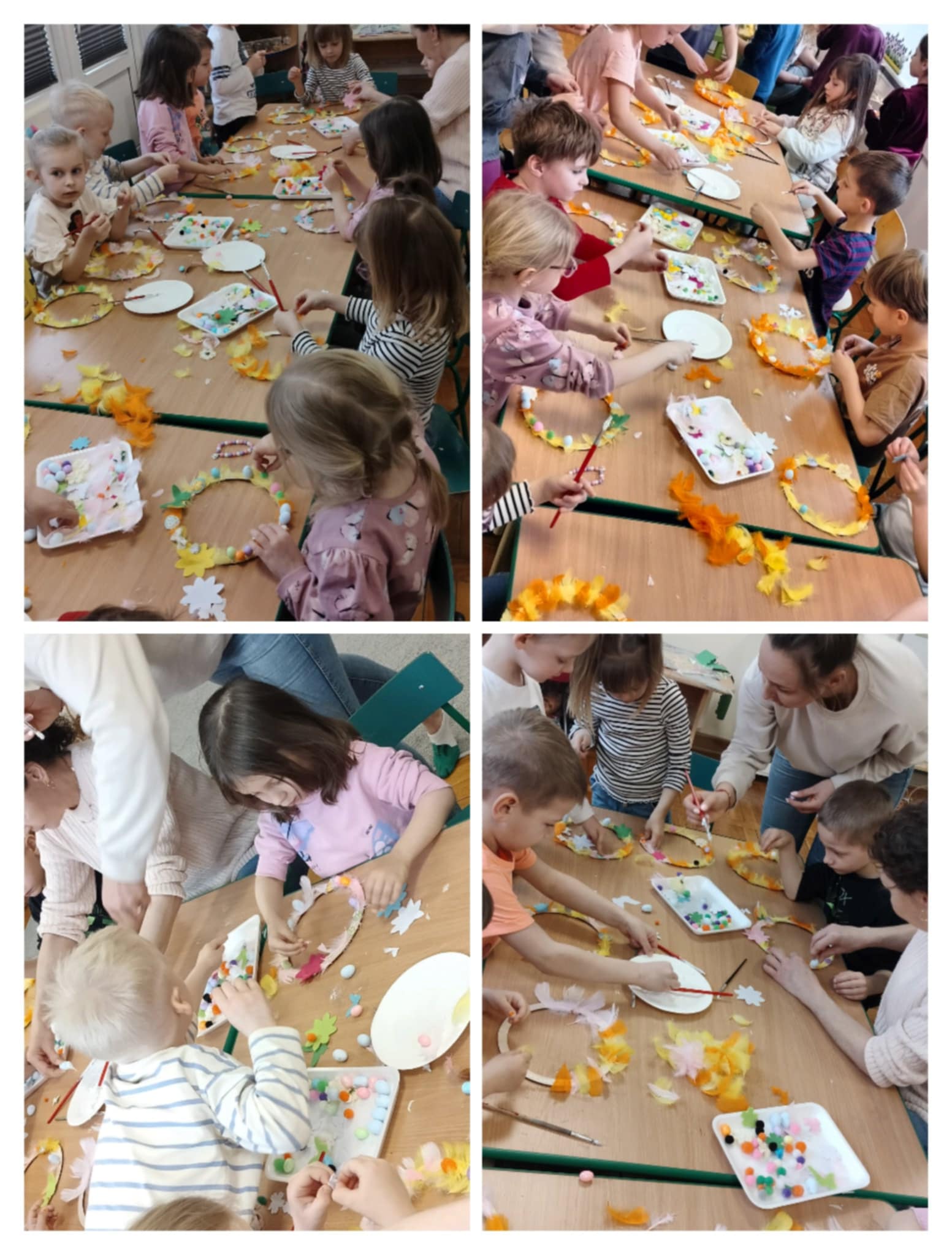 Dnia 11 kwietnia 2025 mieliśmy gościa. Mama Julki z naszej grupy już po raz kolejny przyszła do nas aby przeprowadzić warsztaty plastyczno – techniczne. Wspólnymi siłami udało się zorganizować i przygotować materiały do pracy. Dzieci z pomocą pań i mamy Julki wykonały piękne wianki ozdobne, które będą zdobić drzwi w domu każdego z nich. Obecność rodziców przedszkolu i współpraca to z nimi to jedna z bardzo ważnych form funkcjonujących w naszej grupie. Pani Weronice bardzo dziękujemy za poświęcony czas.