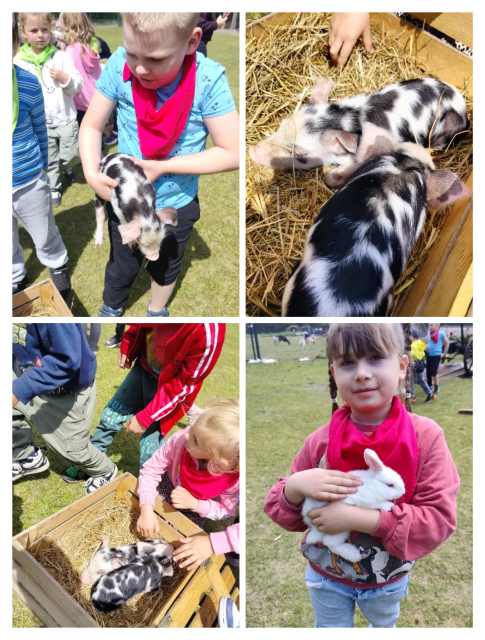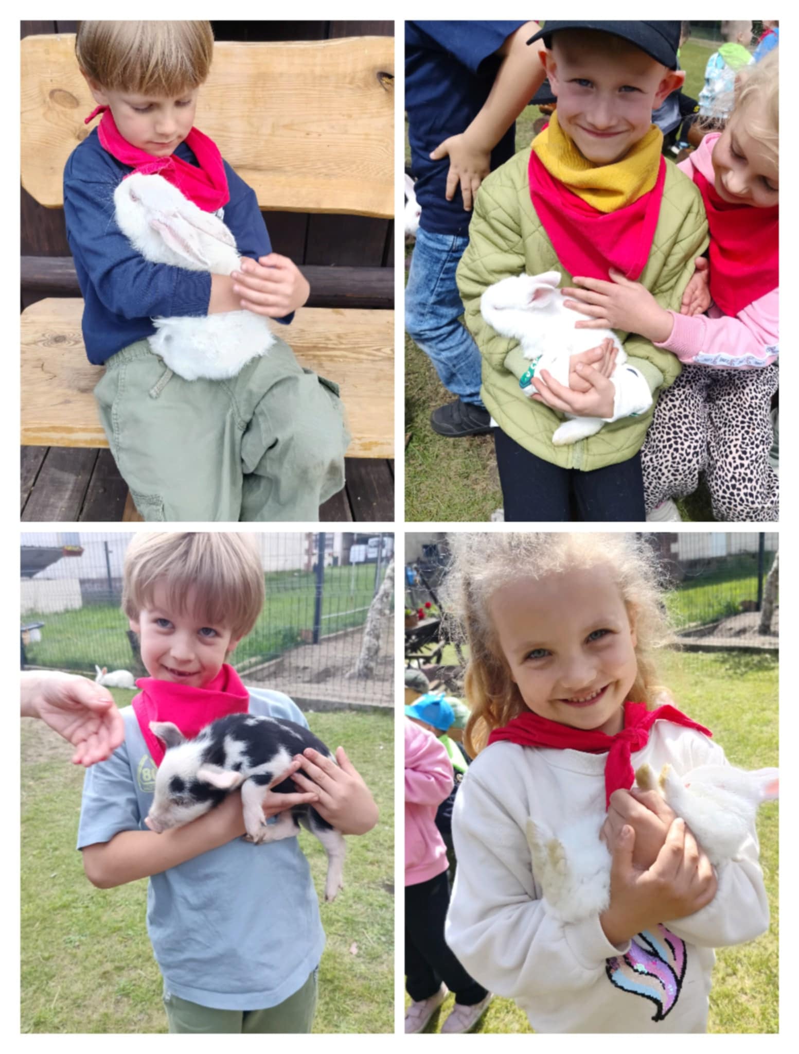 Dnia 29 maja grupa Motylki wybrały się na wycieczkę autokarową do Gospodarstwa Ekologicznego ,,Zagroda białego króliczka” w Kęszycach. Dla dzieci była to ogromna atrakcja zobaczyć jak funkcjonuje gospodarstwo, jakie zwierzęta można tam spotkać. Na miejscu na dzieci czekało mnóstwo atrakcji: ubijanie masła, zajęcia plastyczne, kiełbaski z ogniska, a także spacery po lesie i polanie. Największą atrakcją tego dnia był kontakt ze zwierzętami, które dzieci mogły zobaczyć z bliska, wsiąść na ręce, pogłaskać. Przedszkolacy zmęczeni, ale szczęśliwi wrócili do przedszkola. Był to dzień pełen wrażeń i dla dzieci była to jedna z najlepszych wycieczek.