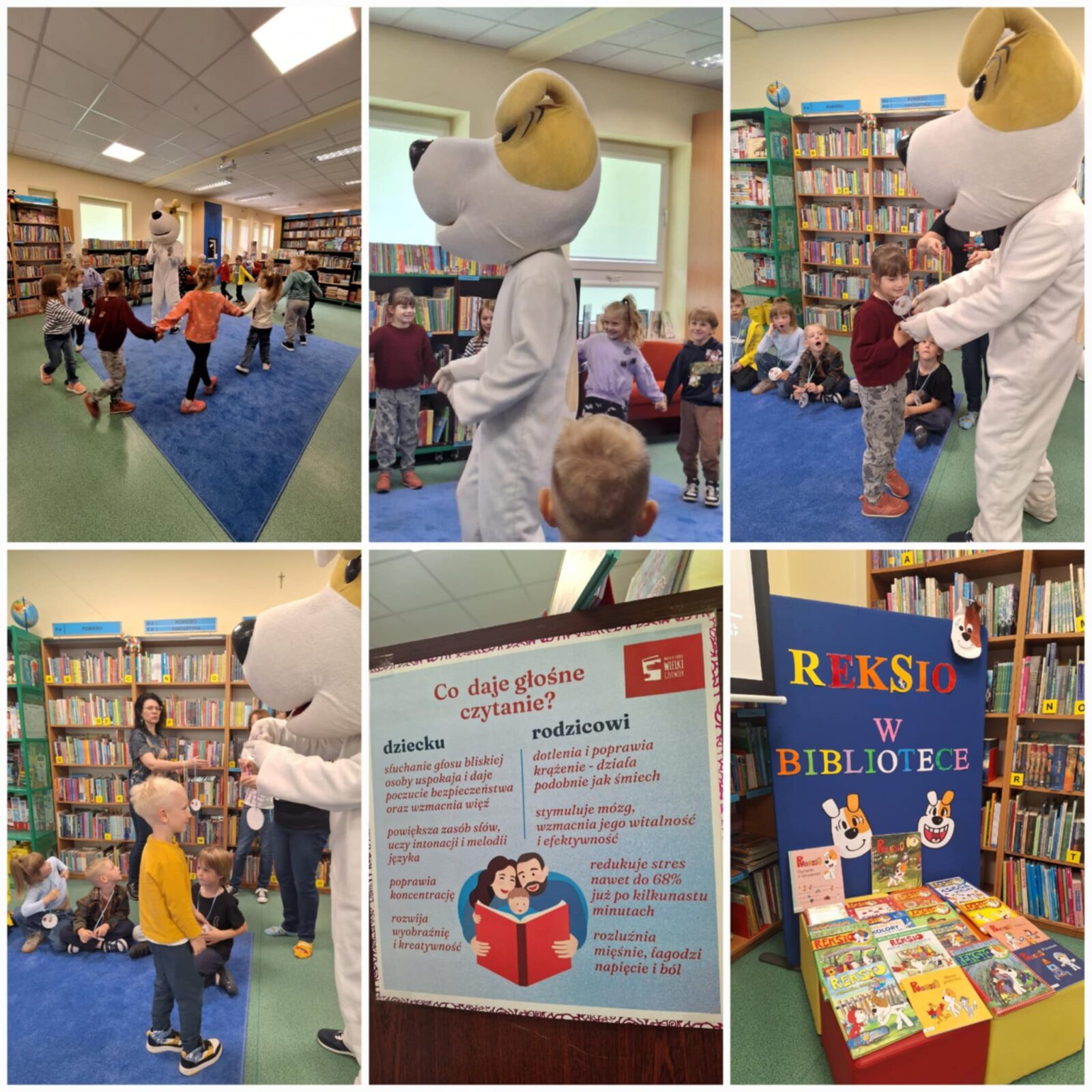 Dnia 5 maja 2025 grupa Motylki w ramach współpracy z Biblioteką Publiczną nr 7 dla dzieci i młodzieży mogli uczestniczyć w zajęciach edukacyjnych. Podczas pobytu w bibliotece dzieci skorzystały z wielu zabaw z „Reksiem” bohaterem bajki. Uczestniczyli w zabawach ruchowych, tworzyli postać Reksia, wysłuchali bajki. Czytanie dzieciom bajek w wieku przedszkolnym ma dla ich rozwoju ogromne znaczenie, dlatego też staramy się wspierać rozwój czytelnictwa wśród dzieci.
