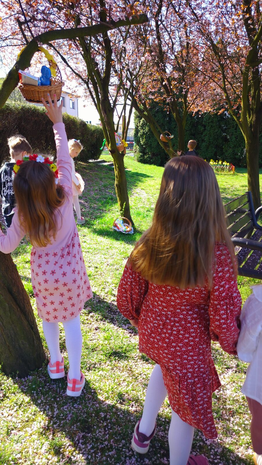 Dnia 16 kwietnia w naszym przedszkolu odwiedził dzieci zajączek. Dzieci czekają na tego gościa gdy tylko nadejdzie wiosna. Z radością i uśmiechem na twarzach szukali swoich koszyczków na terenie placu przedszkolnego. Był to dzień pełen wrażeń. Na koniec dnia zrobiliśmy pamiątkową sesję świąteczną.