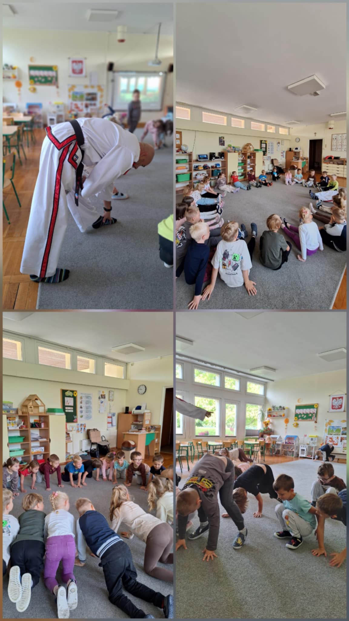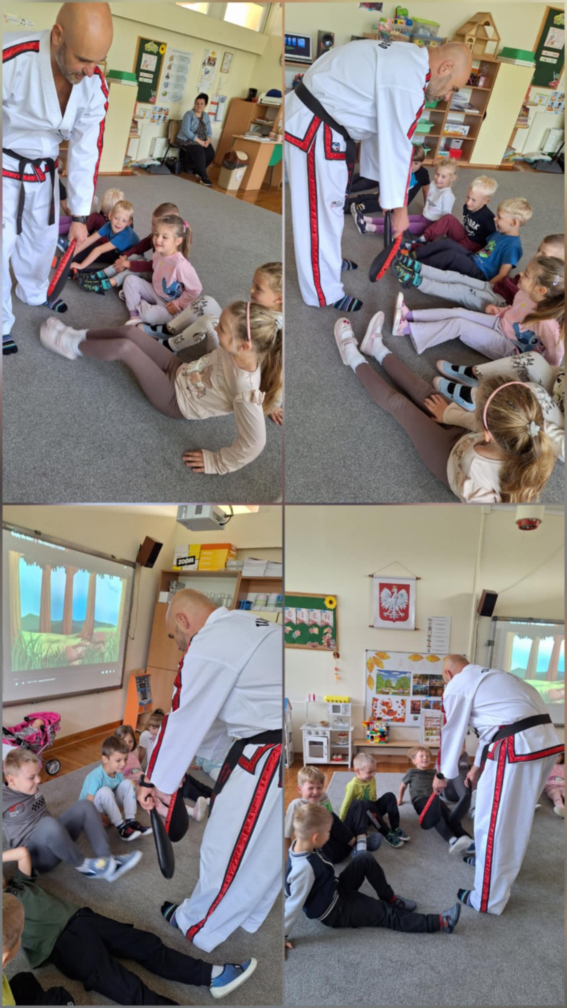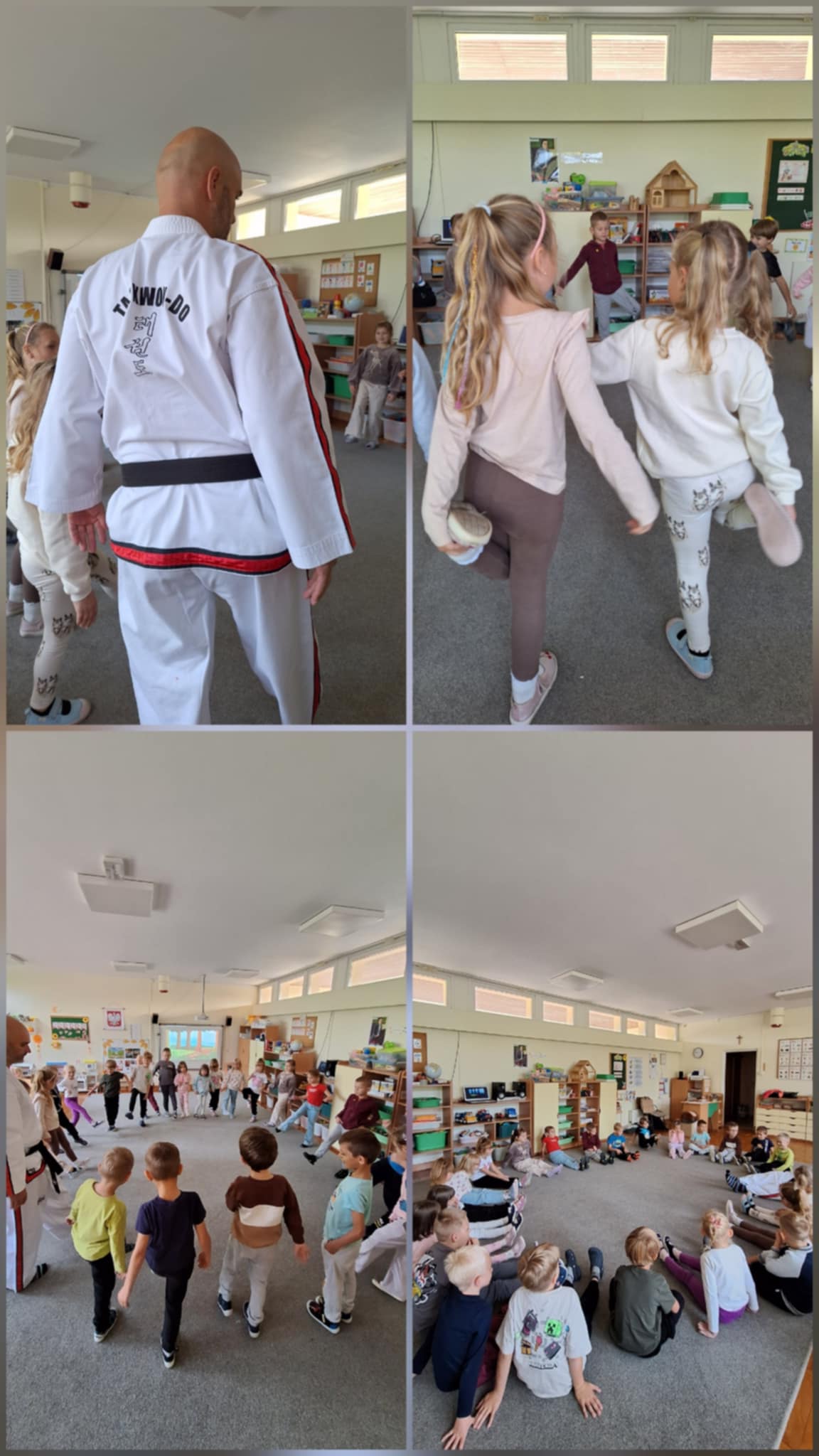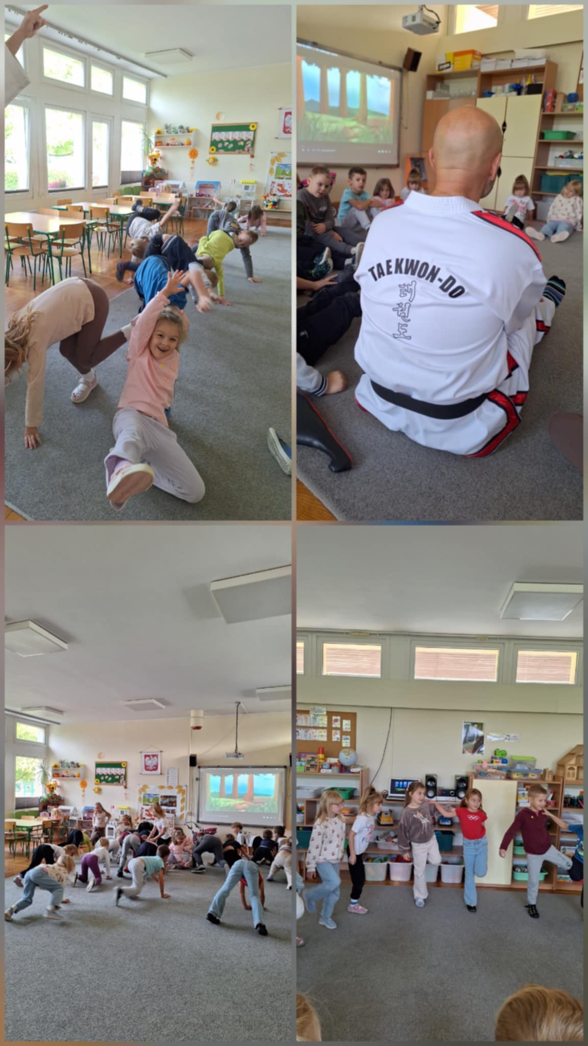 26 września Motylki odbyły lekcje pokazową z Taekwon-do z prawdziwym trenerem. Dzieci poznały tradycyjne przywitanie oraz przykładowe ćwiczenia, które są wykonywane podczas zajęć. Ćwiczenia były przeprowadzone w formie zabaw, dlatego dzieci bardzo chętnie włączyły się do proponowanych ćwiczeń przez trenera.