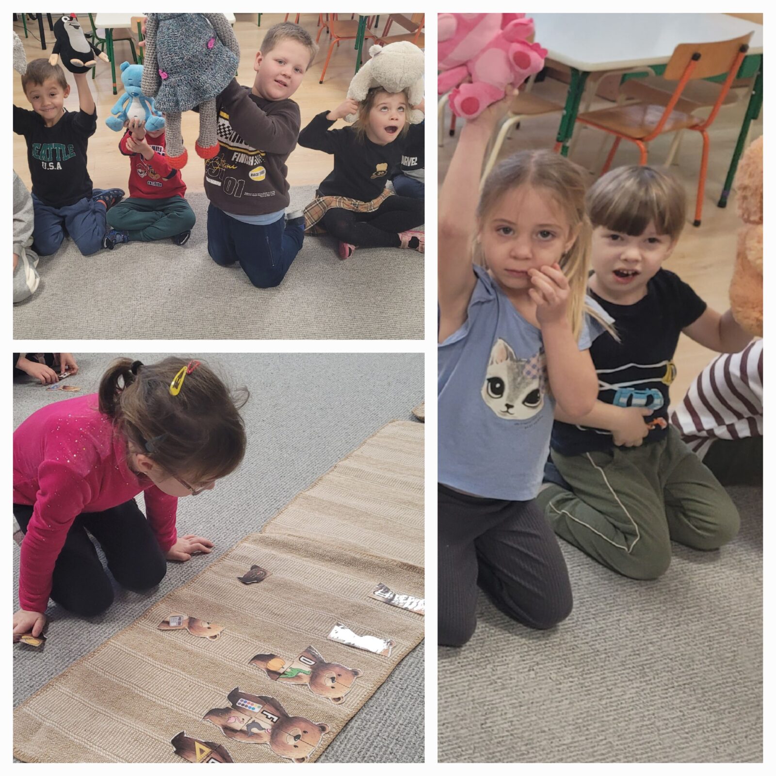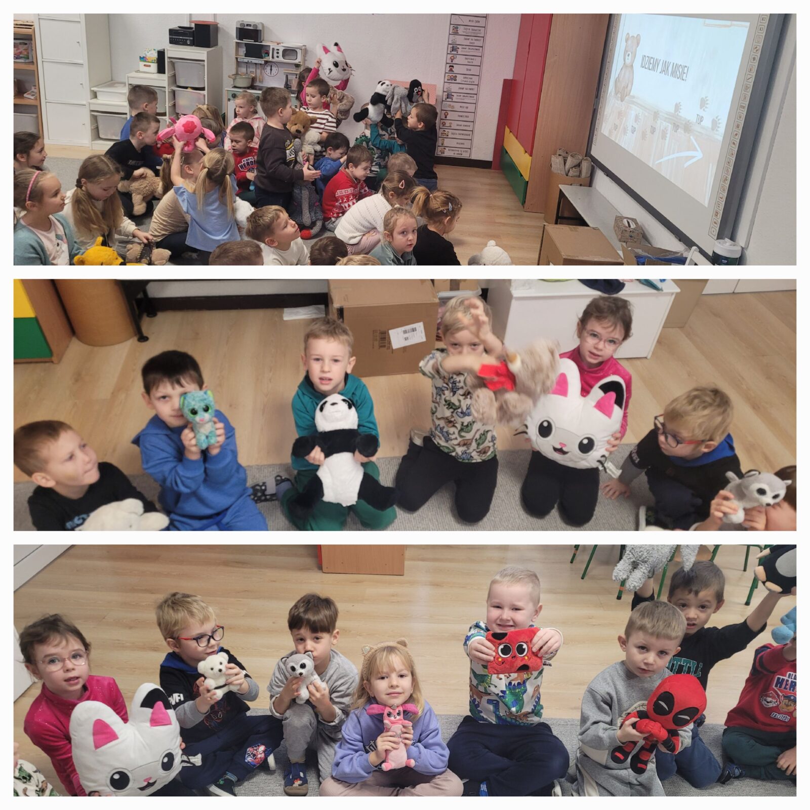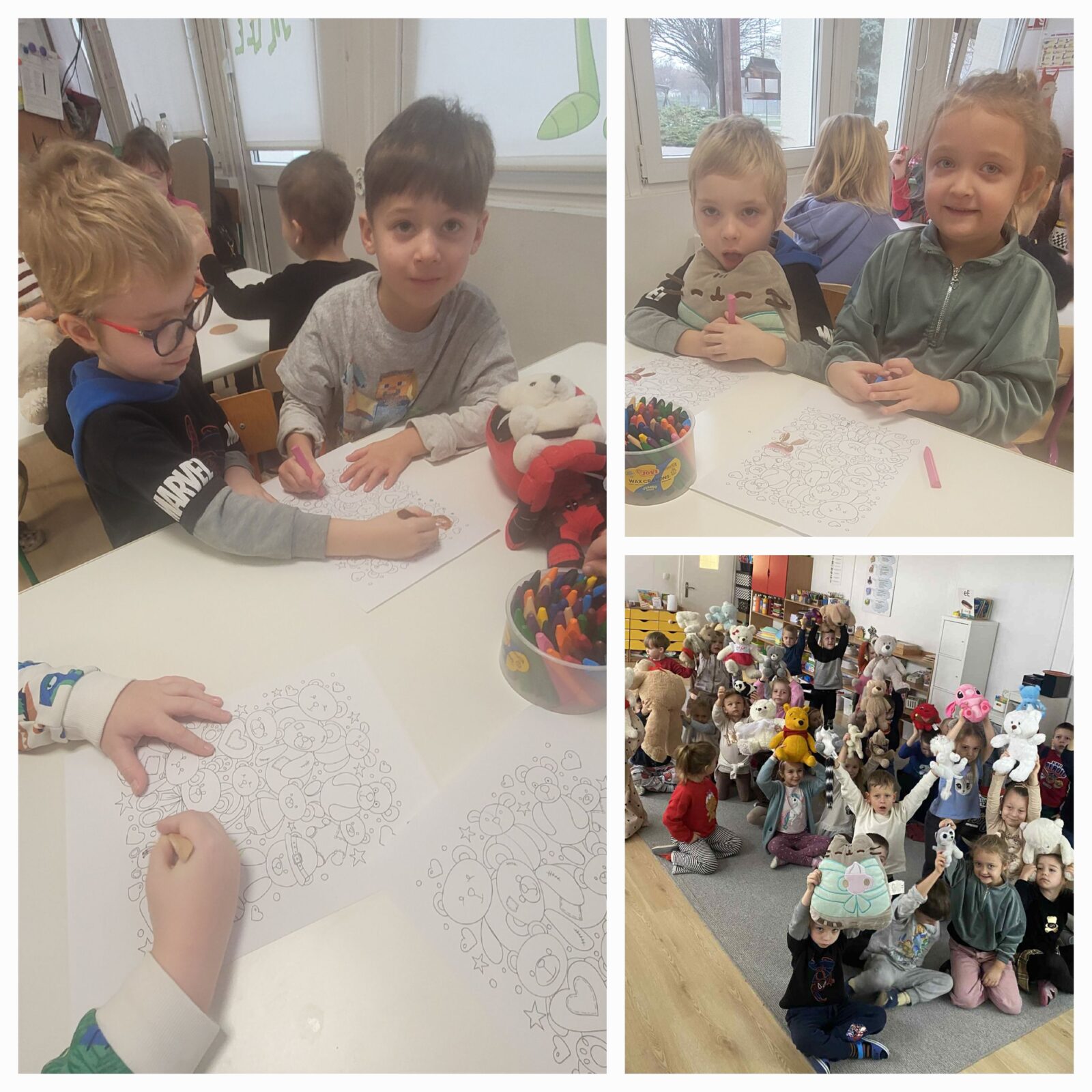 Dzień Pluszowego Misia obchodzony jest corocznie 25 listopada. Jest to międzynarodowe święto, które upamiętnia historię powstania tej popularnej zabawki. W tym wyjątkowym dniu dzieci przyniosły z domów swoje ukochane przytulanki. Wspólnie oglądaliśmy film o historii powstania misia, następnie dzieci opowiadały o swoich misiach i ich wspólnych przygodach. Świerszczyki wykonywały pracę plastyczną przedstawiającą misia, bawiliśmy się w rytm misiowych przebojów, a rozpoznawanie i nazywanie literek także nie było nam straszne w tak miłym towarzystwie. Był to dzień pełen radości, mający na celu docenienie roli jaką pluszowe misie odgrywają w życiu dzieci, dając im bezpieczeństwo i będąc wiernymi towarzyszami zabaw.