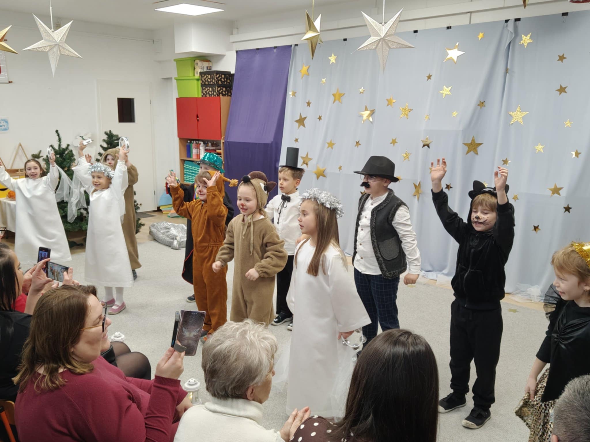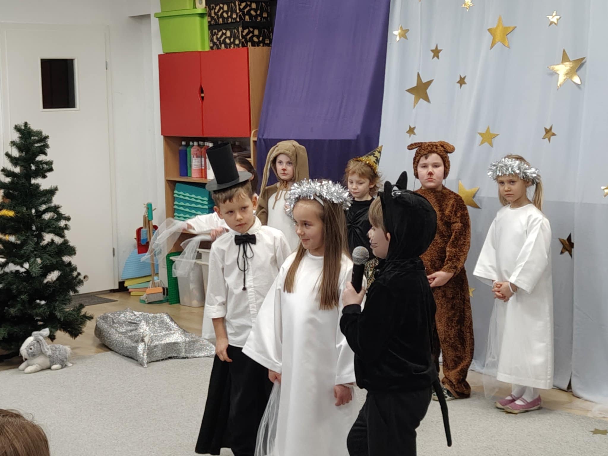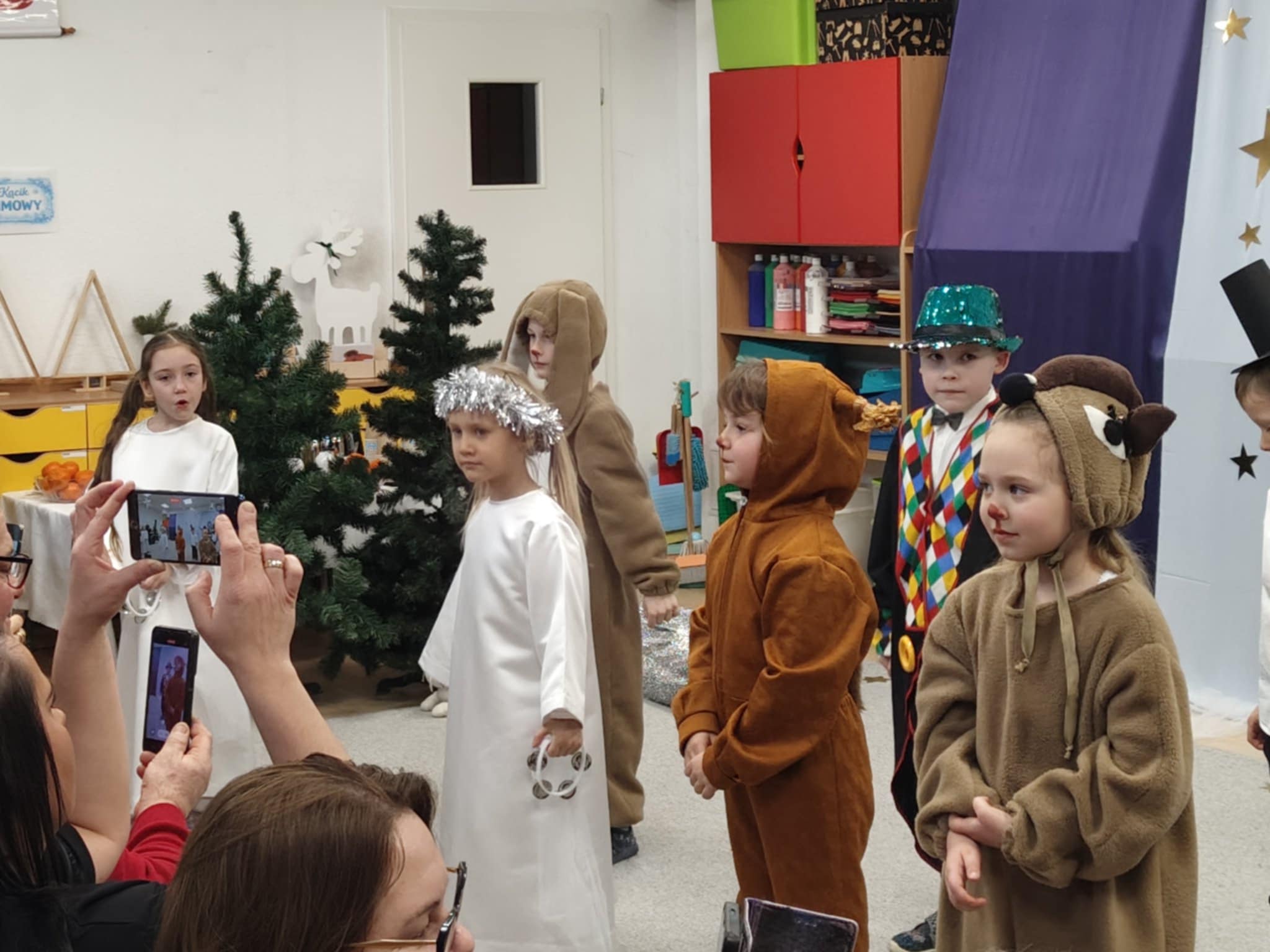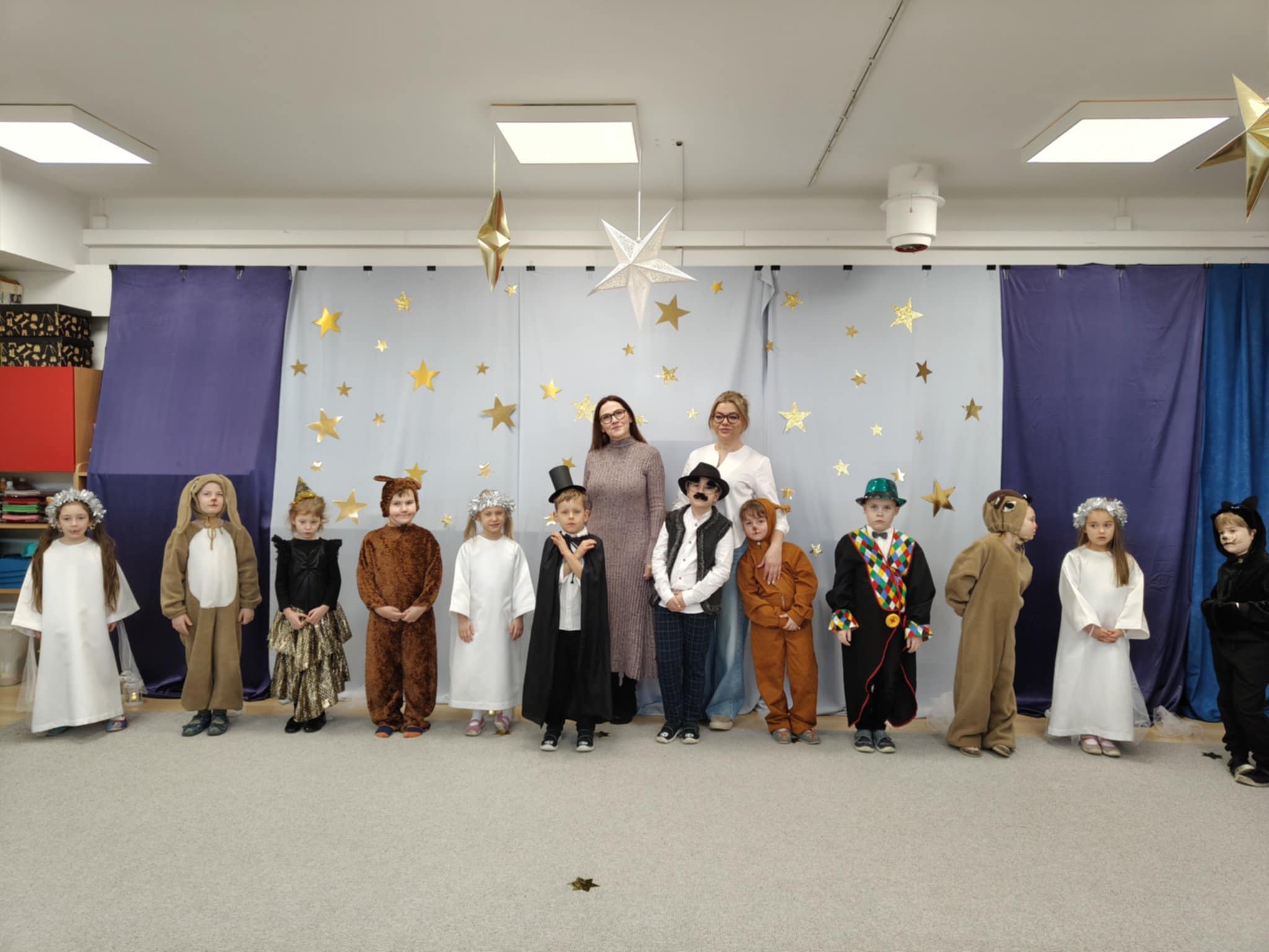 Słowami tej piosenki dzieci z gr. Montesorki przywitały zaproszonych Rodziców i Dziadków, którzy przybyli do przedszkola w zimowe-wtorkowe popołudnie – 20.stycznia. Wcielając się w role: Śnieżynek, Pani Zimy, Nocy, Nowego i Starego Roku, Sylwestra oraz zwierząt mali aktorzy zaprezentowali Gościom przygotowywane od kilku tygodni przedstawienie pt.,,Bajka Noworoczna”. Dzieci z wielkim zaangażowaniem wcieliły się w prezentowane role, śpiewały okolicznościowe piosenki, wykonały układy taneczne. Nie zapominając o zbliżającym się Dniu Babci i Dziadka mali artyści przedstawili ponadto krótki program adresowany do najstarszych uczestników spotkania. Wszystkim Babciom i Dziadkom jeszcze raz składamy najserdeczniejsze życzenia, zdrowia, nieustającej energii i pociechy z wnuków. ![]()