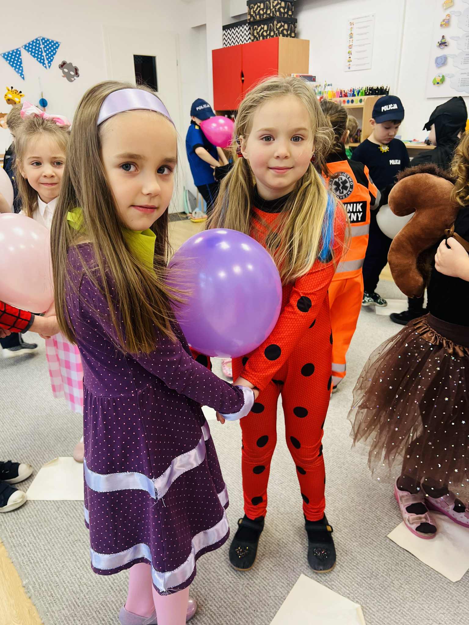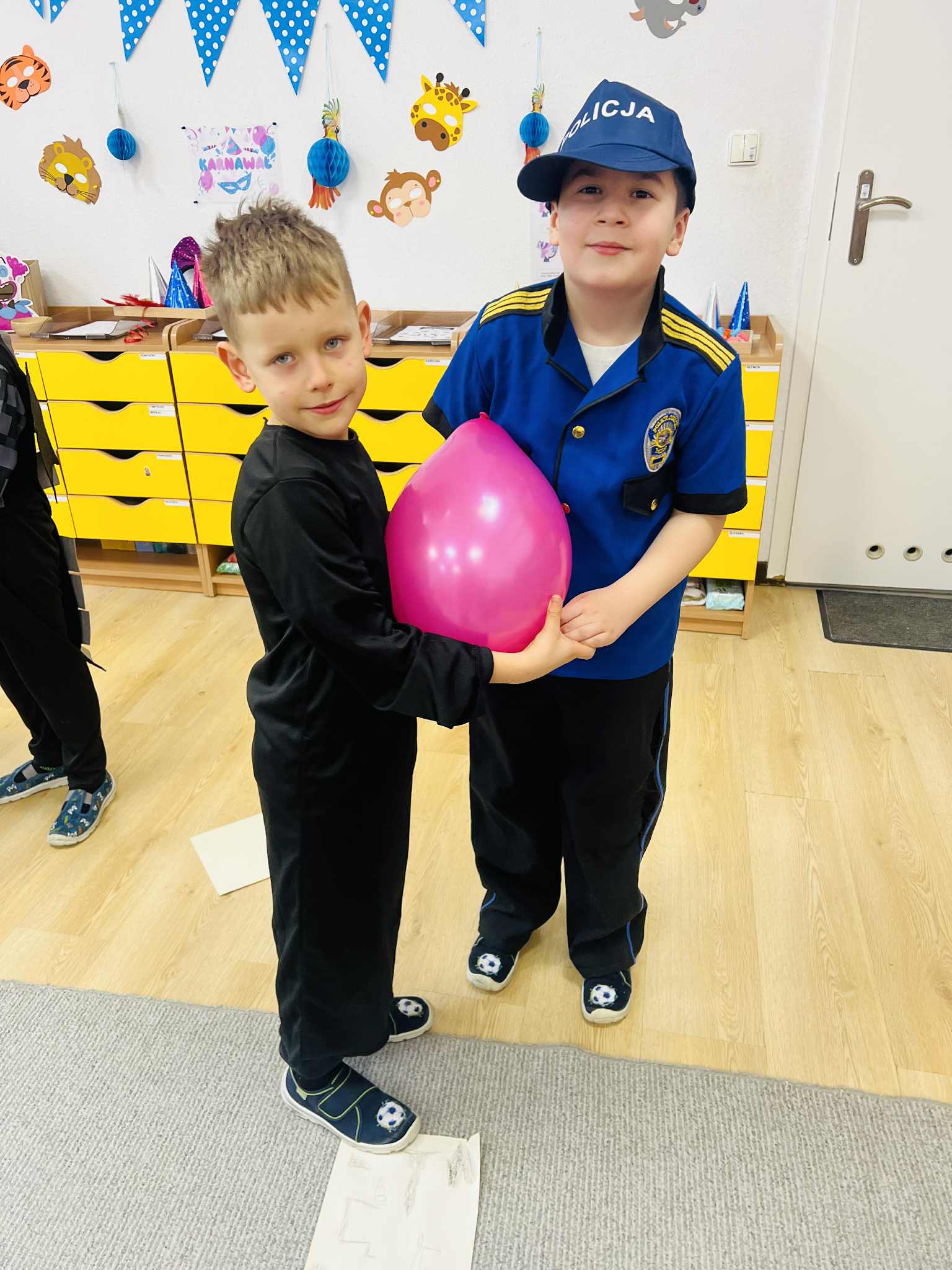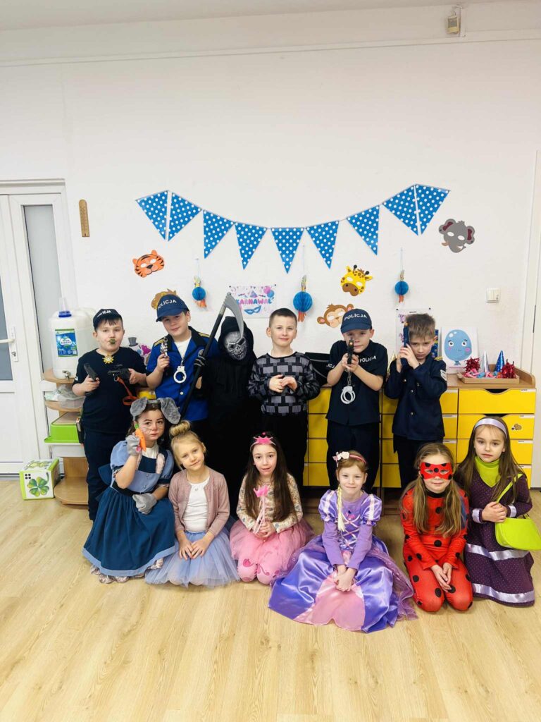 Dokładnie tak było… Wielki bal karnawałowy prawie 😉 na sto par odbył się w naszym przedszkolu we wtorek 10 lutego 2026 roku. Przedszkolaki z dumą prezentowały bajeczne stroje. Z wielką ochotą uczestniczyły w tańcach, zabawach i konkursach. Bal karnawałowy dla przedszkolaków to dzień niezwykły, często wyczekiwany przez wiele tygodni. Jest atrakcją bardzo lubianą przez dzieci, dostarczającą im wielu przeżyć i radości. Tego dnia już od rana w przedszkolu pojawiały się kolorowe postacie. Dzieci przebrane były za bohaterów znanych bajek, w salach przedszkolnych można było spotkać wróżki, księżniczki, motylki, piratów, strażaków, policjantów, Spider-Mana, Batmana, nie sposób zliczyć i wymienić tych wszystkich postaci. Rozpoznać dzieci było bardzo trudno. Wystrój sali wprowadził w radosny nastrój oraz zachęcał wszystkich do wesołej zabawy. Wspólna zabawa przyniosła wiele radości naszym wychowankom, to było głównym celem tego balu. Przedszkolaki świetnie bawiły się w rytm muzyki porywającej do tańca. Taneczne pociągi i korowody wiły się po sali balowej, a nawet po korytarzach przedszkola. Odbyły się również konkursy i zabawy taneczne, a w przerwie słodki poczęstunek dla niestrudzonych tancerzy. Choć czasem trudno było rozpoznać, kto kryje się pod danym przebraniem, to dobry humor i wesołe minki było widać już z daleka. Kiedy czas zabawy dobiegł końca dzieci z żalem opuszczały balową salę.