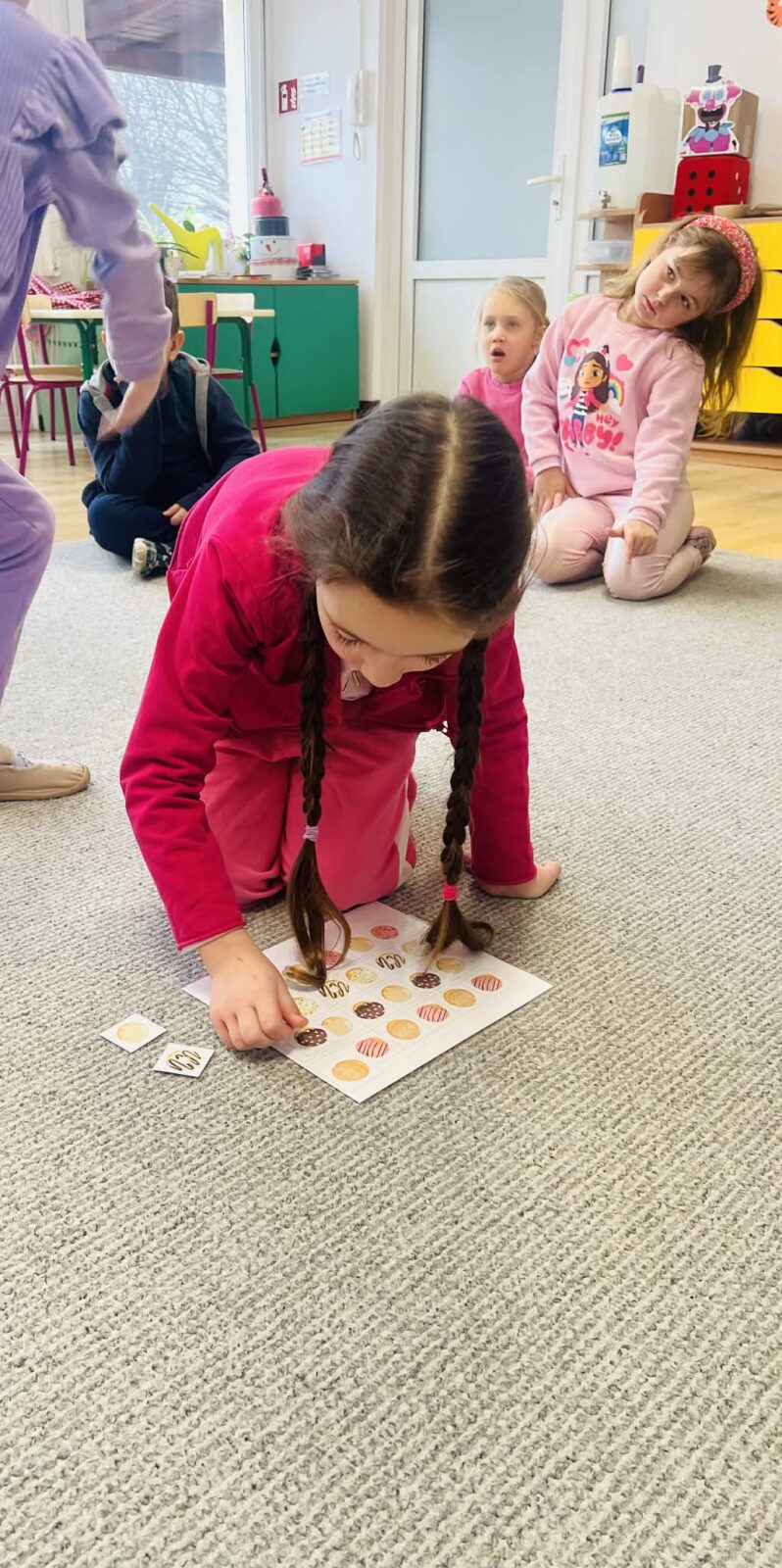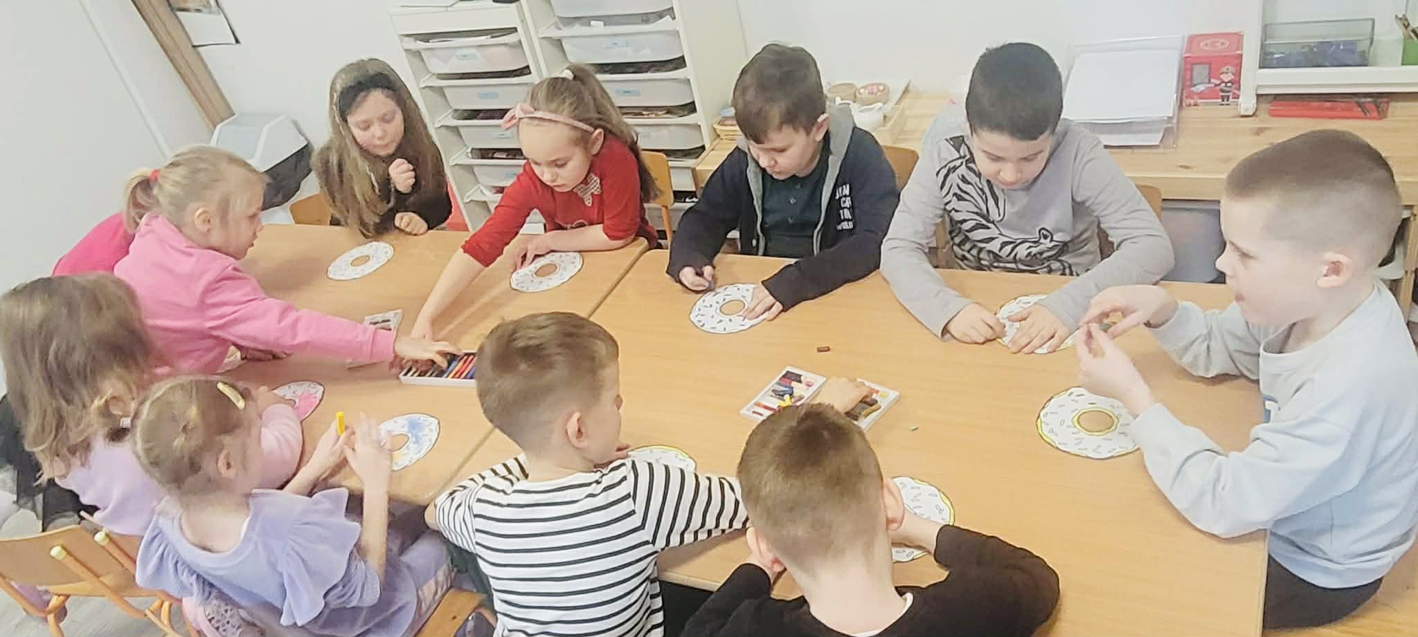 I cóż z tego, że to bomba kaloryczna. Tradycja w narodzie rzecz święta, a my przedszkolaki z grupy Montessori dobre tradycje pielęgnujemy. Stąd Tłusty Czwartek bez pączków byłby jakiś niepełny. Ale nie u nas… Od samego rana zapach pieczonych pączków unosił się w powietrzu. Podczas zajęć dydaktycznych dzieci dowiedziały się o samych zwyczajach, jakimi od lat żegnamy karnawał. Dzieci napatrzywszy się na zdjęcia faworków, pączków oraz innych smakołyków, związanych z tym wydarzeniem, nie mogły doczekać się swojego przydziału, który dla nich również był przewidziany. Podczas pracy plastycznej przedszkolaki kolorowały piękne „pączusiowe” obrazki ozdabiając je słodką posypka. Samą wisienką na torcie był obiecany pączek, który każdy przedszkolak zjadł z ogromnym apetytem.