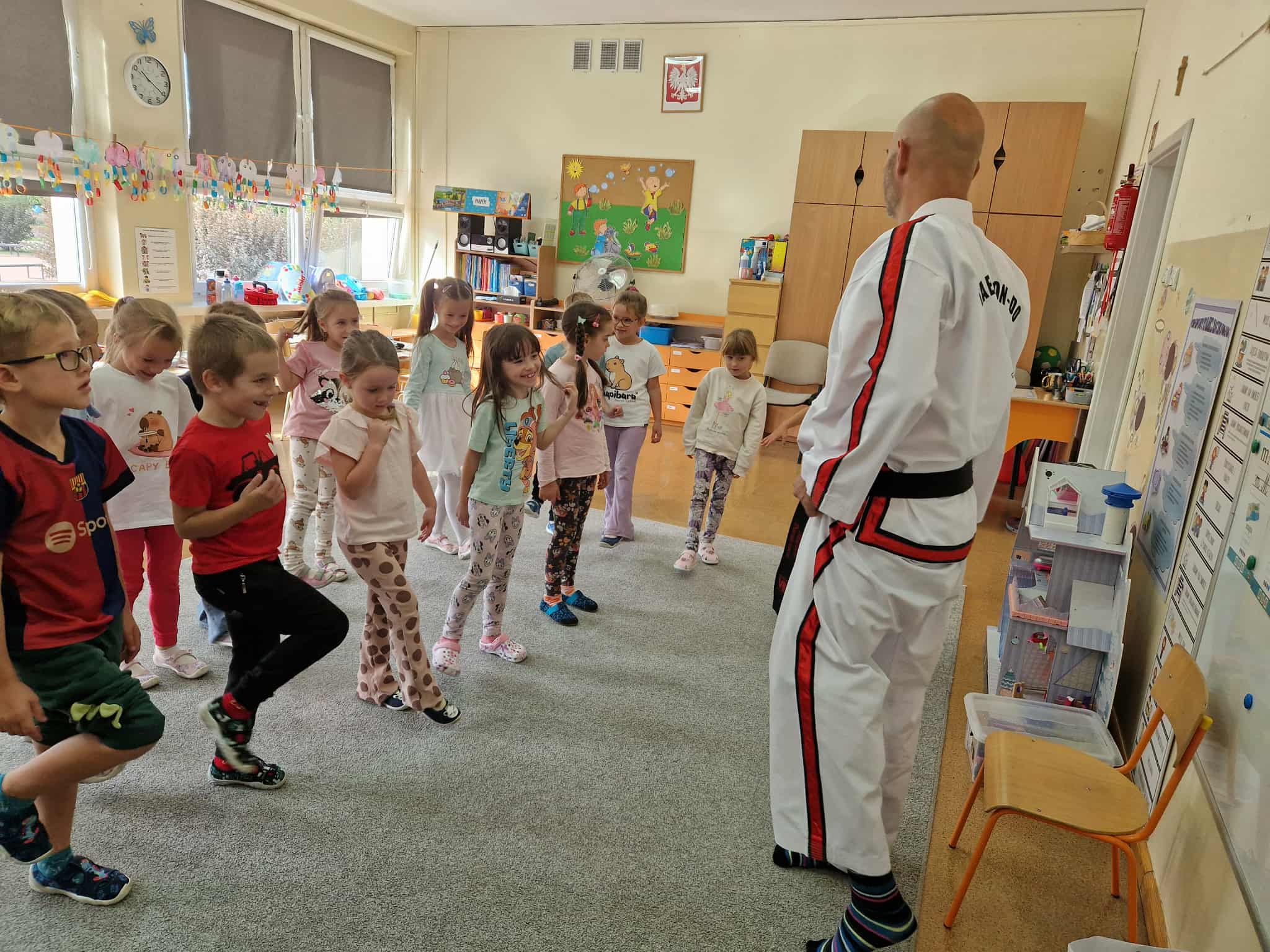 W piątek 26 września do naszego przedszkola zawitał przedstawiciel Polskiej Federacji Taekwon-do, aby przeprowadzić zajęcia pokazowe. Ekoludki pod okiem trenera ćwiczyły sztuki walki, dbając o bezpieczeństwo i dobrą zabawę.