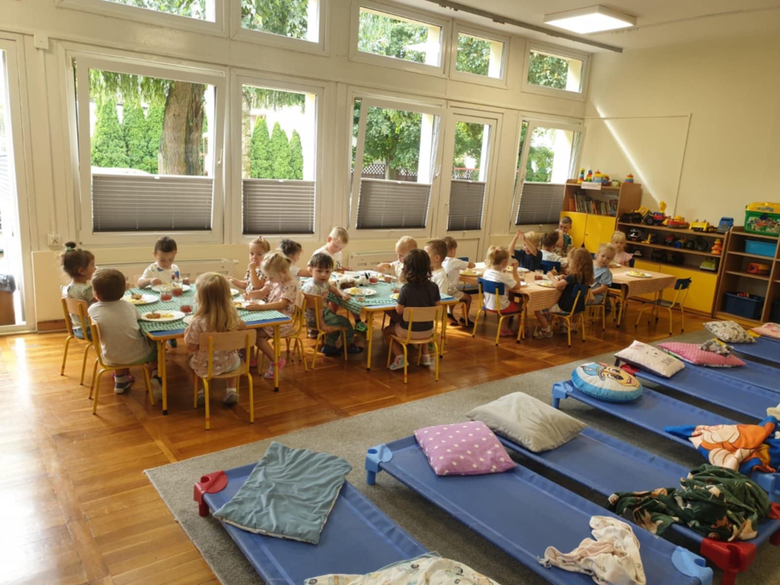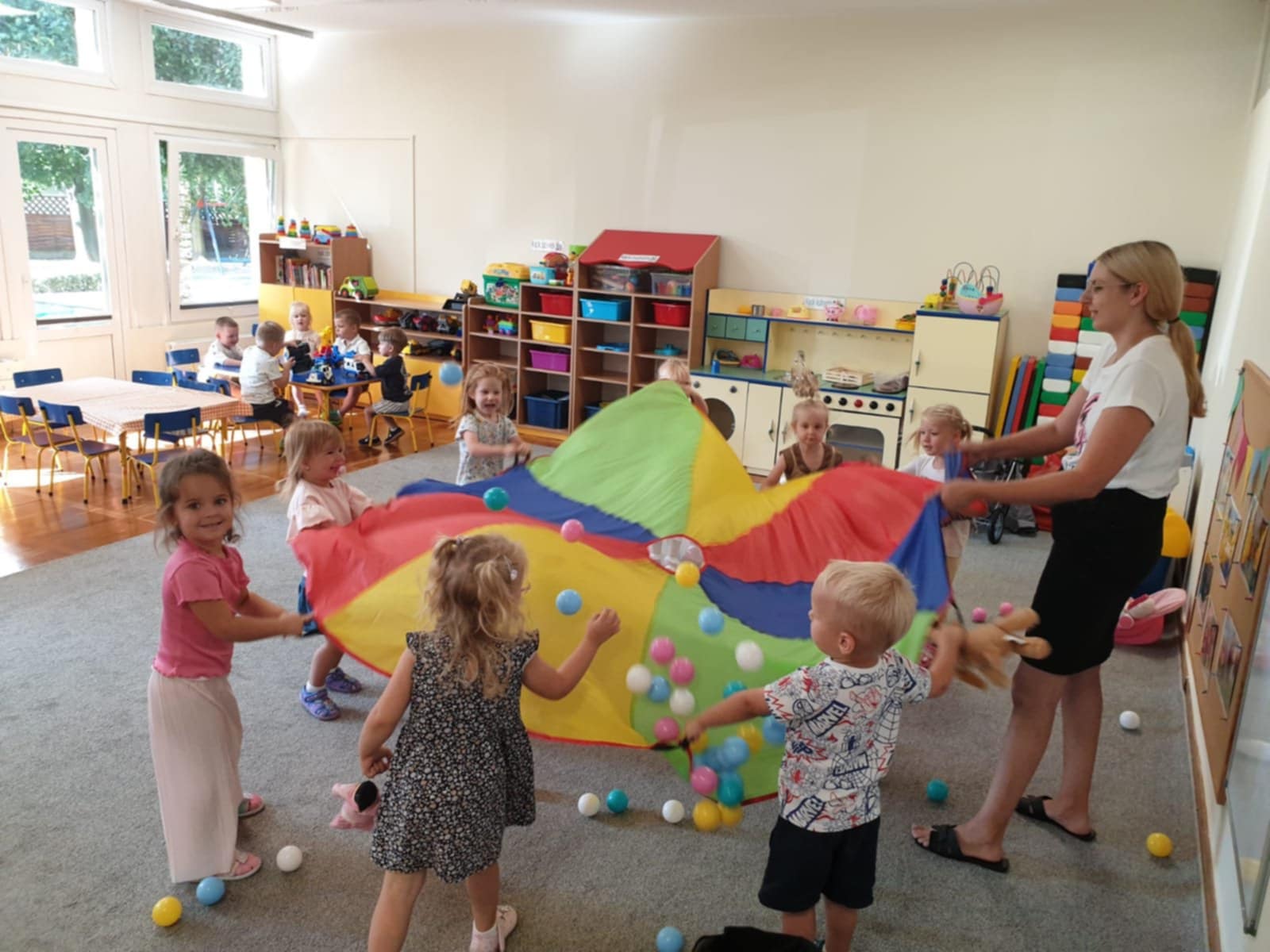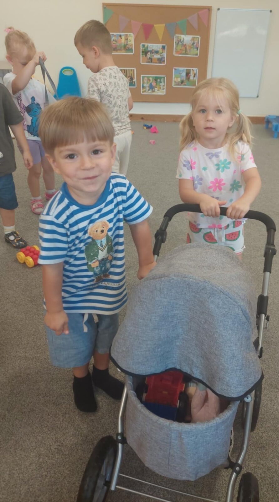 Nasze maluszki przełamały swój strach przed rozstaniem z rodzicami. Coraz rzadziej słychać rano płacz a dzieci coraz chętniej przychodzą do przedszkola. Mróweczki chodzą na spacerki, bawią się nowymi zabawkami, poznają nowe zabawy. W przedszkolu jest wesoło i dużo się dzieje, każdy dzień przynosi nowe atrakcje.
