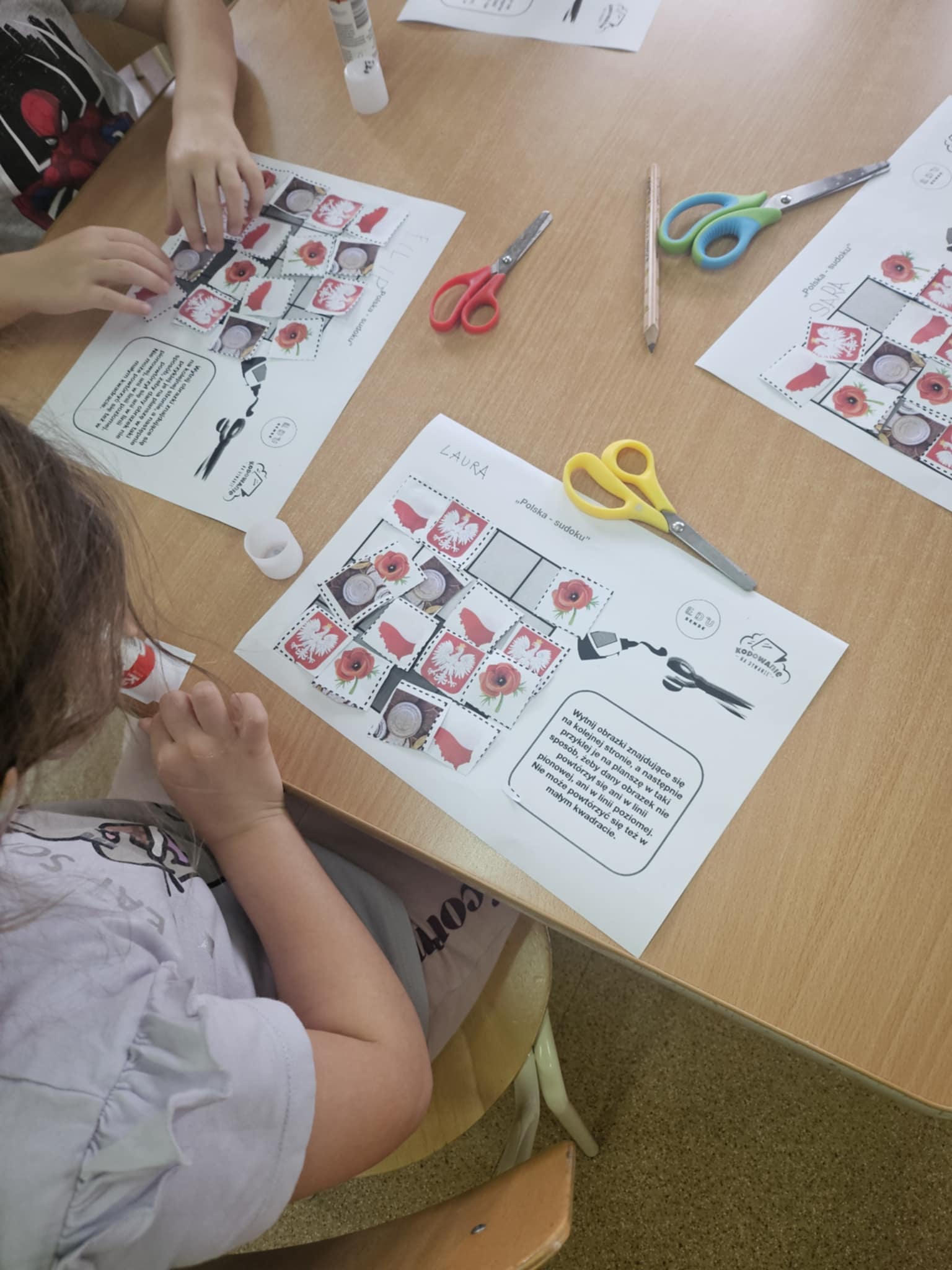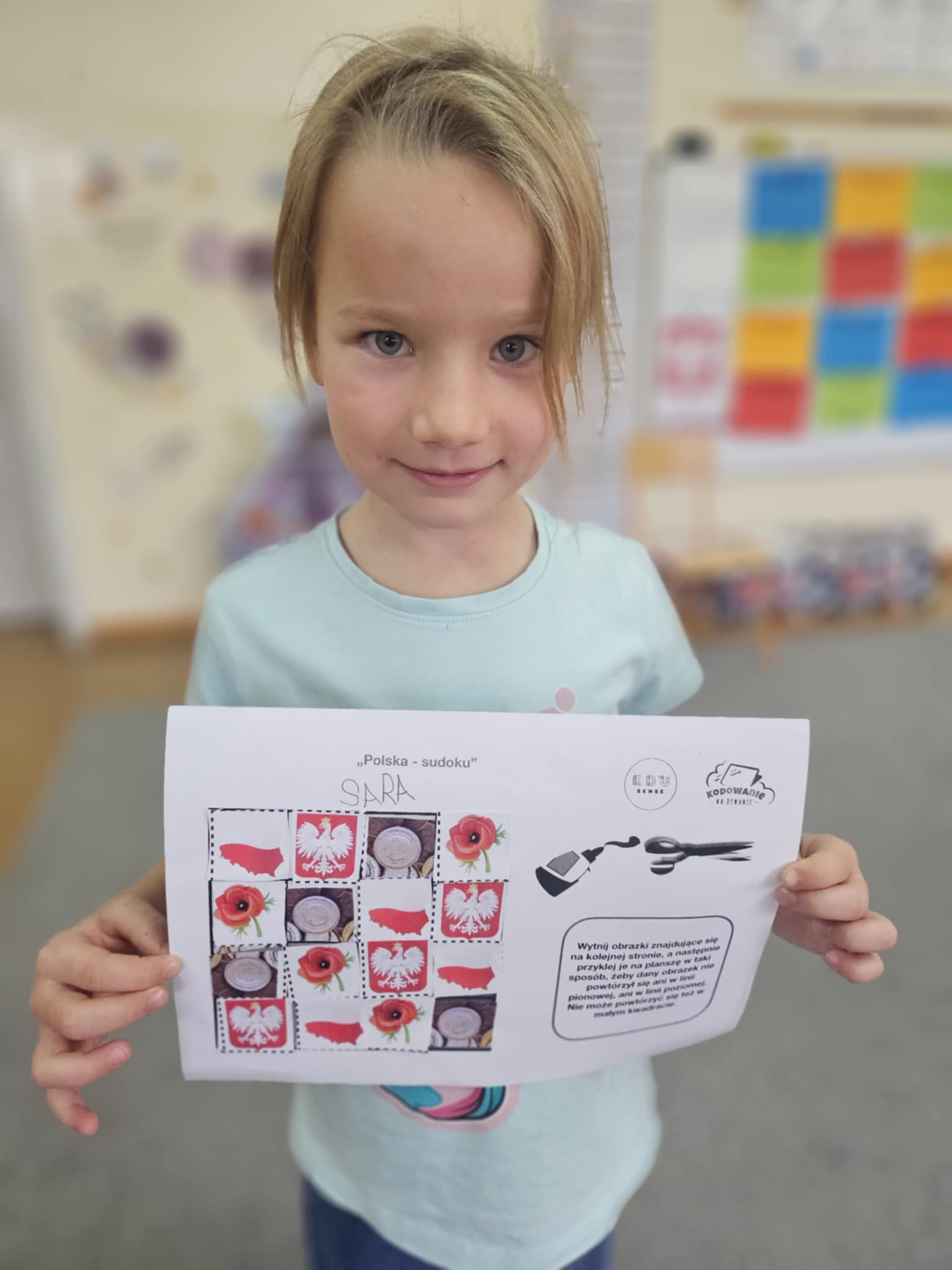 W miesiącu październiku 2025 Ekoludki wykonywały zadania w ramach Europejskiego Tygodnia Kodowania CodeWeek. Celem aktywności było rozwijanie logicznego myślenia, spostrzegawczości oraz umiejętności pracy według określonych zasad. Na początku dzieci poznały podstawowe zasady sudoku – każde pole należy uzupełnić tak, aby w wierszu i kolumnie nie powtarzały się te same symbole. Dla ułatwienia zamiast cyfr wykorzystaliśmy obrazki, co uczyniło zadanie bardziej atrakcyjnym i zrozumiałym. Dzieci pracowały zarówno indywidualnie, jak i w grupie. Wspólnie analizowały, które elementy pasują w odpowiednie miejsca, a które trzeba odłożyć. Podczas zabawy pojawiały się rozmowy, wymiana pomysłów i wspólne sprawdzanie poprawności rozwiązań. Zadania zostało przyjęte z dużym entuzjazmem – dzieci chętnie podejmowały próby, wykazywały wytrwałość i radość z odnalezienia właściwych rozwiązań. Ćwiczenie pozwoliło im oswoić się z podstawami algorytmicznego myślenia i było dobrą okazją do nauki poprzez zabawę. Za swój wysiłek grupa otrzymała certyfikat udziału w wydarzeniu.