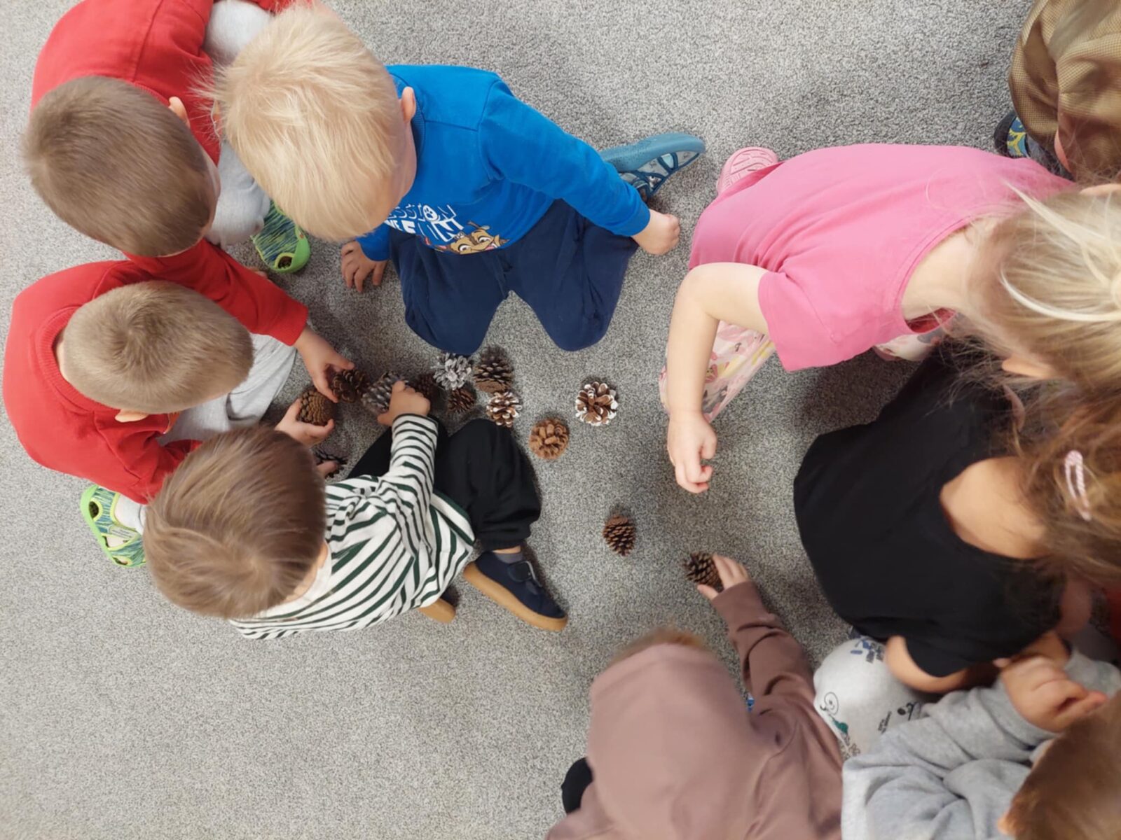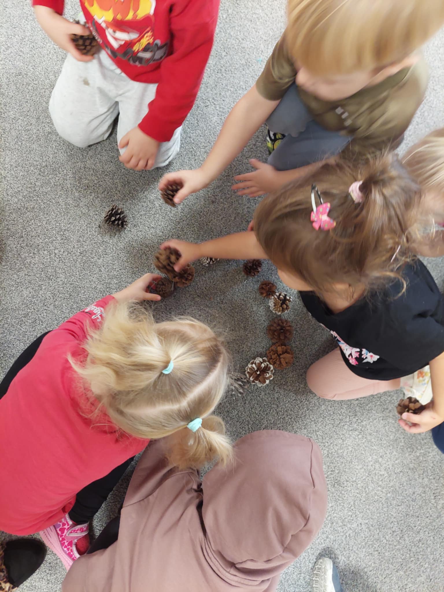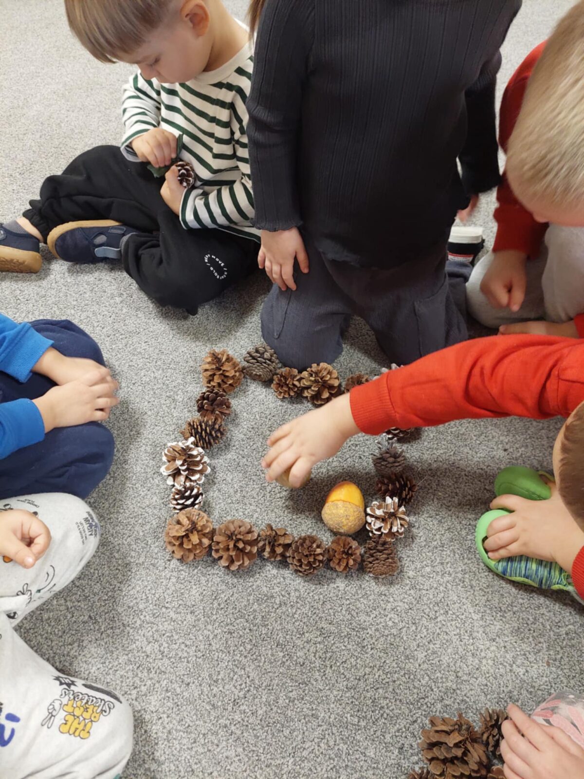 – stosowanie darów natury (liście, patyki, kamienie, szyszki itp.) jako materiał do konstruowania i odwzorowywania kształtów,