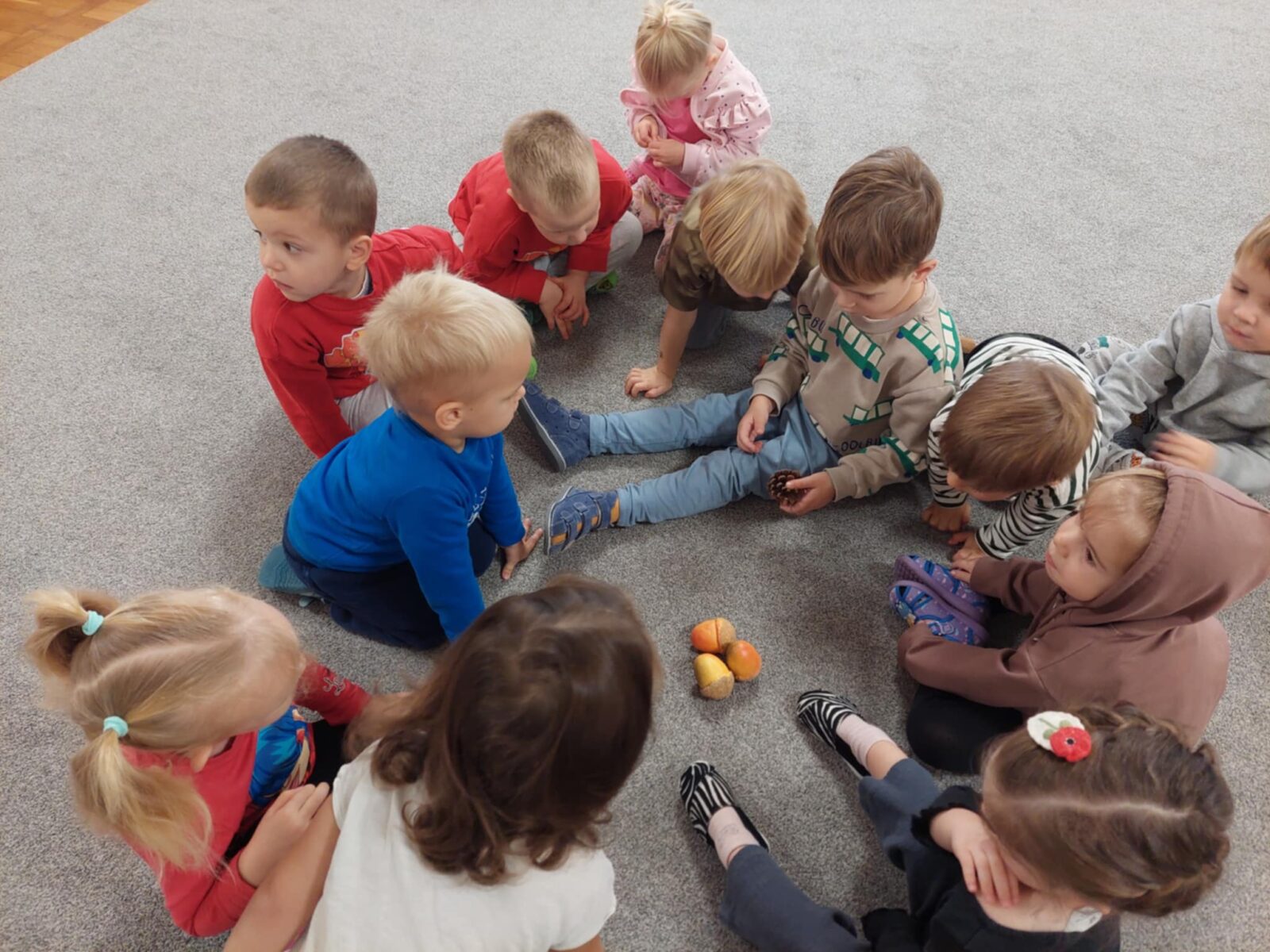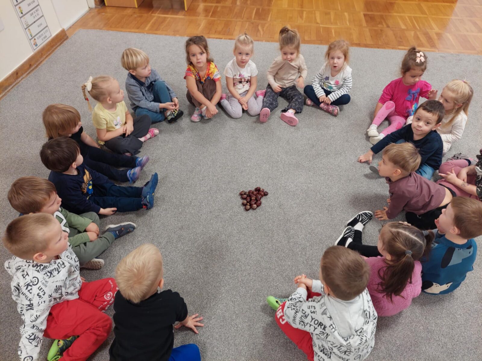 – doskonalenie motoryki małej manipulując darami natury (kasztany, żołędzie).