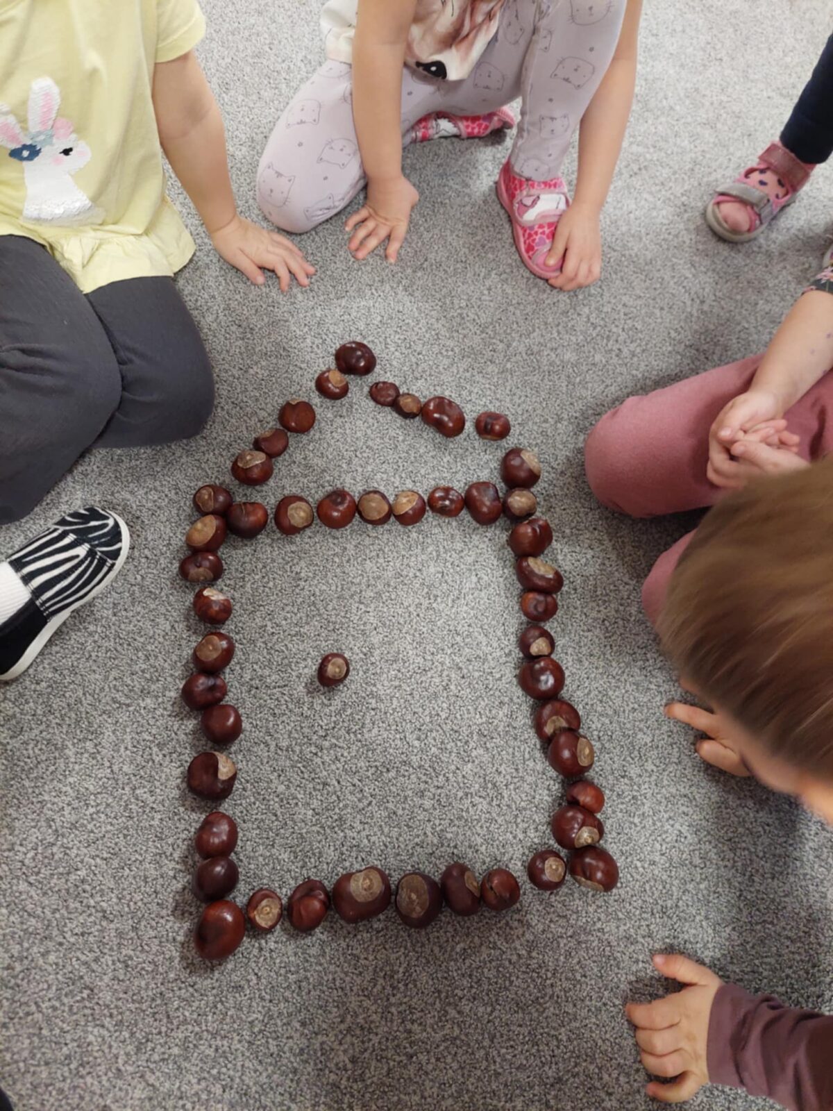 – odwzorowanie kształtu cyfry, układając ją z materiałów naturalnych (kasztany, kamyki, żołędzie, liście itp.),